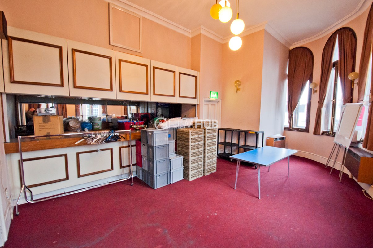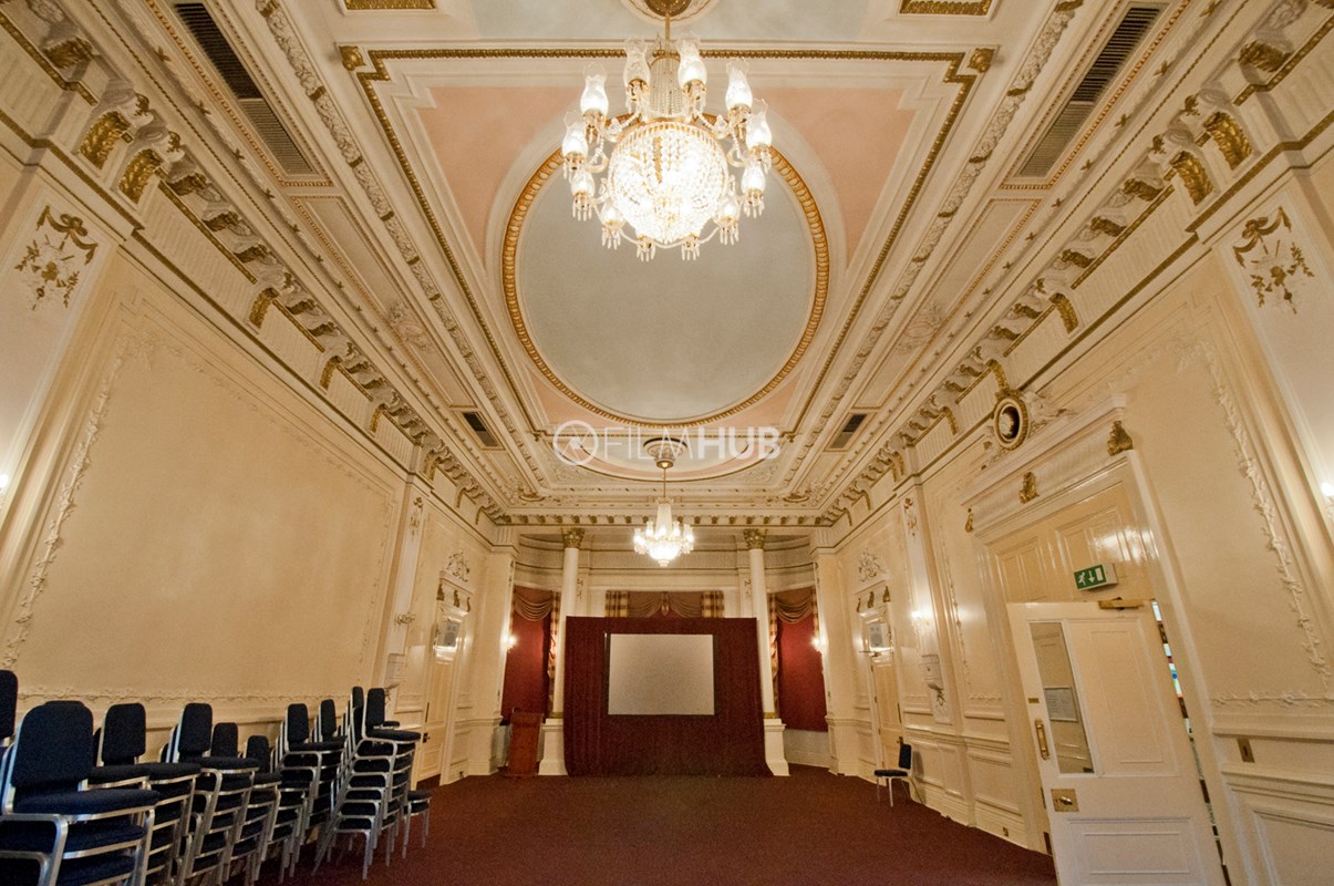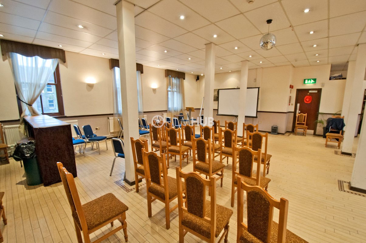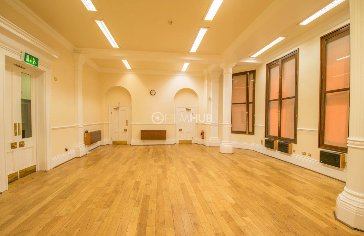 The larger of the two halls (The Main Hall) offers chandeliers, a wooden floor, large windows a main stage and lighting deck/balcony. It is also equipped with a bar and kitchen as well as holding areas/green rooms attached. The smaller hall (The Council Chamber) offers chandeliers, and a cosier space befitting of an auction hall or boardroom.