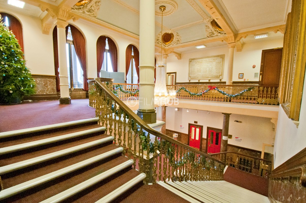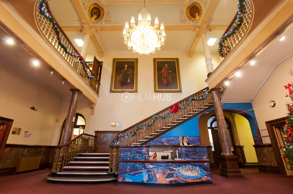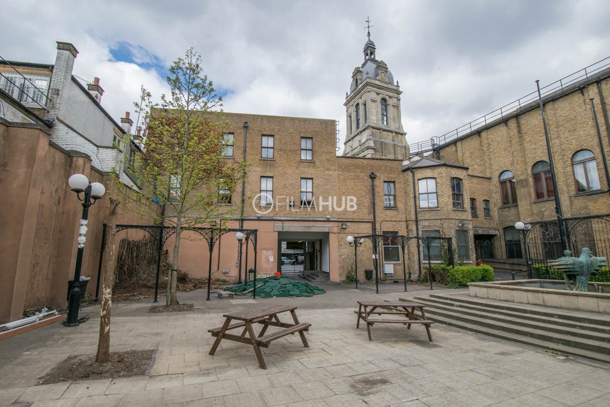 The basement area is a true gem with prison cells (used to be the old courthouse area) and corridors that are the perfect police cell location. Exposed brick and archive rooms provide a fantastic underground backdrop. The Town Hall aslo has a fantastic open courtyard.