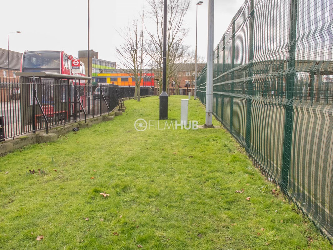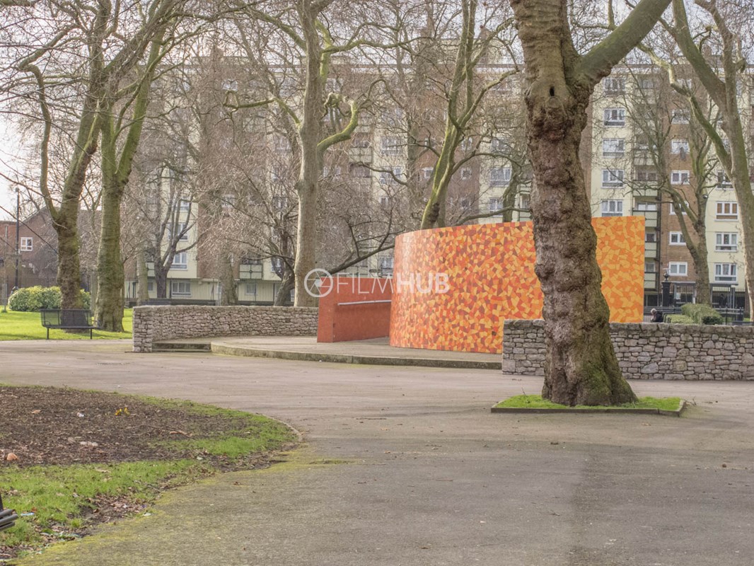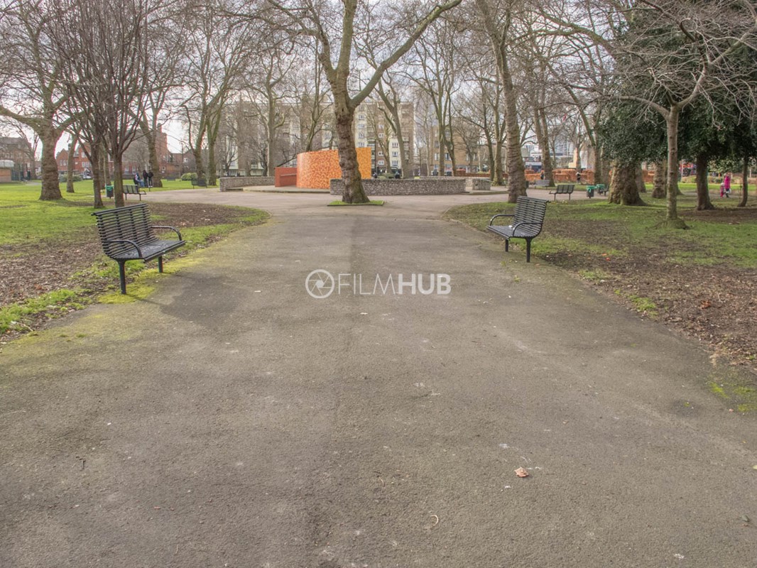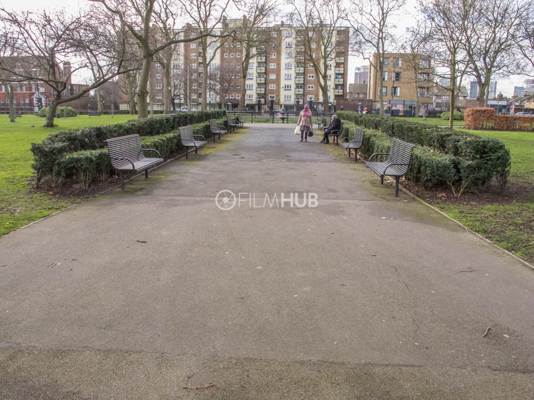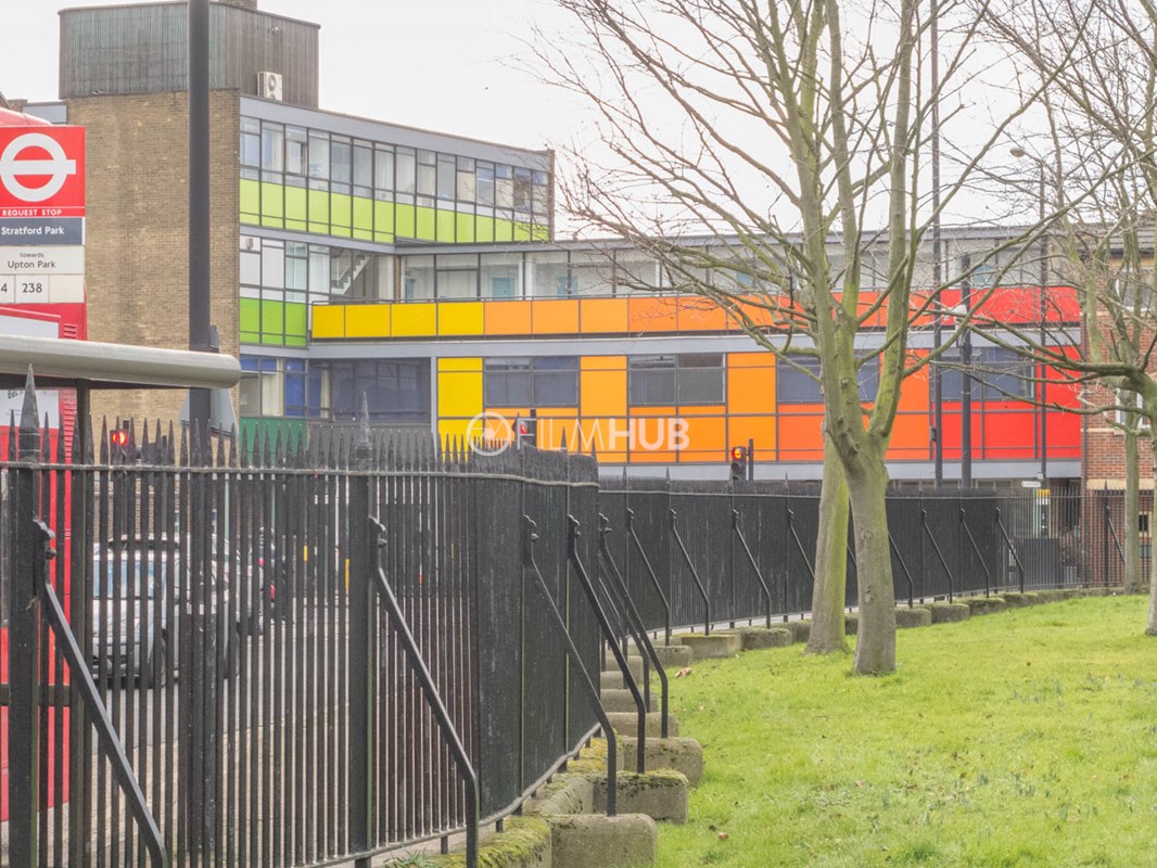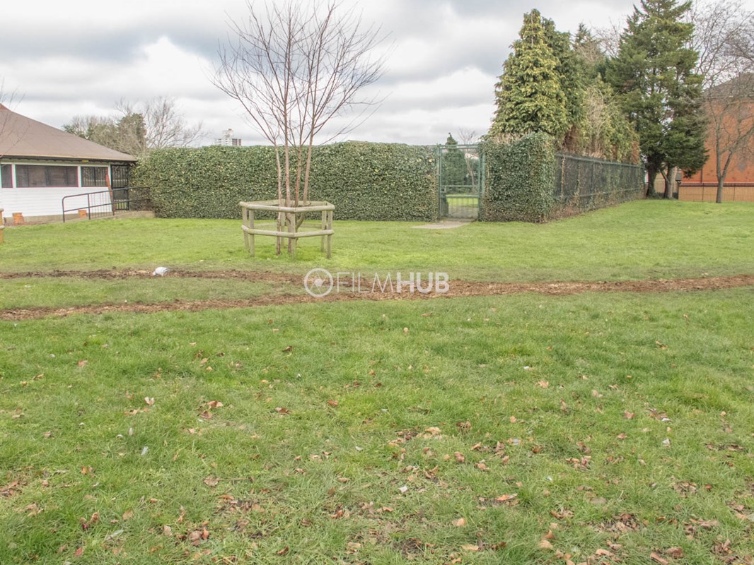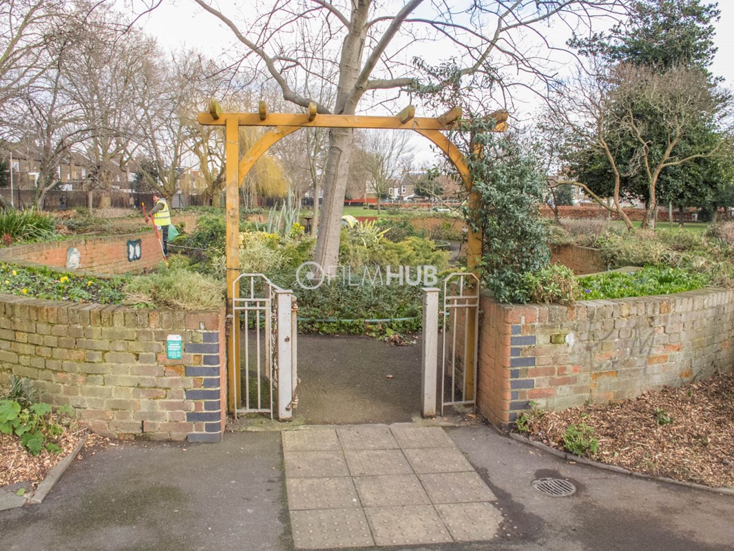 Stratford Park is a large park that is fenced by traditional, black, metal railings with prominent gate pillars at the entrances to the park. The park offers a variety of activities - there is a bowling green that comes with an out building, a basketball court, floodlit 5-a-side football pitch with an all weather surface and canopy, a floodlit multi-use games court, a floodlit tennis court and a normal tennis court.