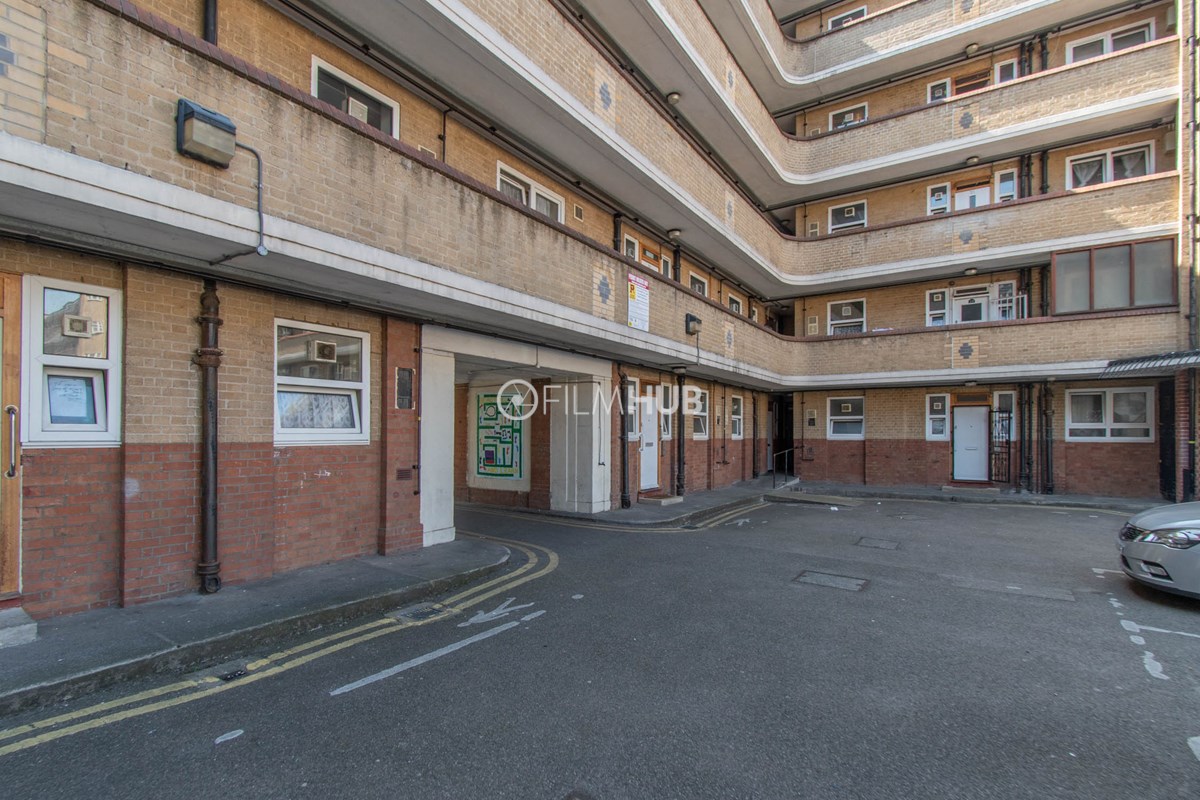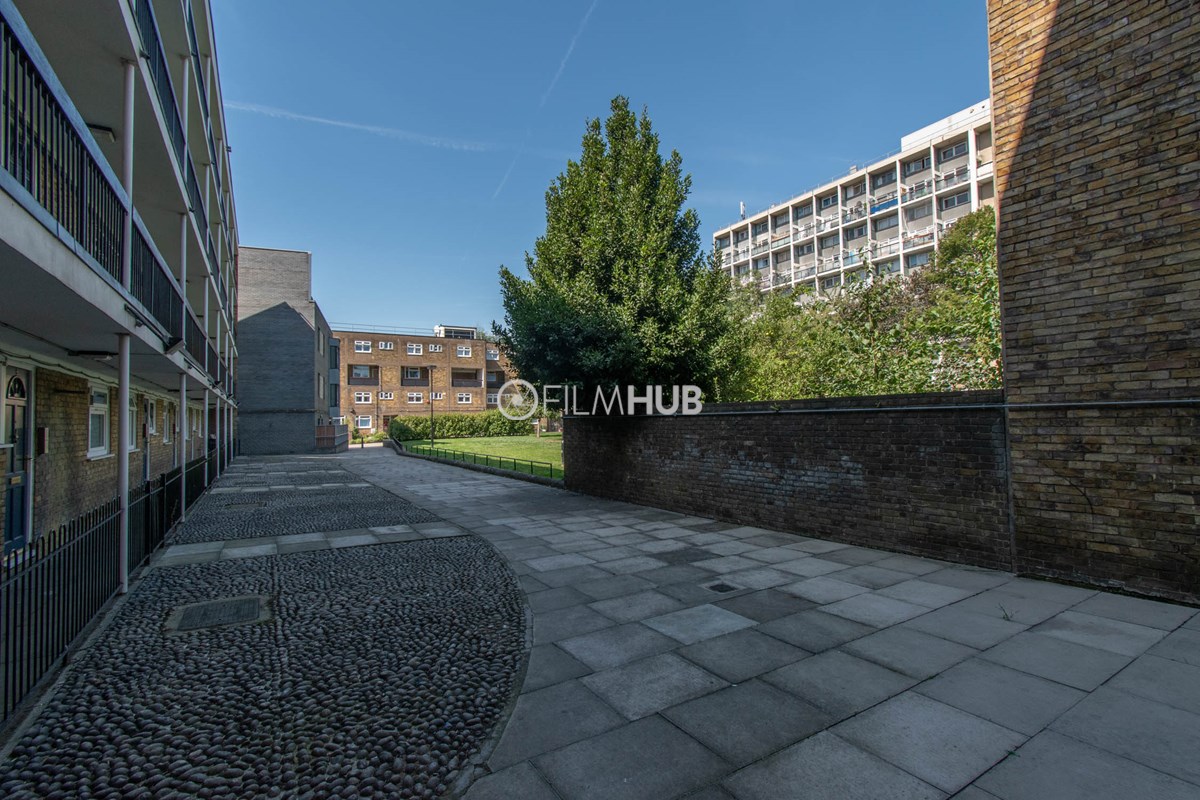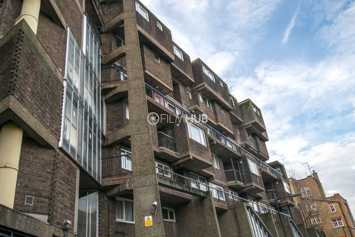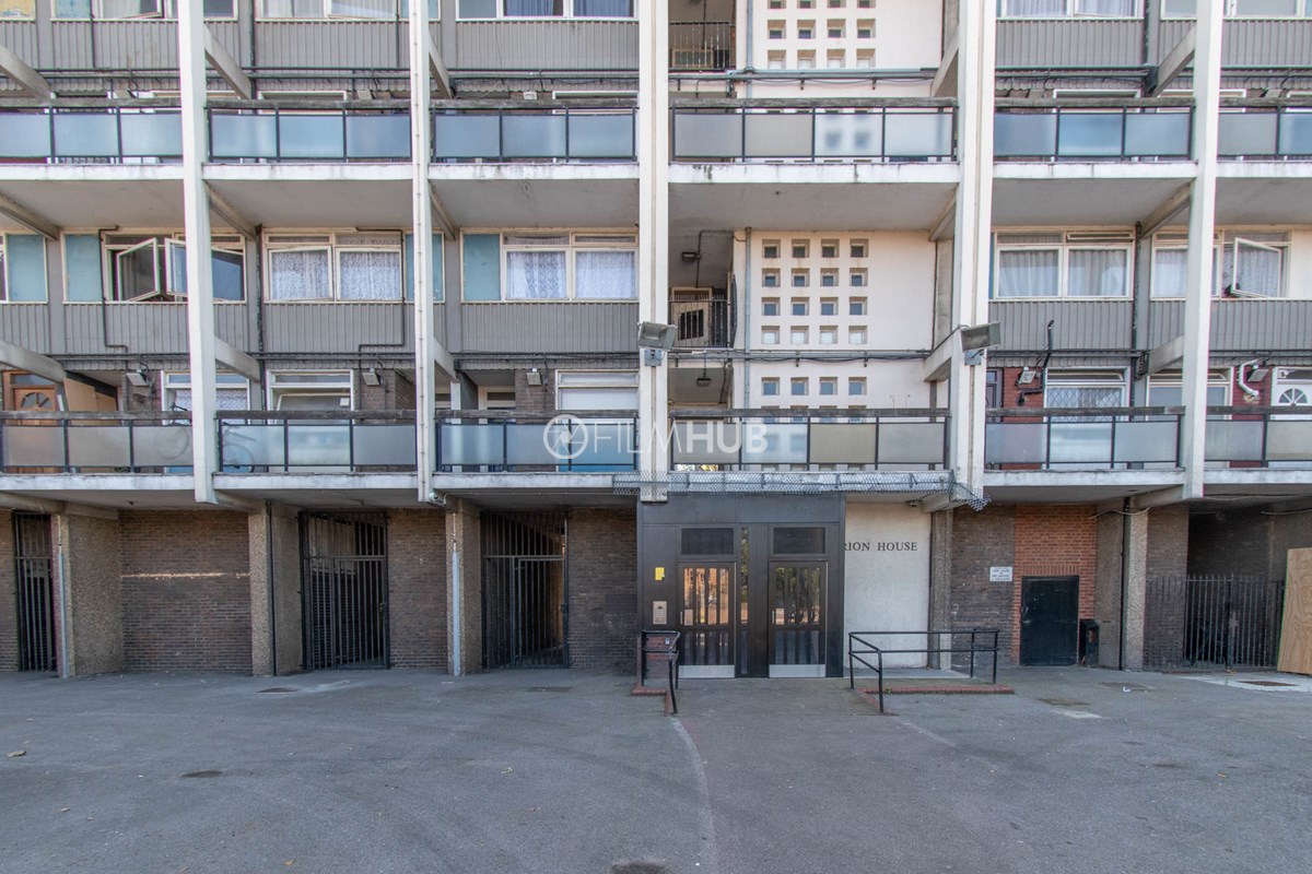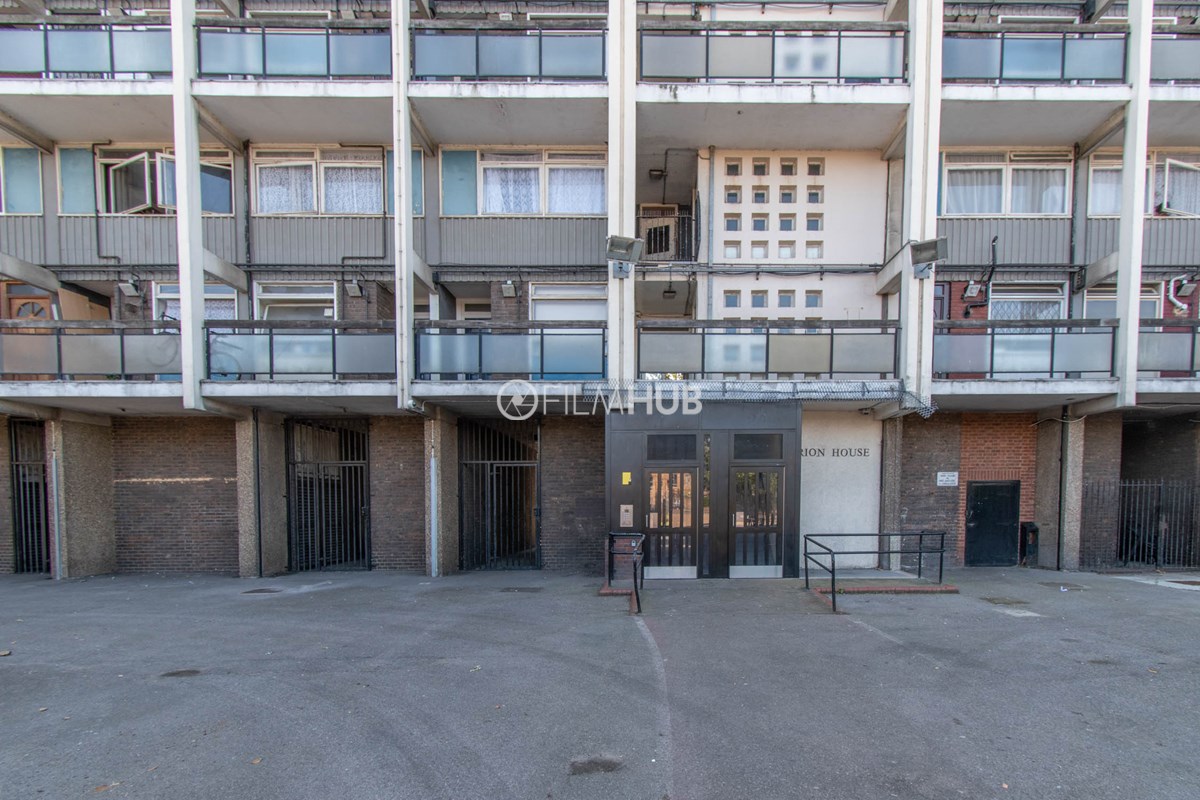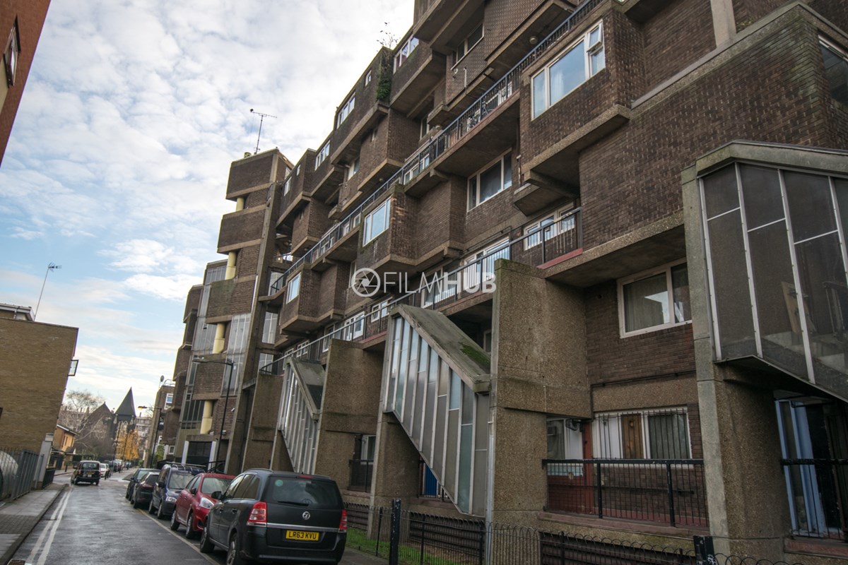 This estate offers several blocks of a mix of red and yellow brick with high open walkways and stunning urban views. With it's unique architecture, it will give an interesting and unique style to any given production.