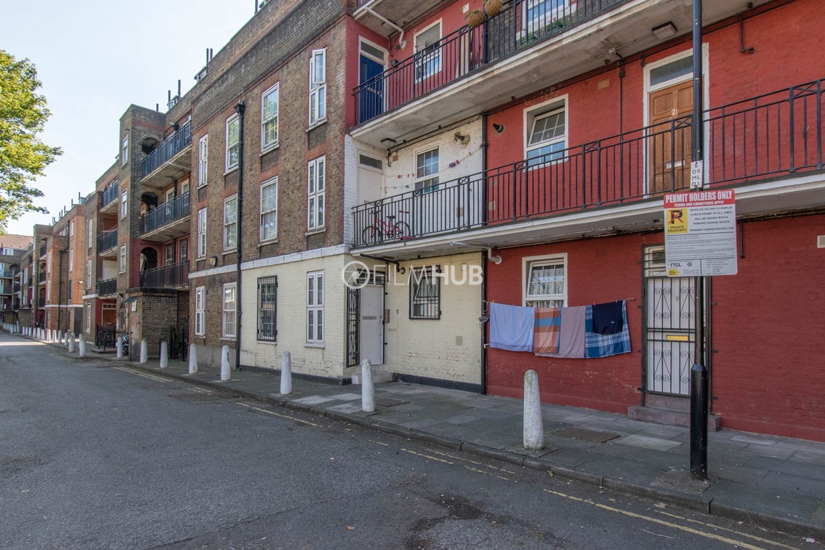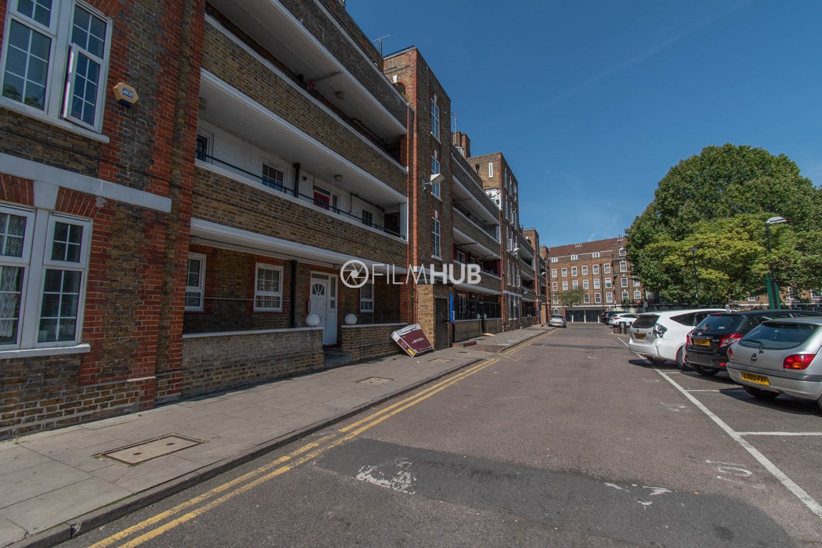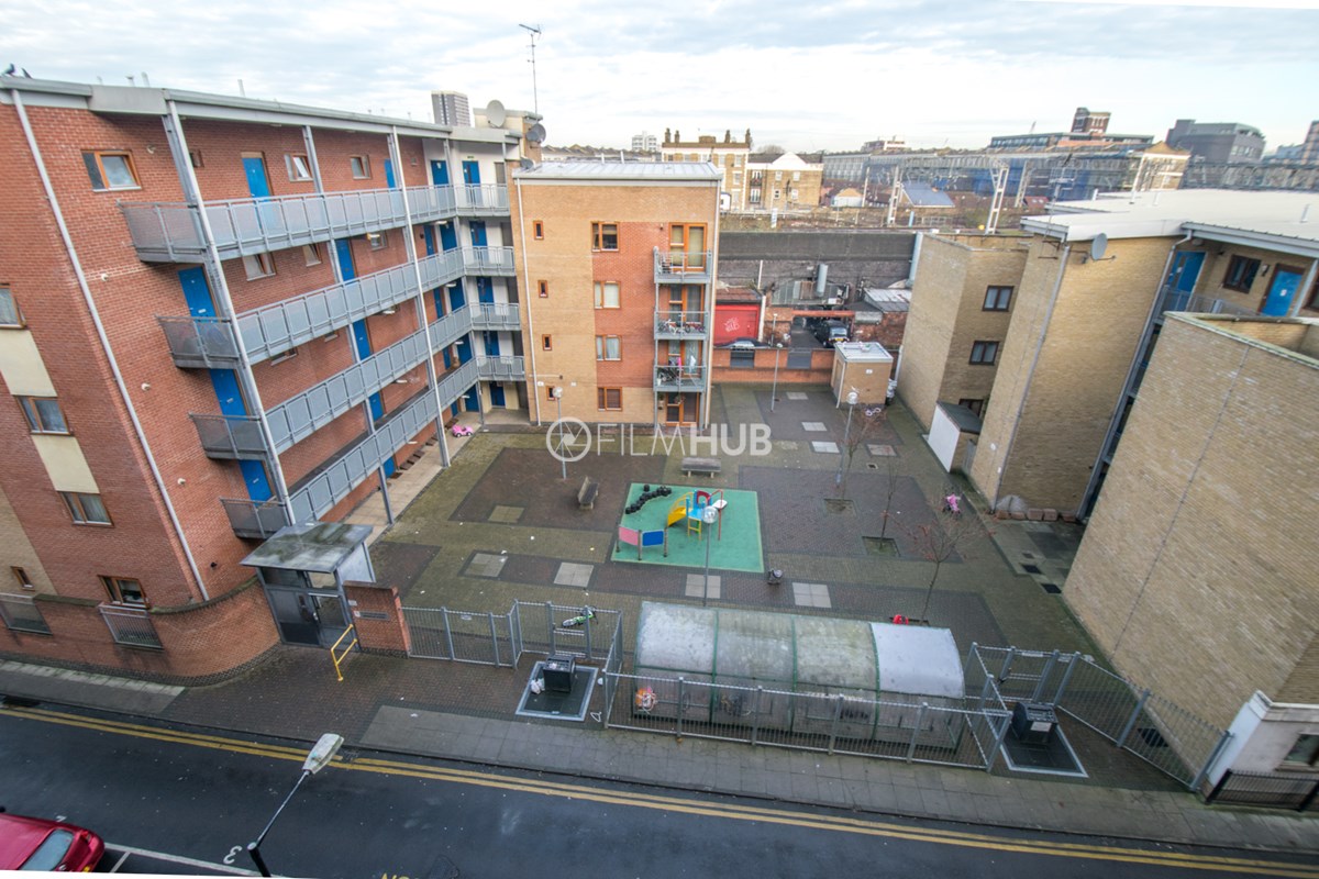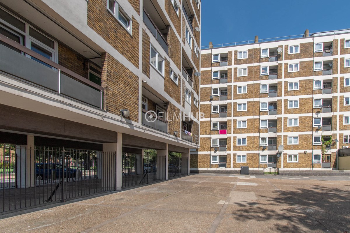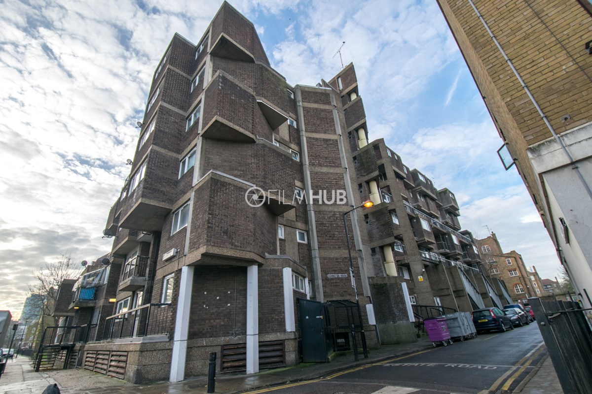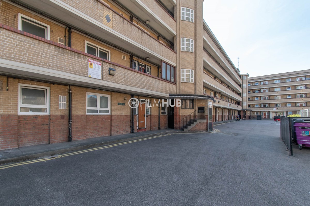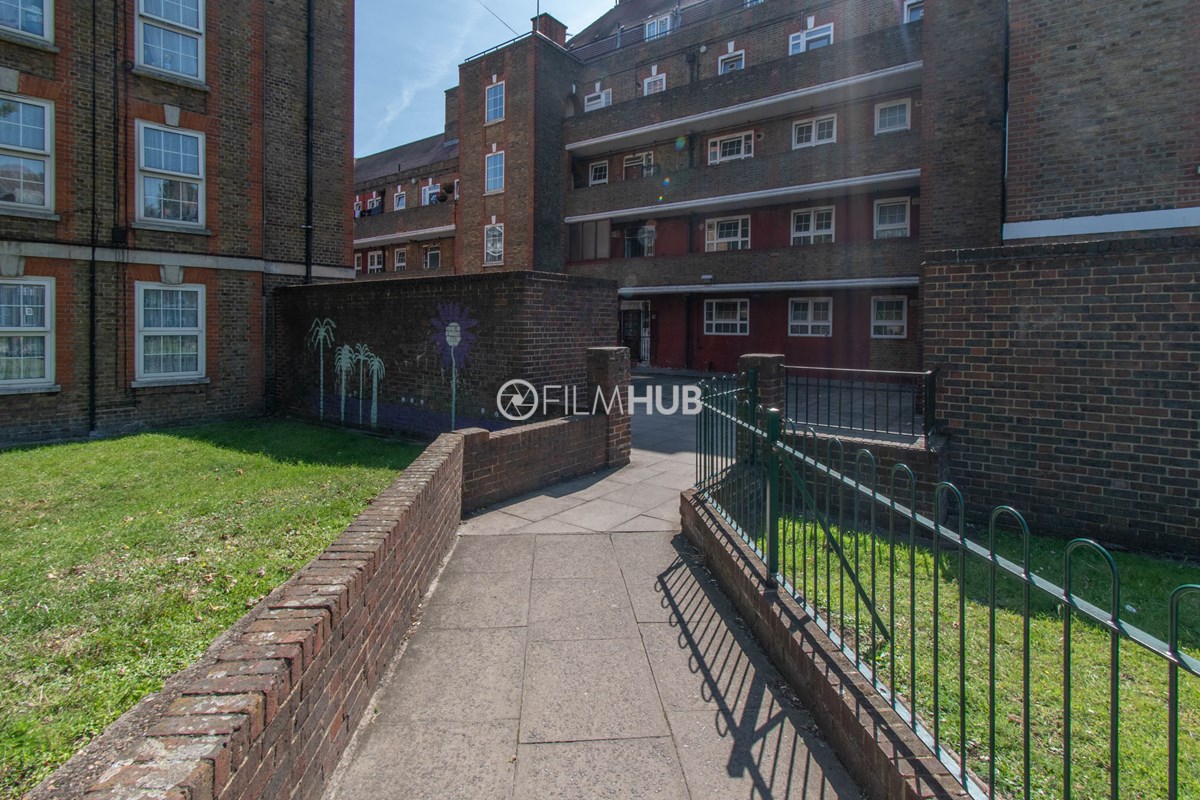 This estate offers several blocks of a mix of red and yellow brick with high open walkways and stunning urban views. With it's unique architecture, it will give an interesting and unique style to any given production.
