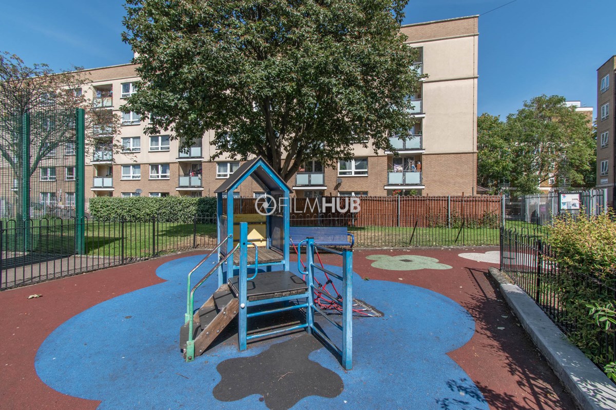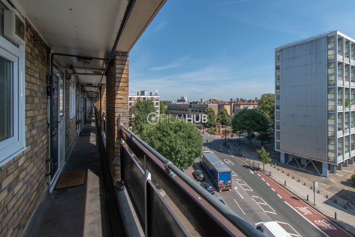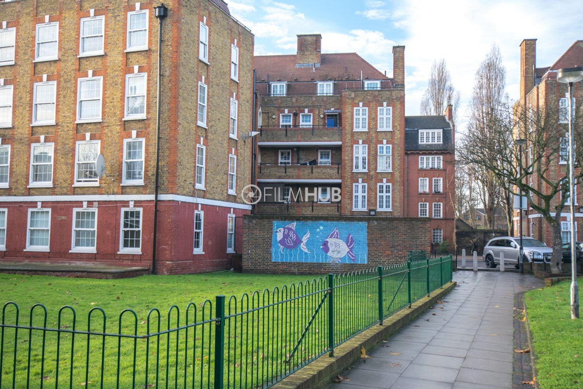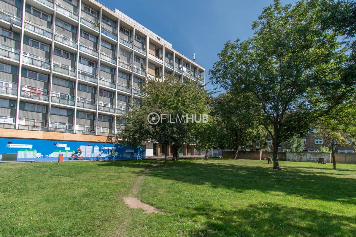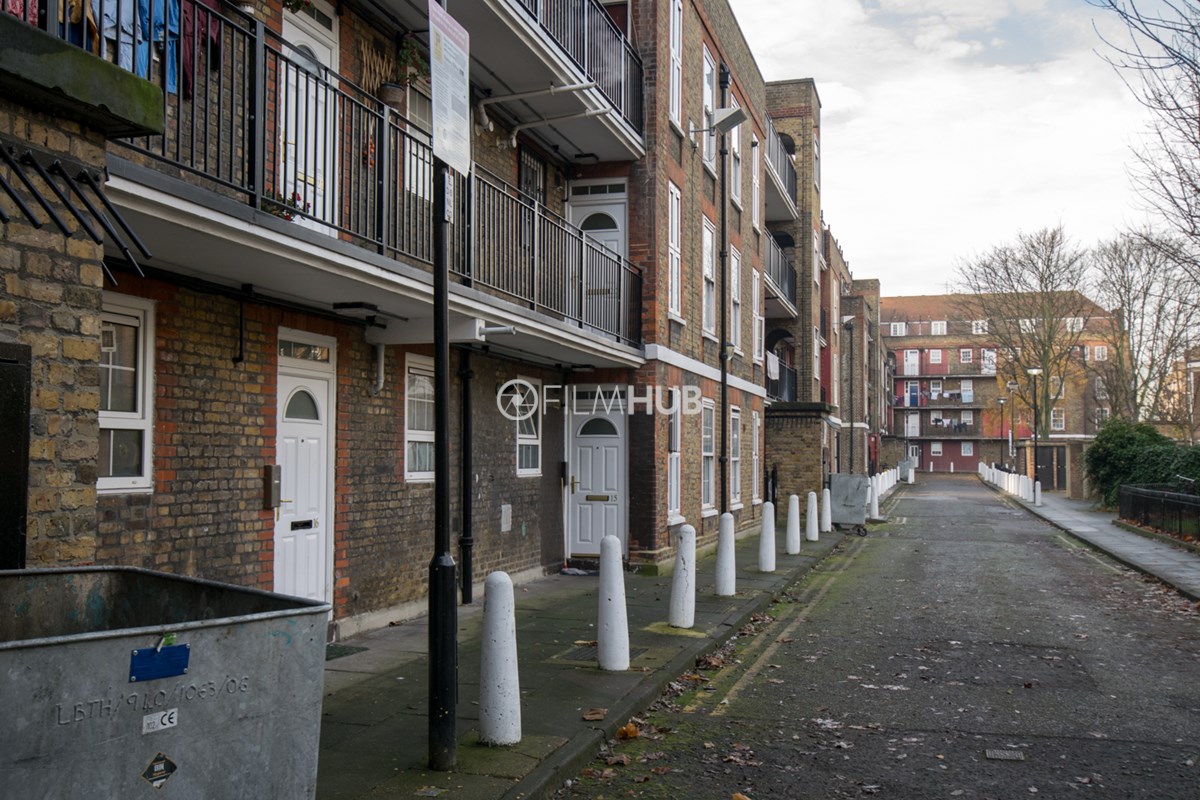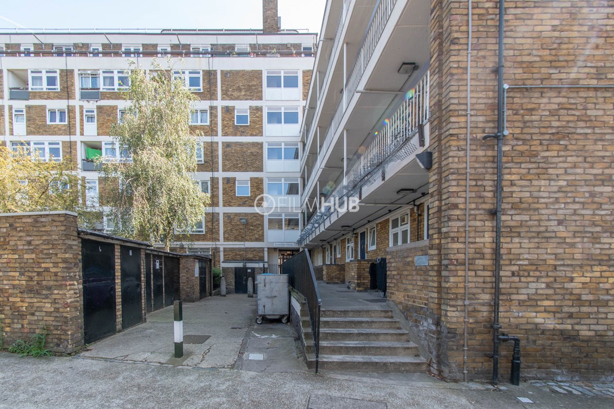 This estate offers several blocks of a mix of red and yellow brick with high open walkways and stunning urban views. With it's unique architecture, it will give an interesting and unique style to any given production.