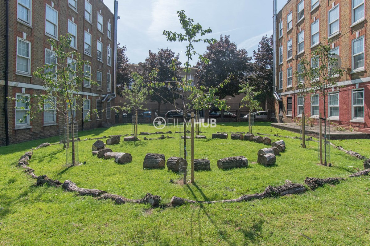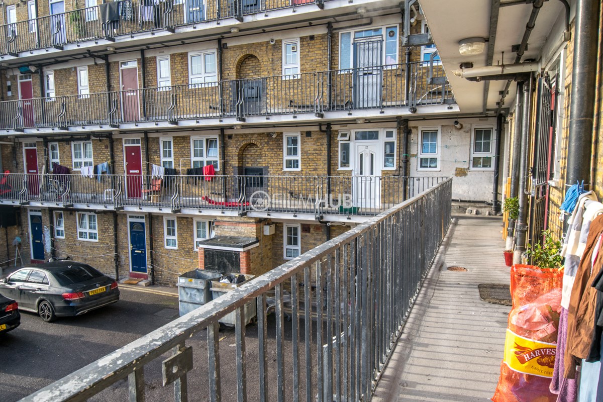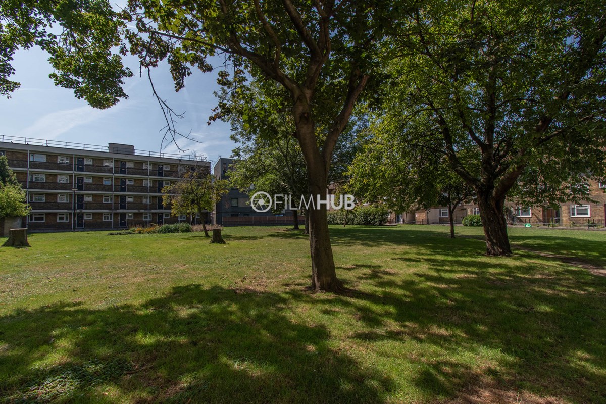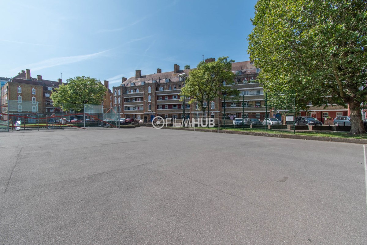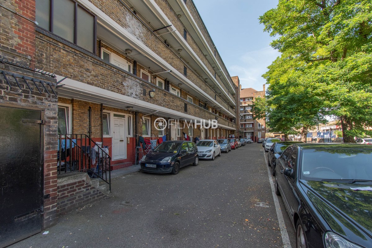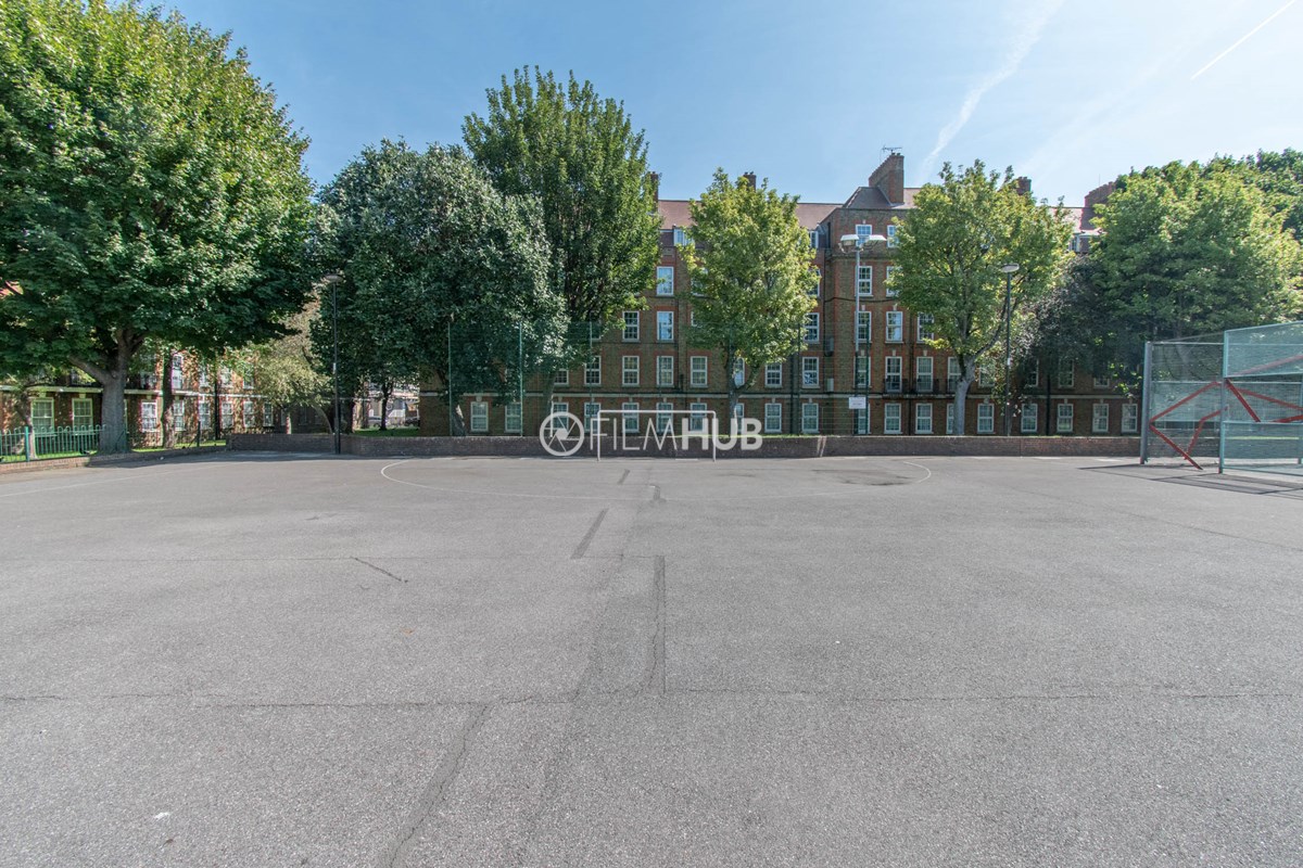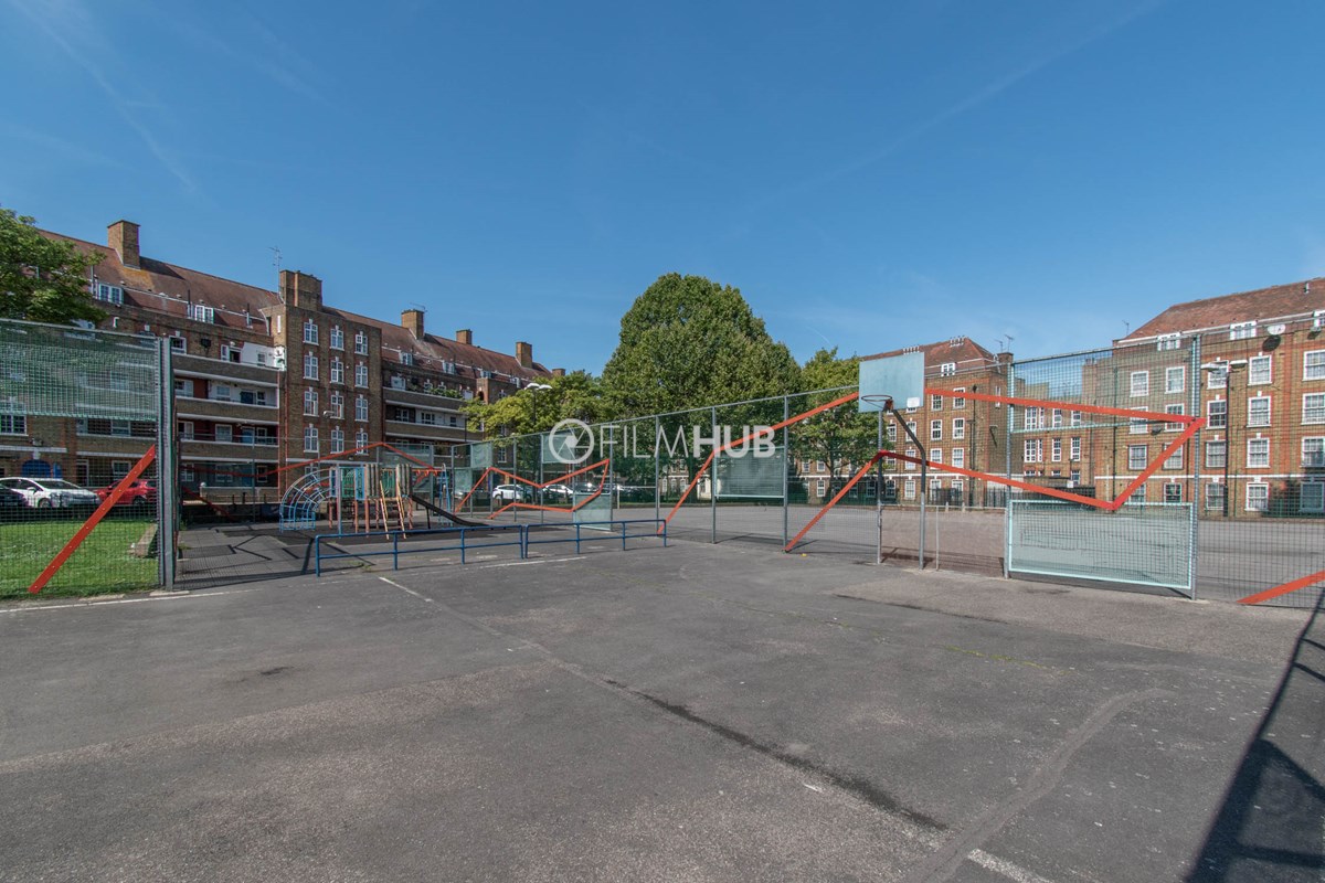 This estate offers several blocks of a mix of red and yellow brick with high open walkways and stunning urban views. With it's unique architecture, it will give an interesting and unique style to any given production.