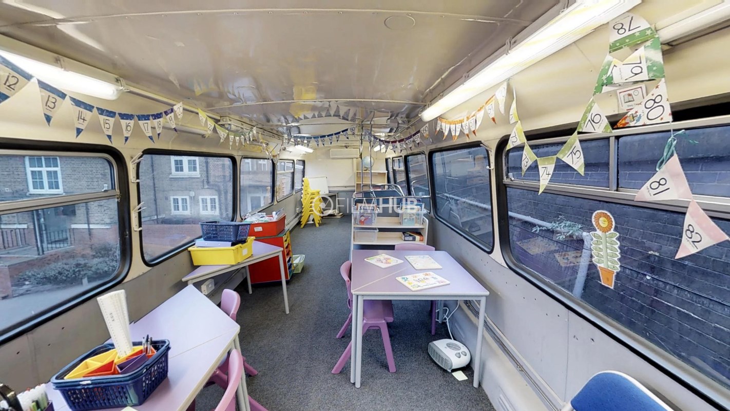 The school’s dedication to innovate with the play space available to children is what really sets it apart. Amongst the main halls and classrooms the school offers an iconic red double decker bus and the London tube carriage.