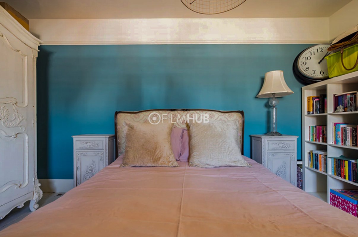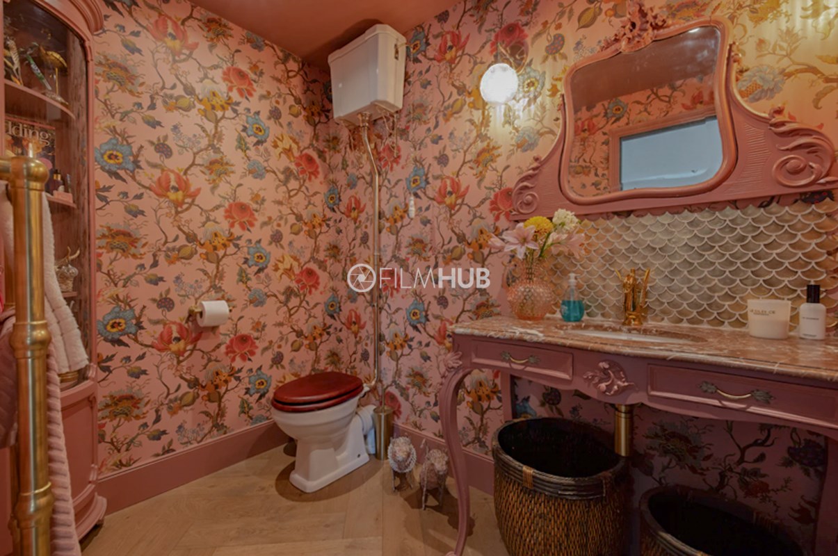 - Pink walls and front door