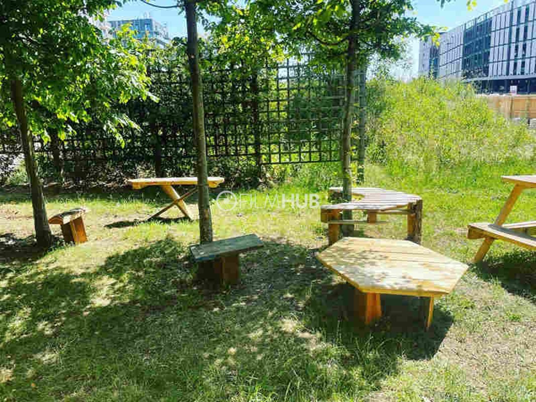 An engaging community location with a spacious adjoining garden space. Suitable location for events with a small two-seater room and a 12m x 7.21m main room with projectors and adjustable lighting. For outdoor use there is a secluded back terrace and a shaded area.