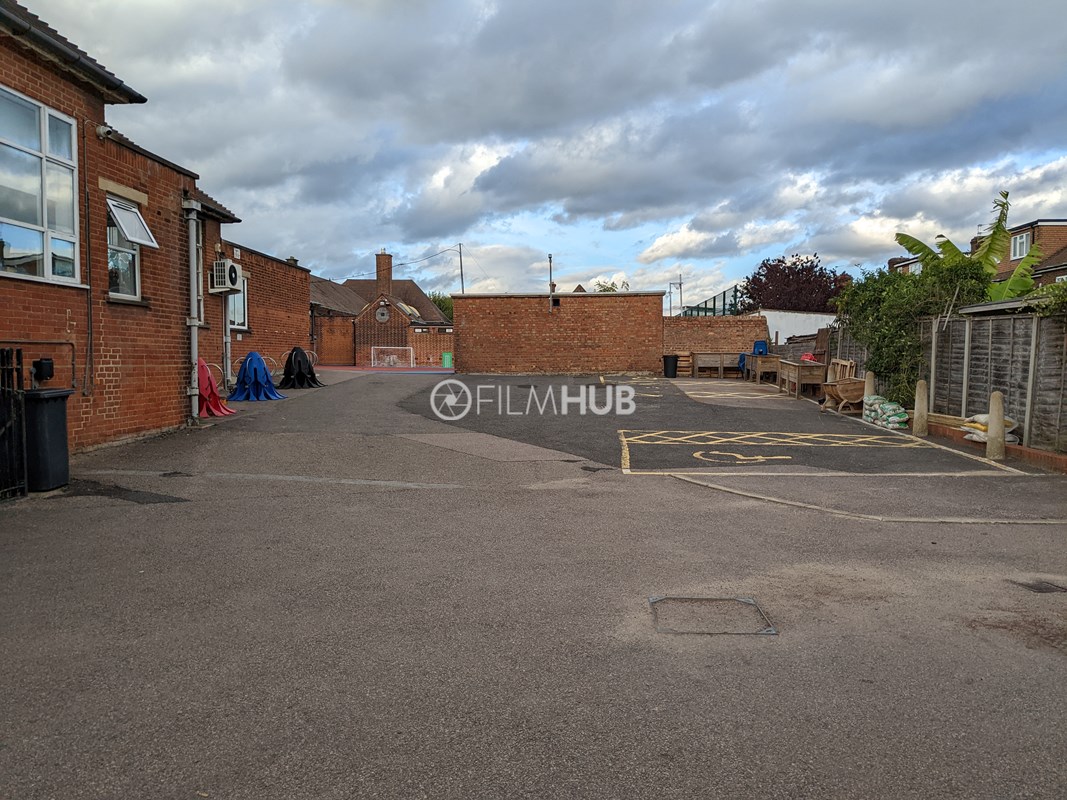 Large red brick primary school constructed in 1930s consisting of 2 separate buildings. Large playground areas that can facilitate parking and playing fields.