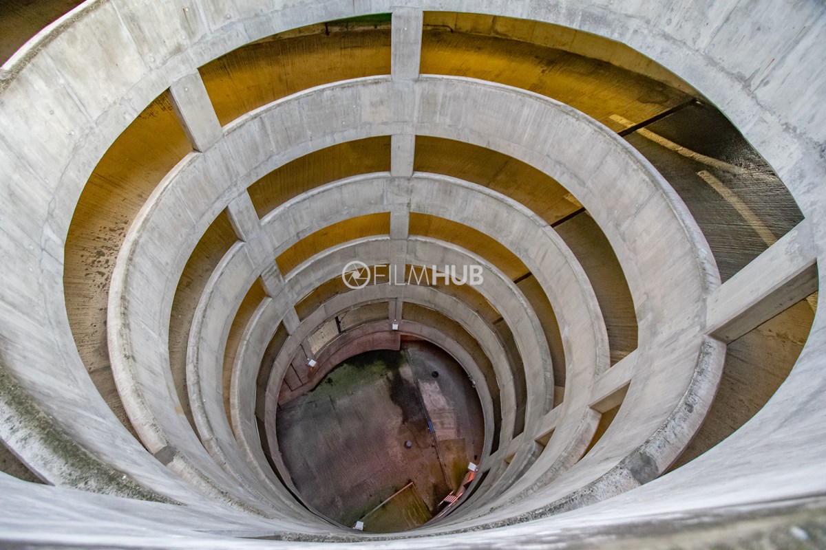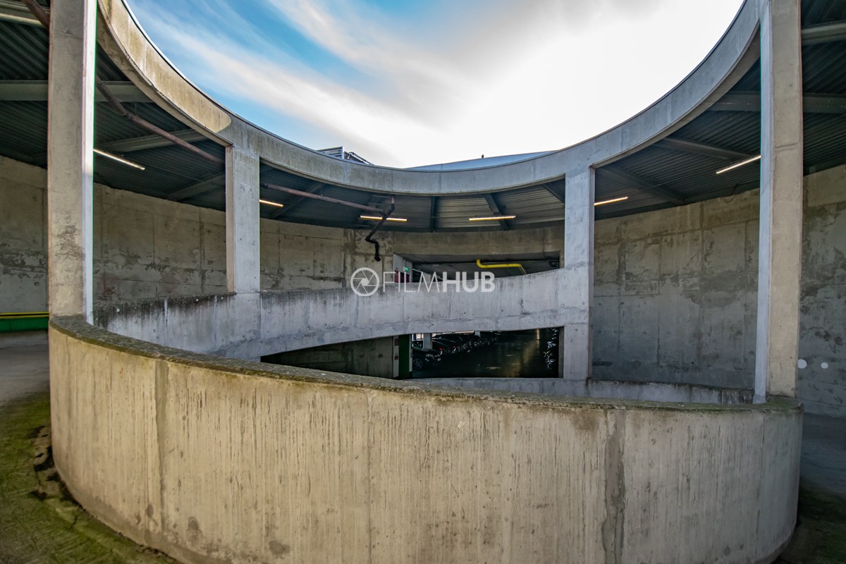 This multi-storey carpark spans over 6 floors and has a unique spiral entrance and exit. This space is available for both Unit Base parking and filming.
