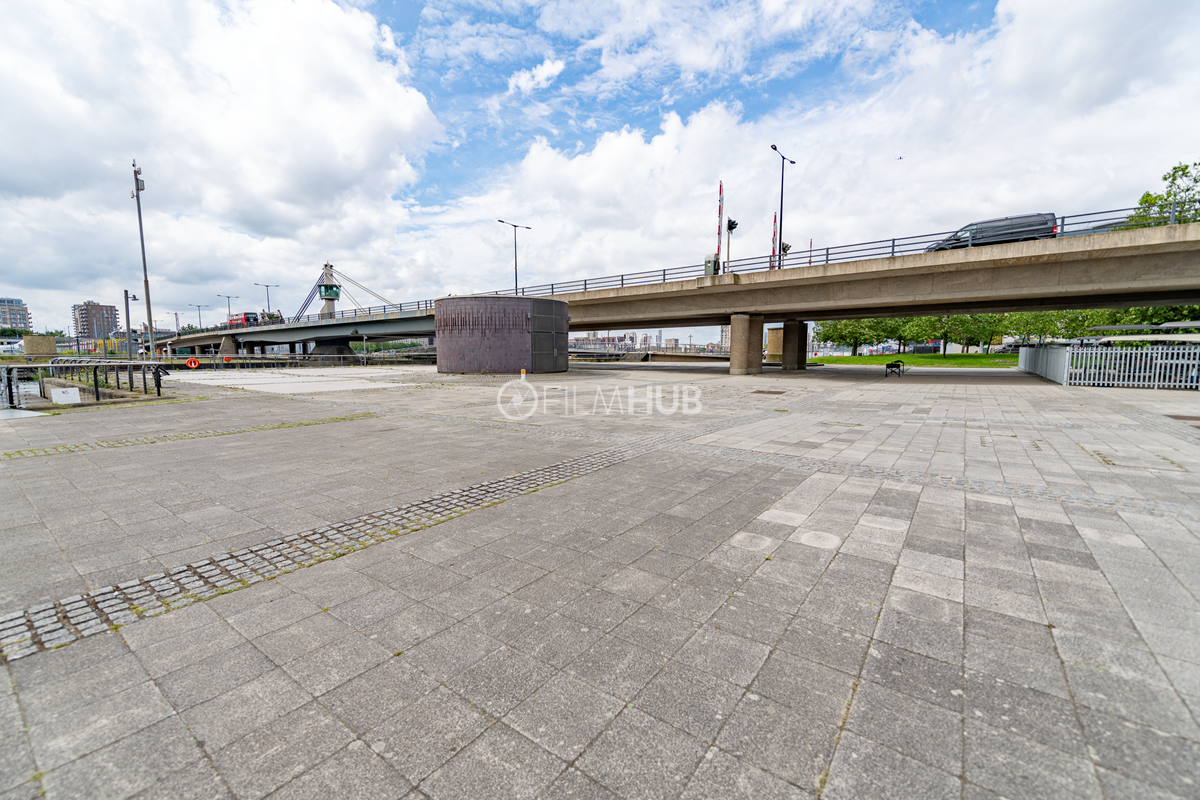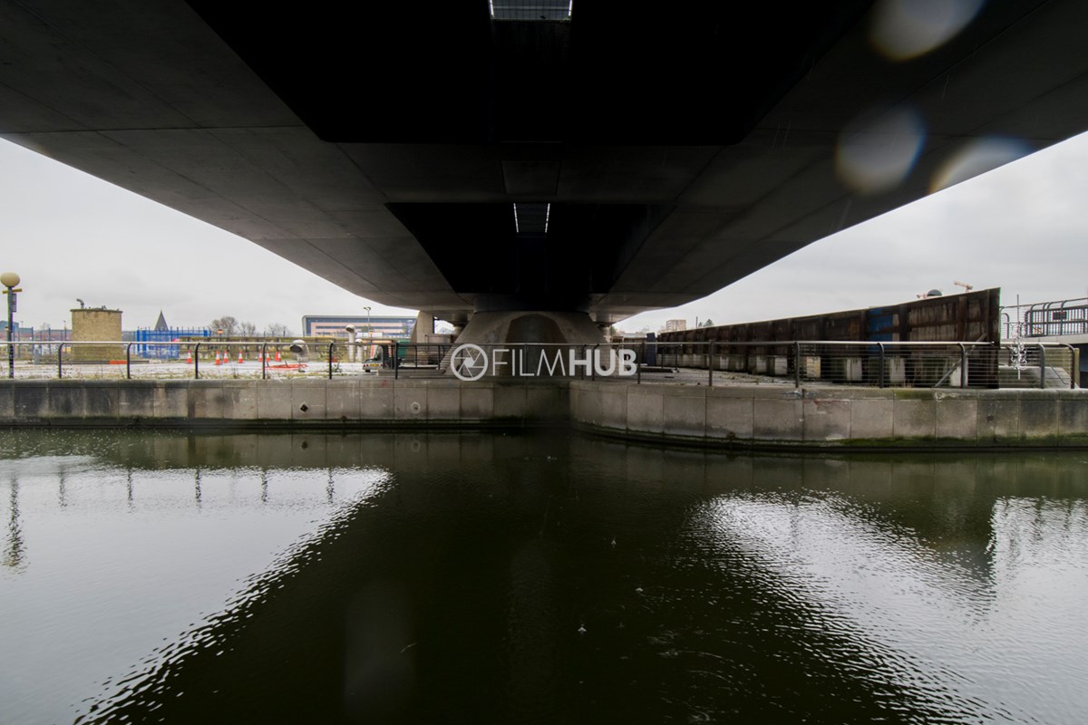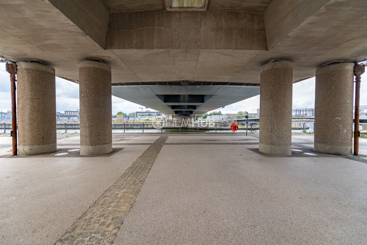 Under the Bridge offers a brutalist environment situated in the middle of open water. The main bridge swings open from a central pivot point to allow large boats, or even large vhicles on the land, to pass under.