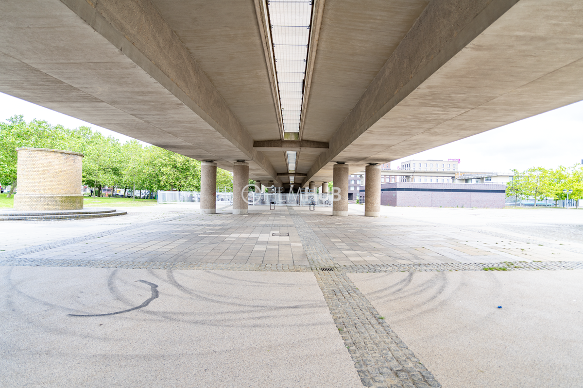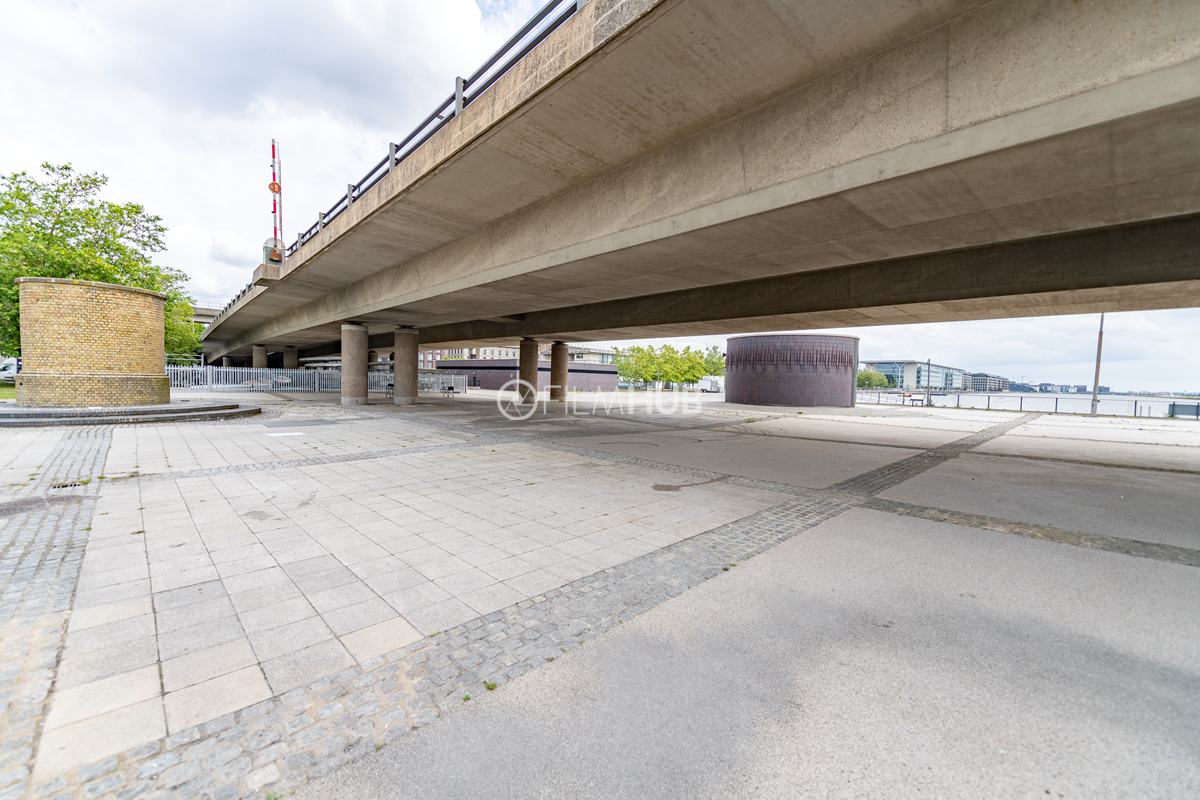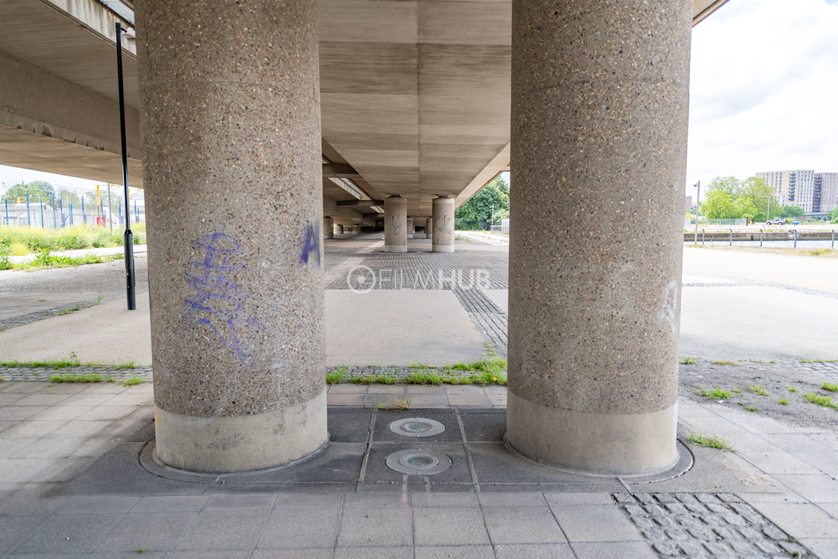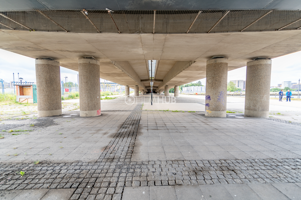 Under the Bridge offers a brutalist environment situated in the middle of open water. The main bridge swings open from a central pivot point to allow large boats, or even large vhicles on the land, to pass under.