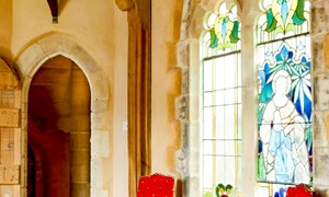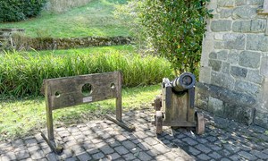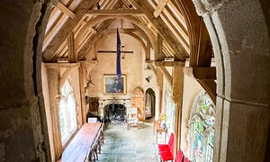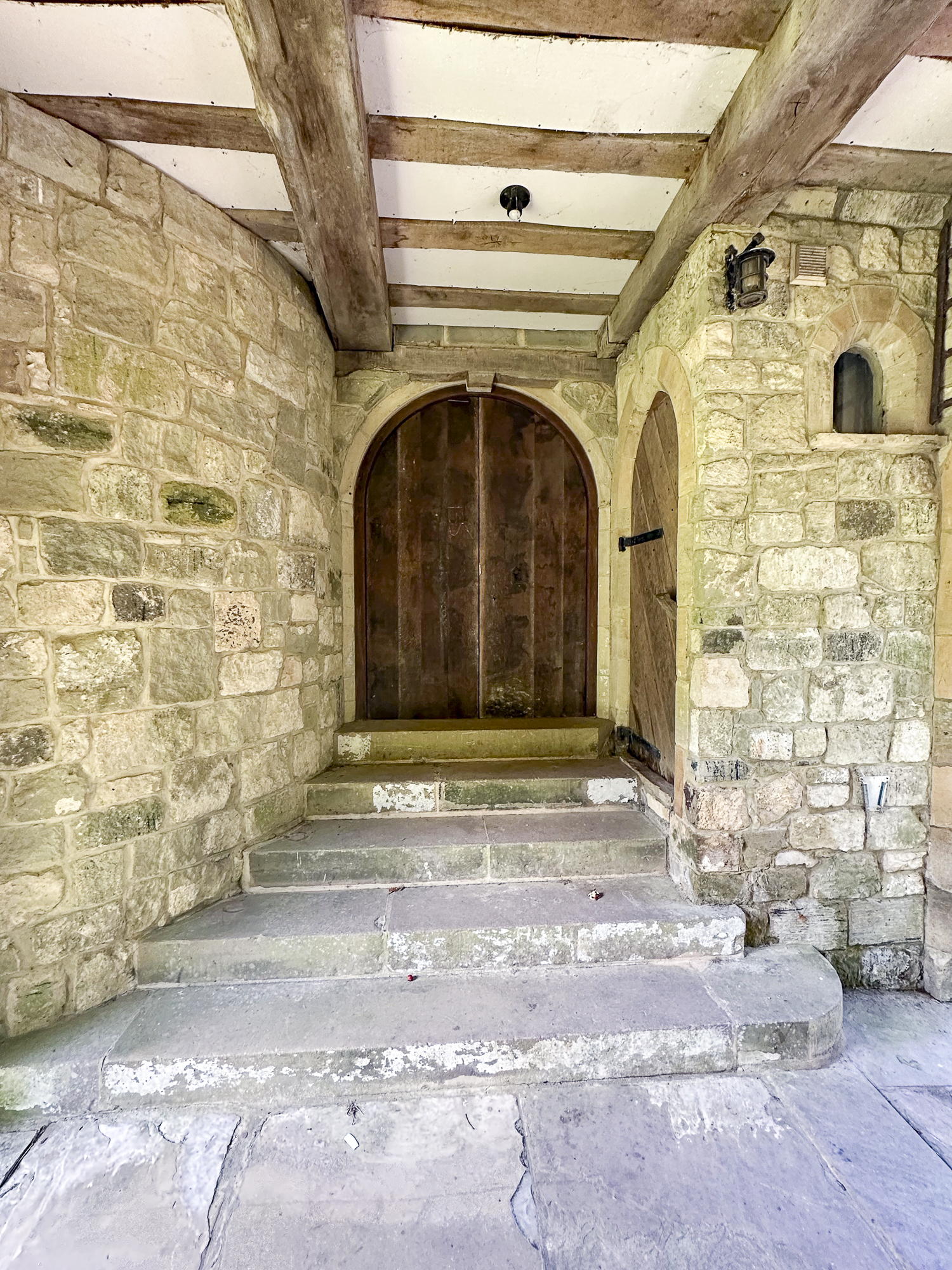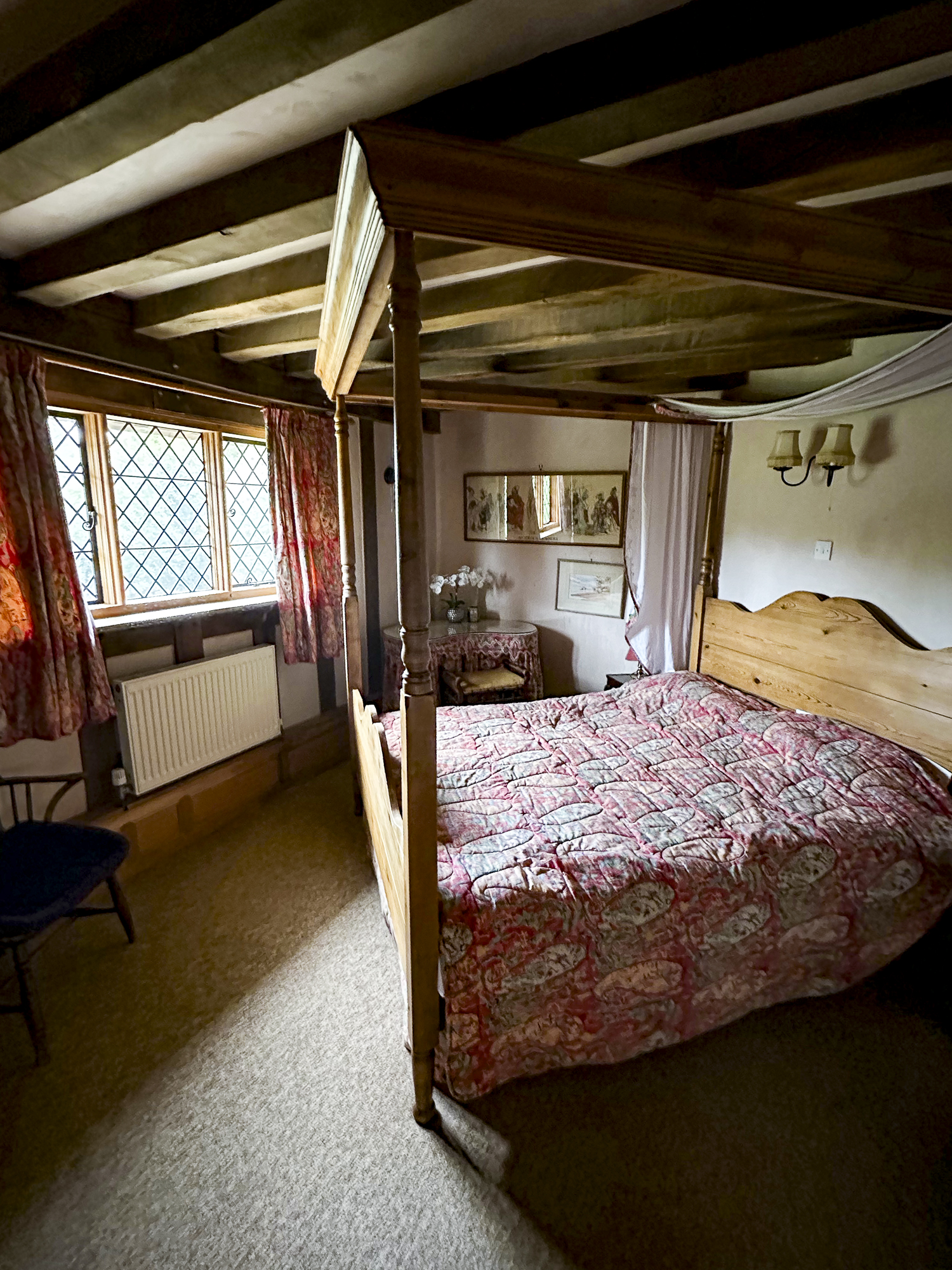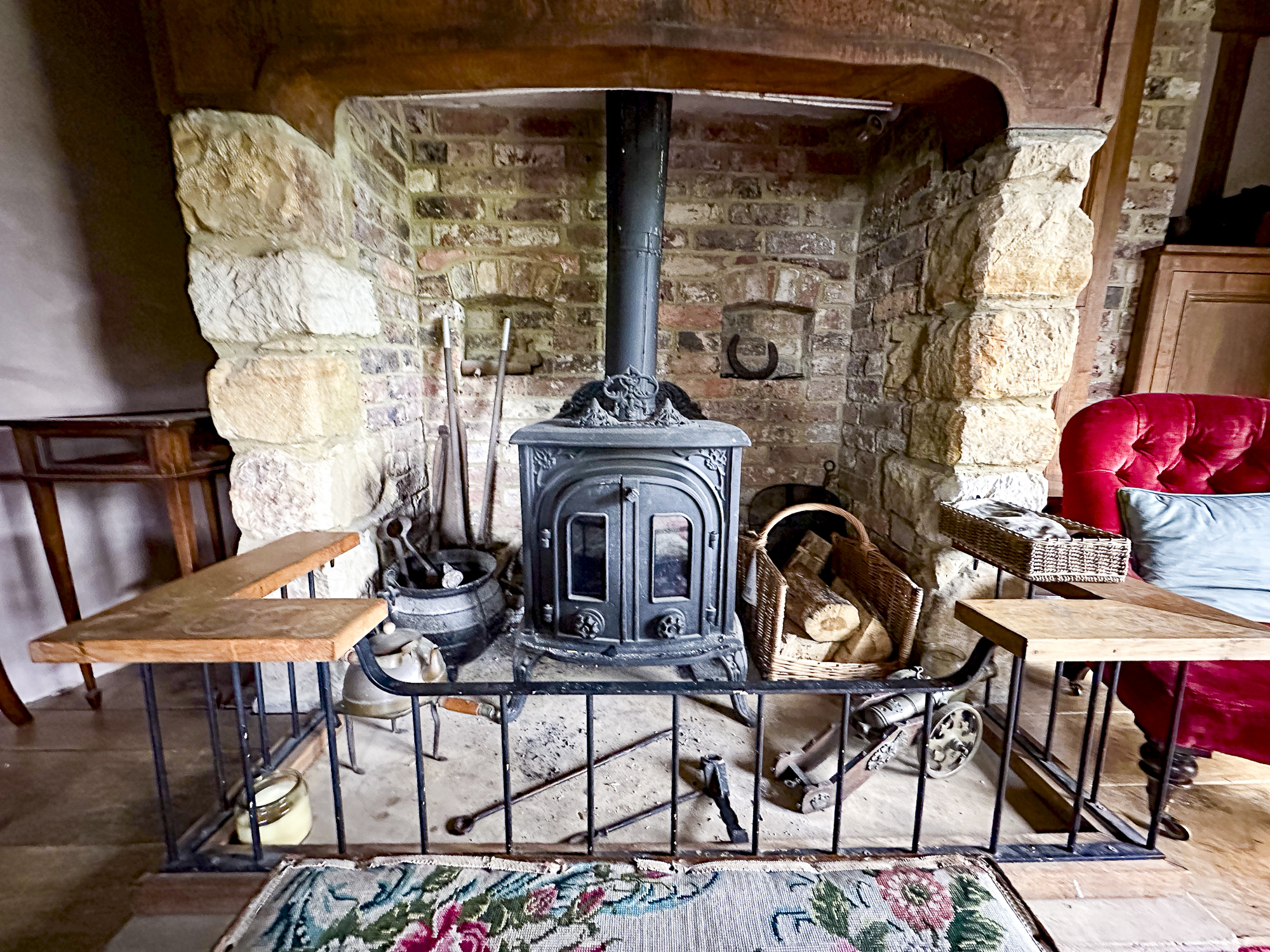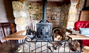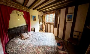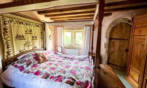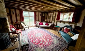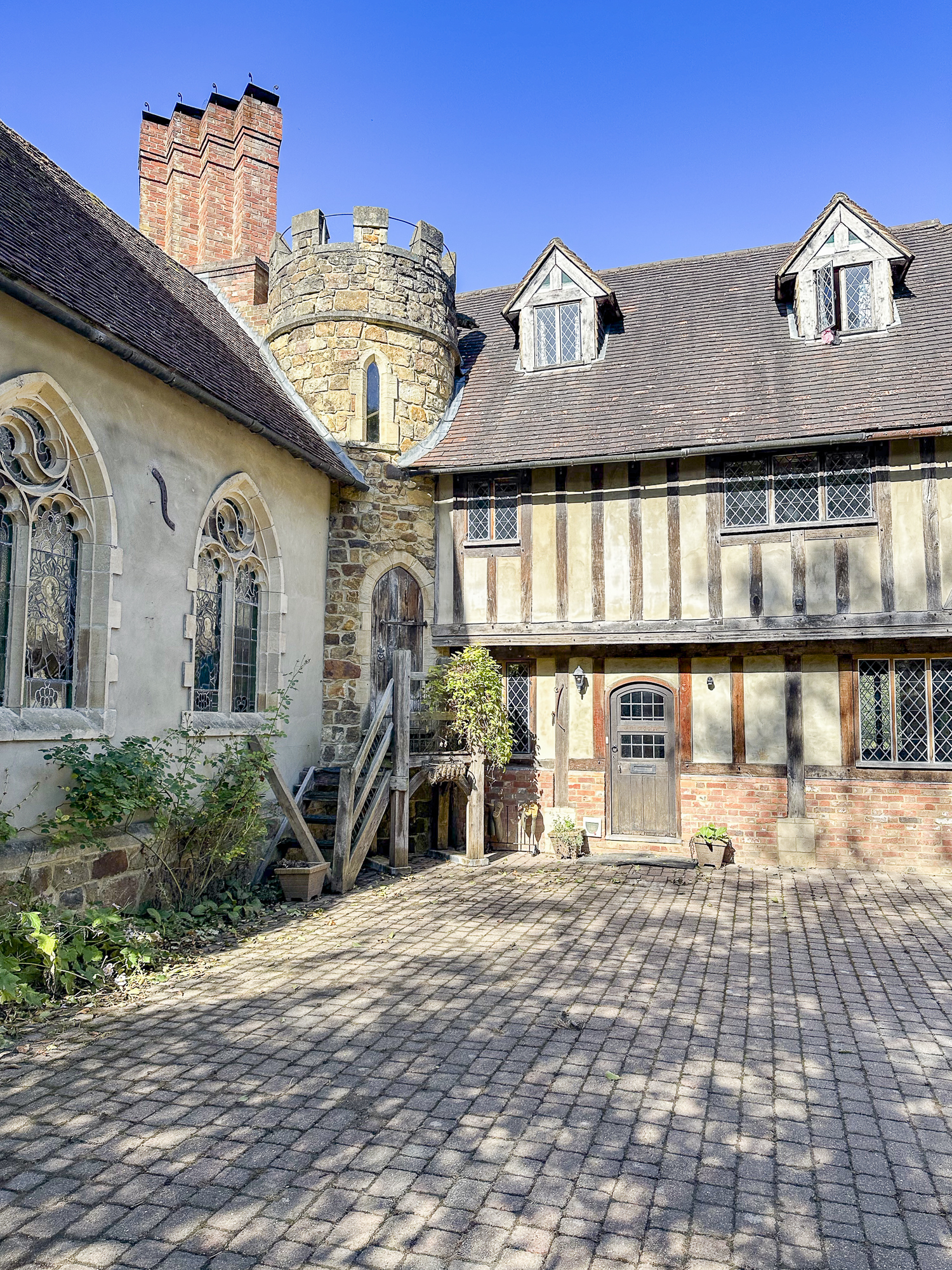 Inside, a vaulted banqueting hall sits alongside flagstone floors, stone spiral staircases and open fireplaces. Period details include beamed ceilings and walls, stained-glass windows, suits of armour, mounted stag heads and historic paintings.
