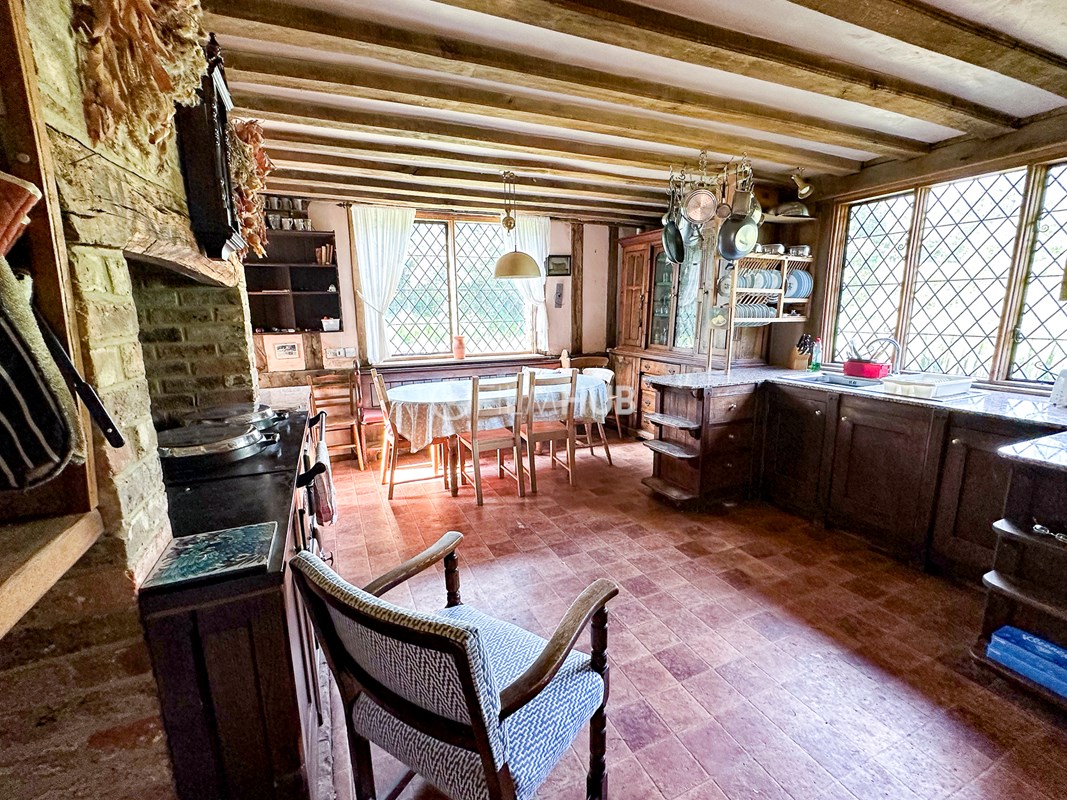 Approached via a private, oak-lined drive and surrounded by rolling countryside, the site offers extensive on-site parking.