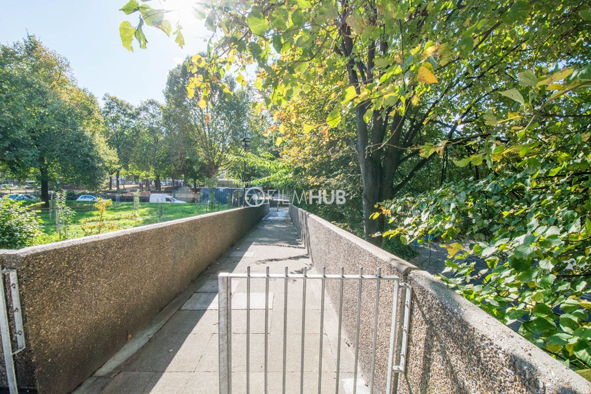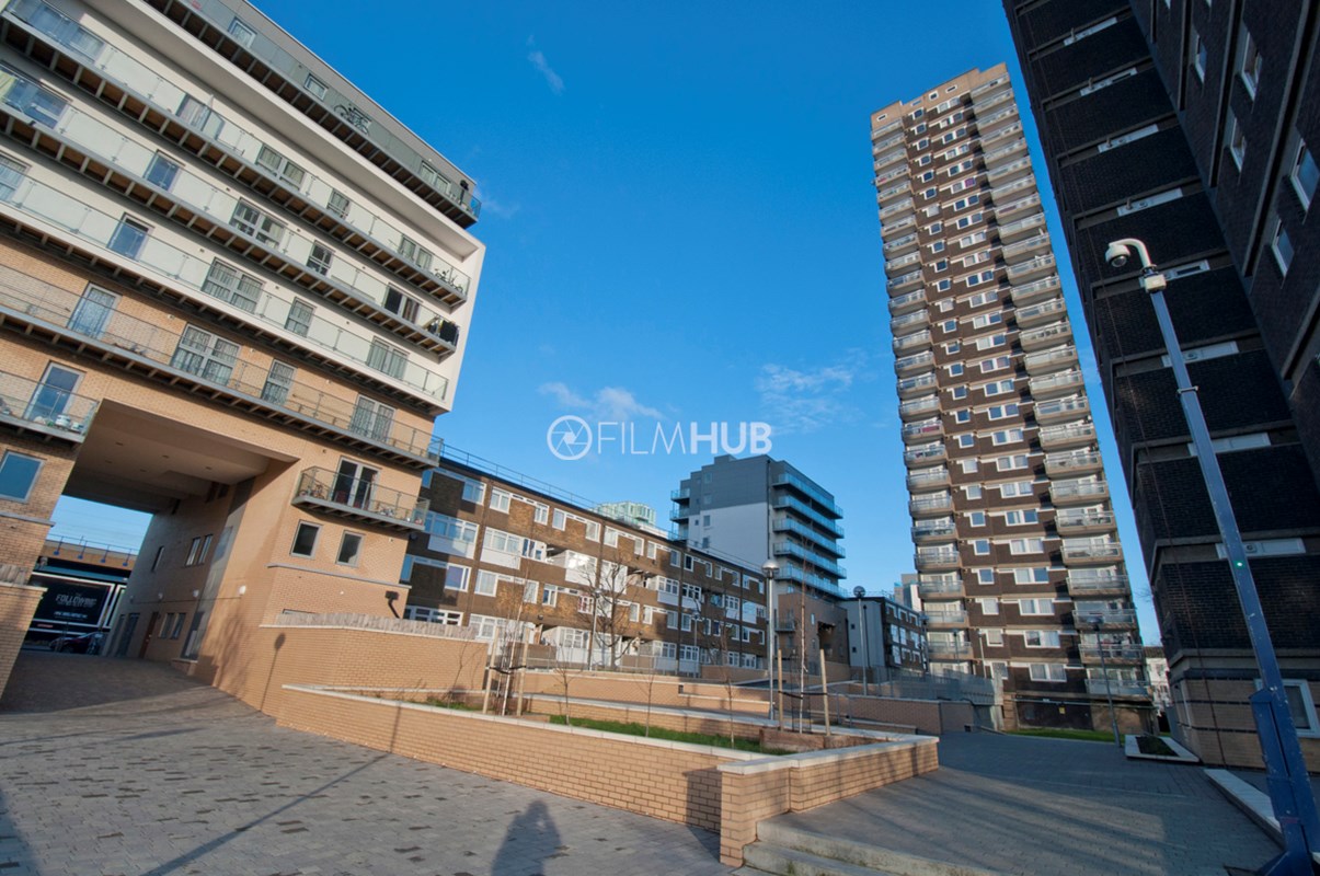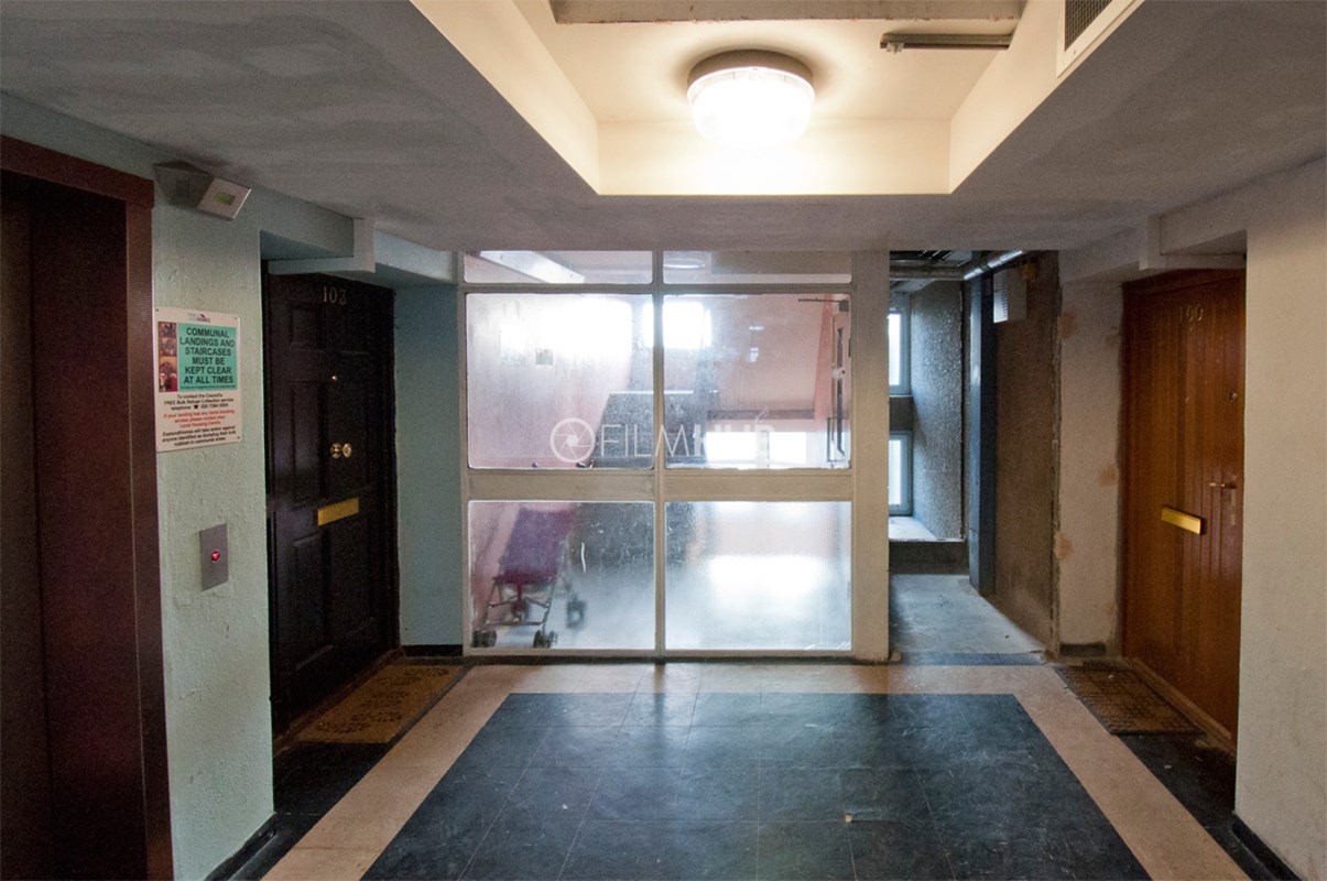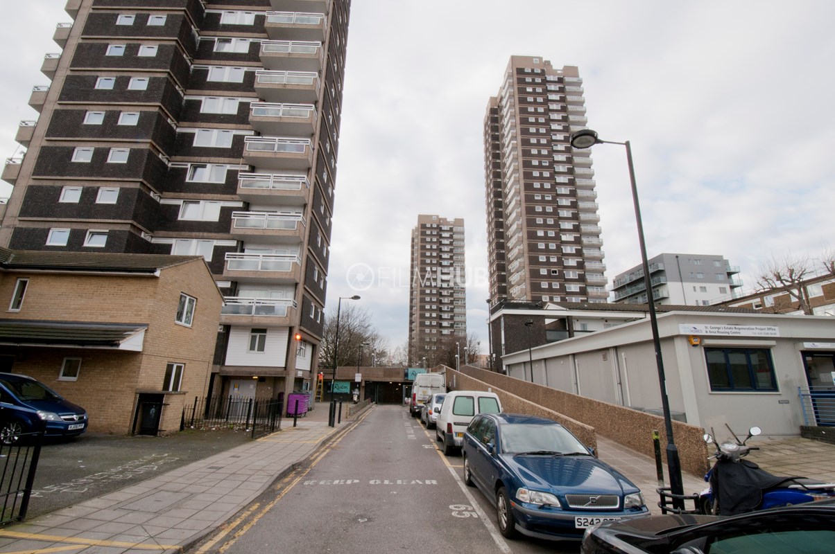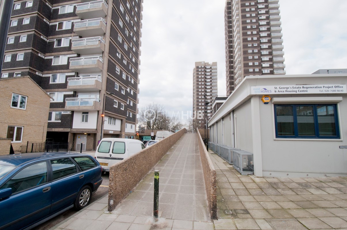 It was one of the first London Estates to include garaging and includes below-raised terraces. With fantastic walkways, underground garages and lift lobbies, the estate provides a perfect urban backdrop for filming.
