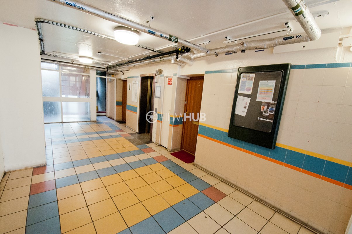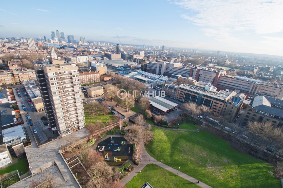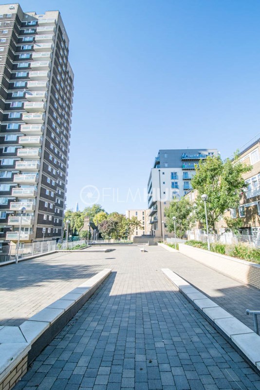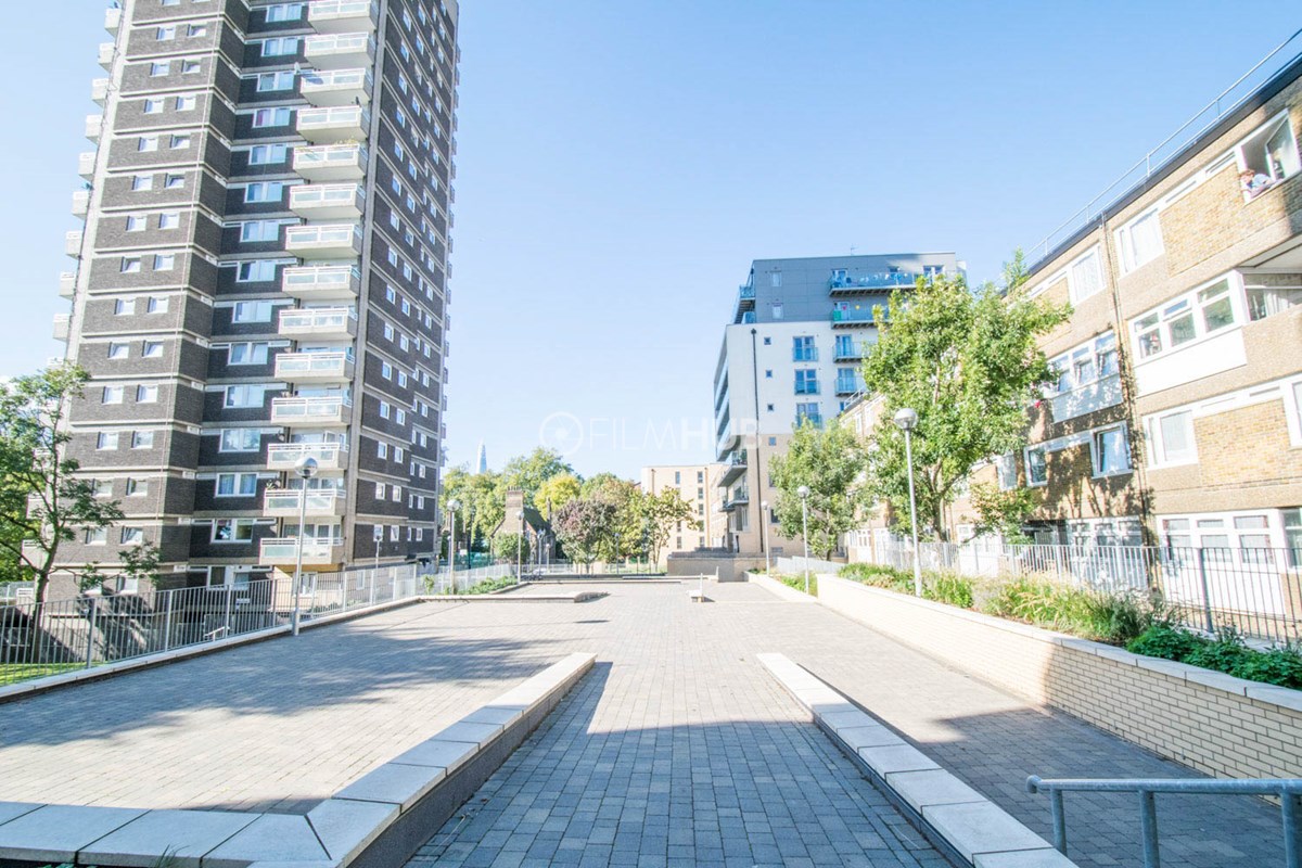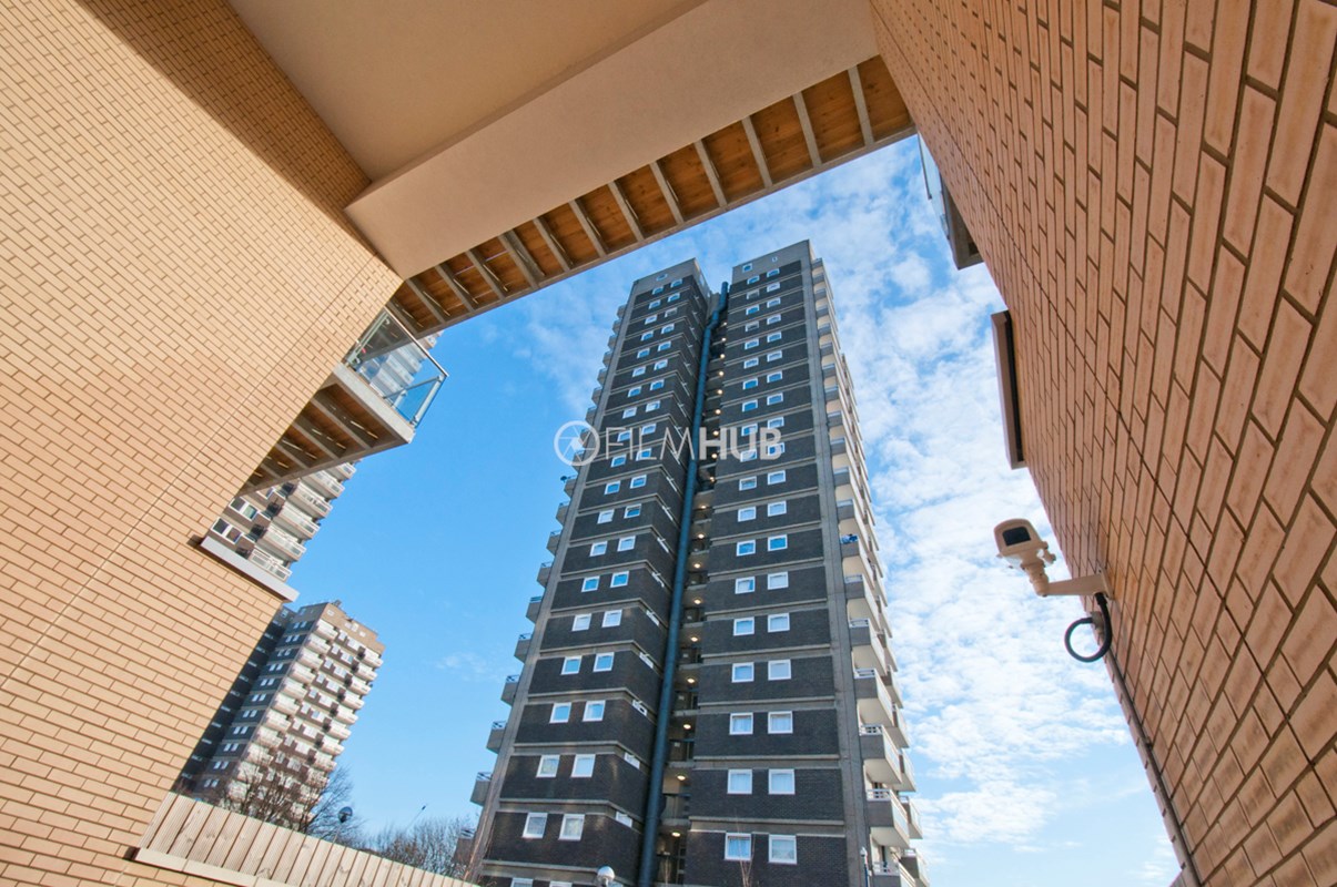 It was one of the first London Estates to include garaging and includes below-raised terraces. With fantastic walkways, underground garages and lift lobbies, the estate provides a perfect urban backdrop for filming.