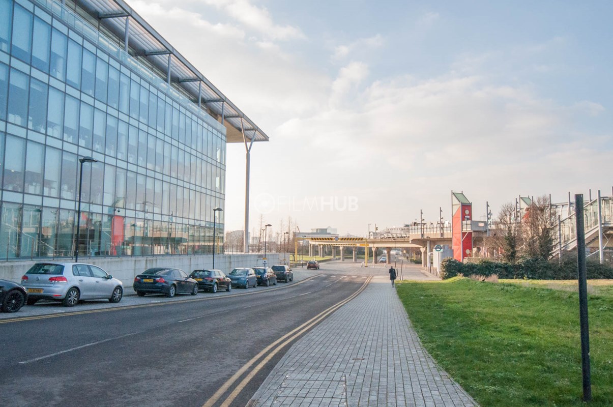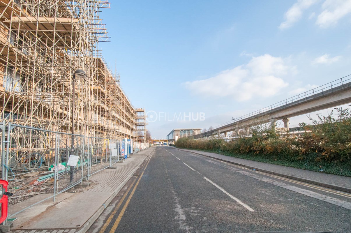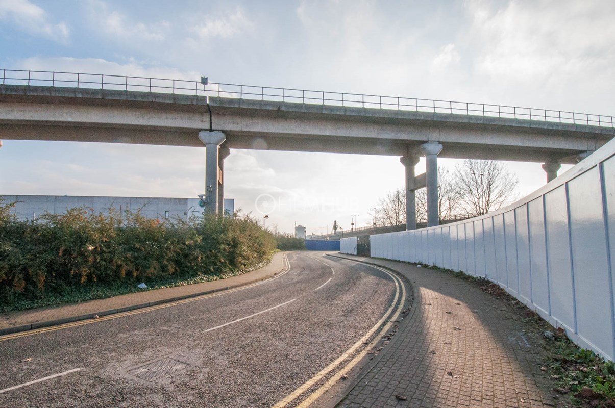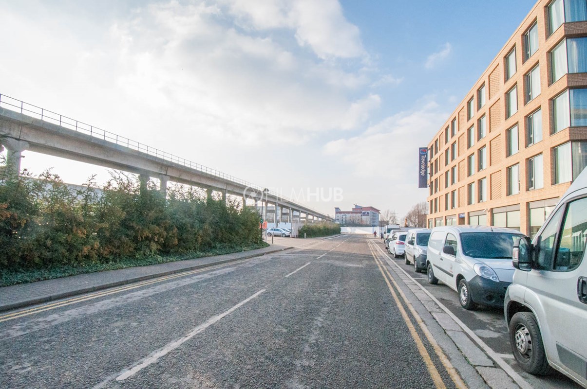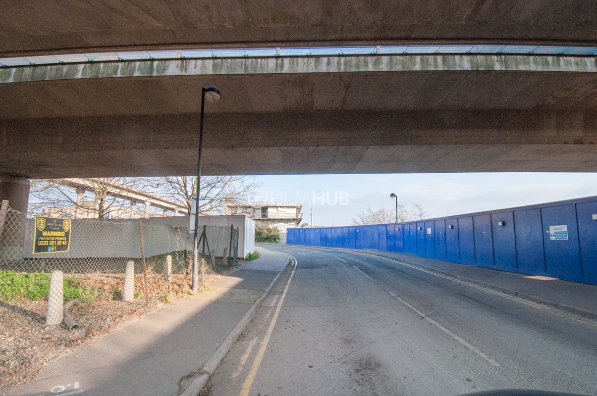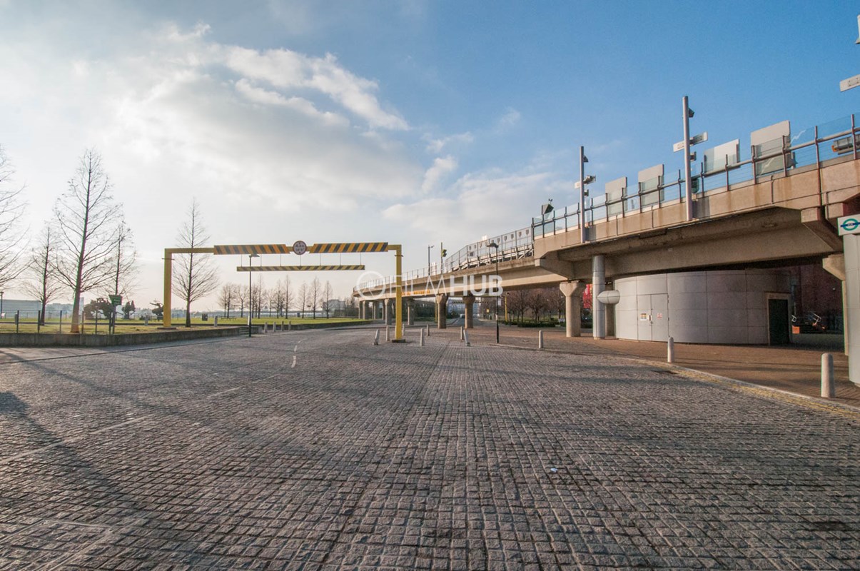 - Height restriction for vehicles of 14'3', due to the DLR passing overhead the road.