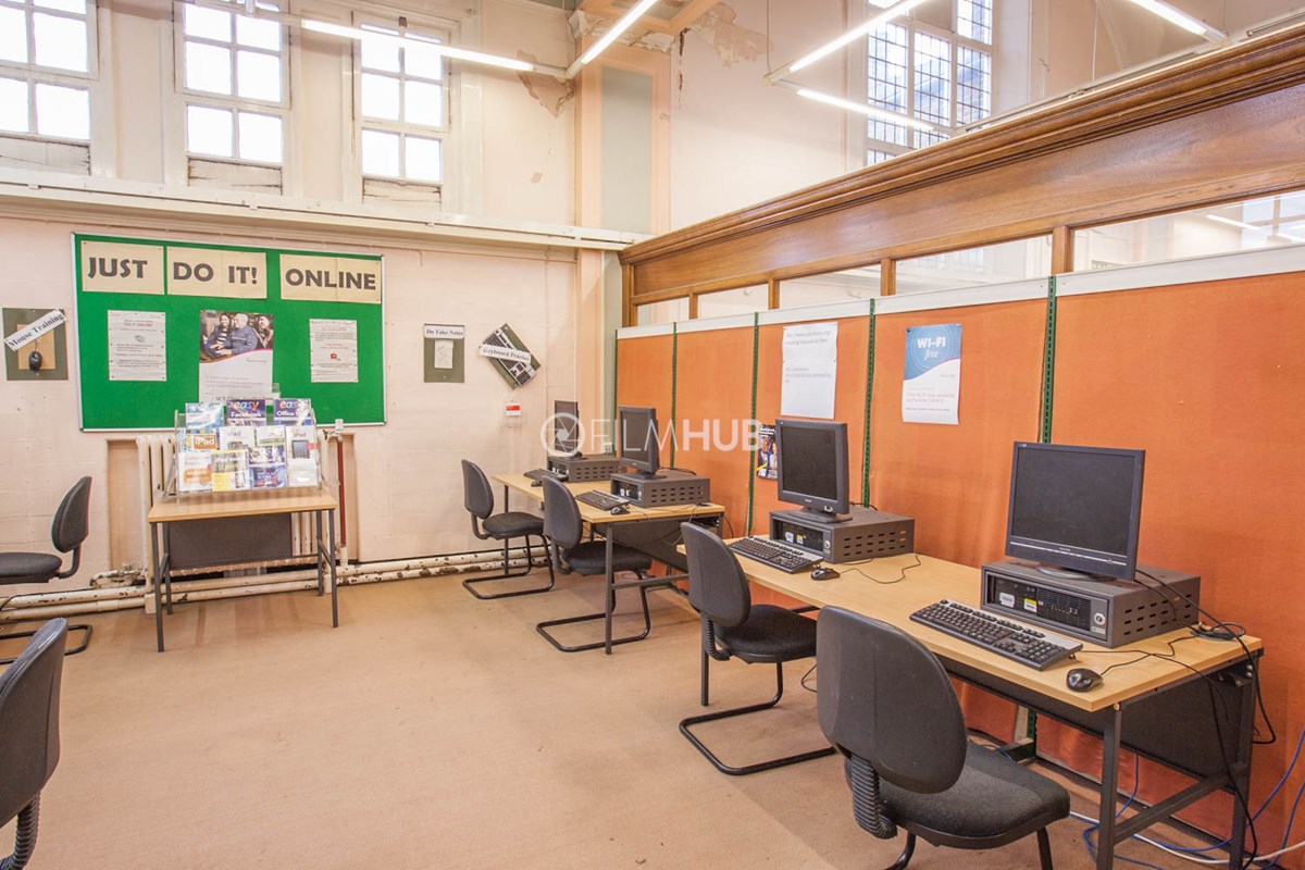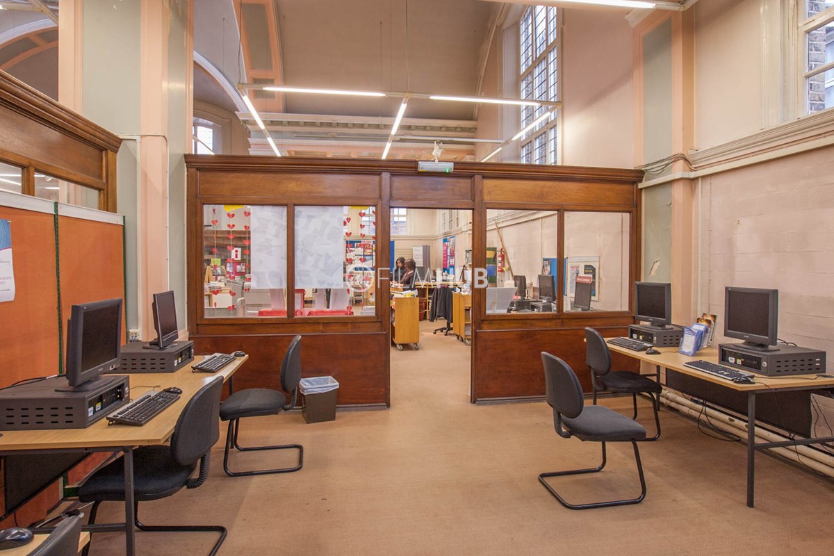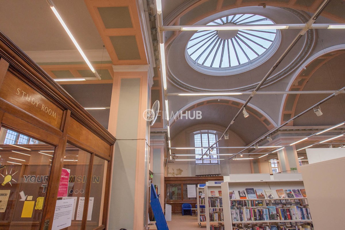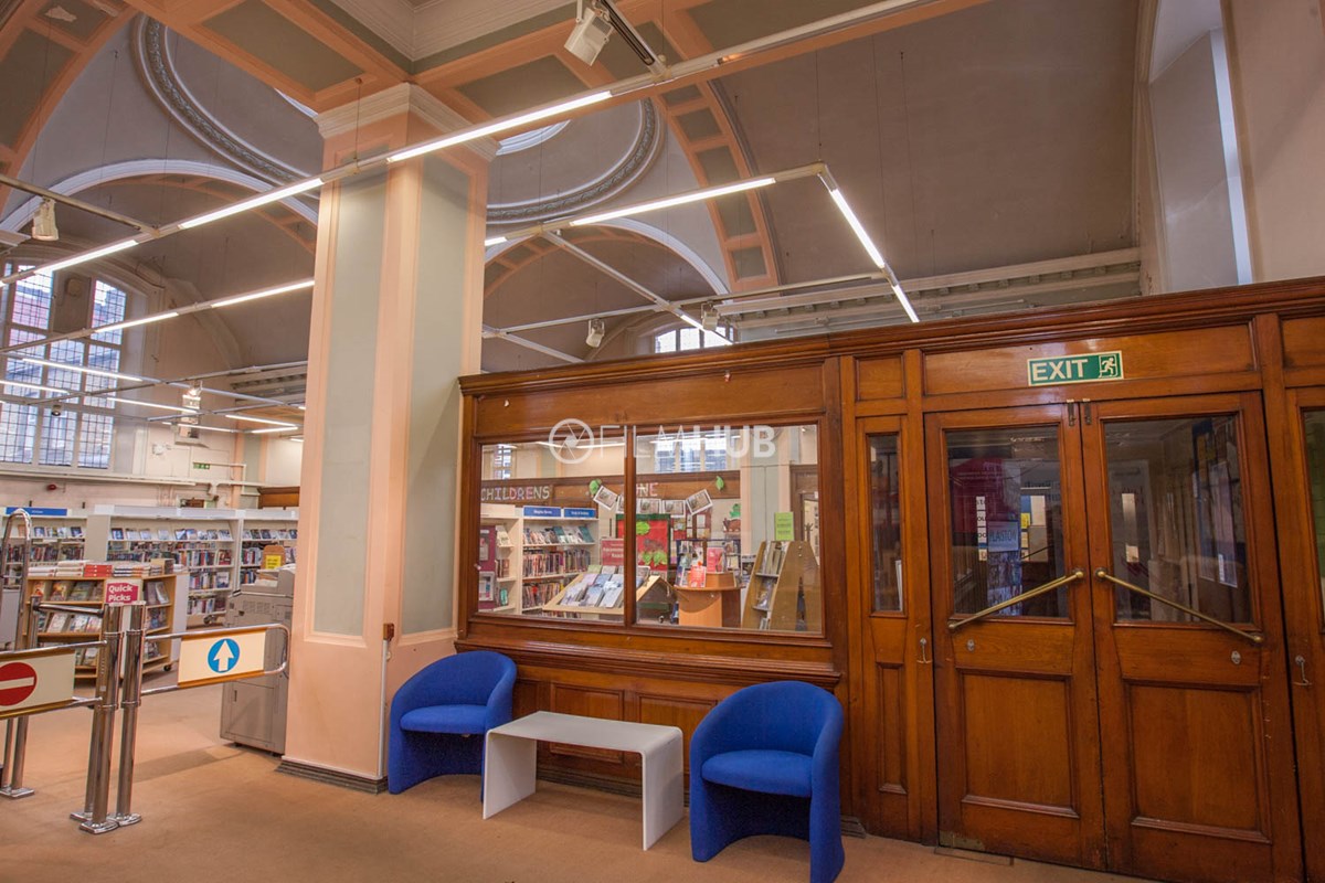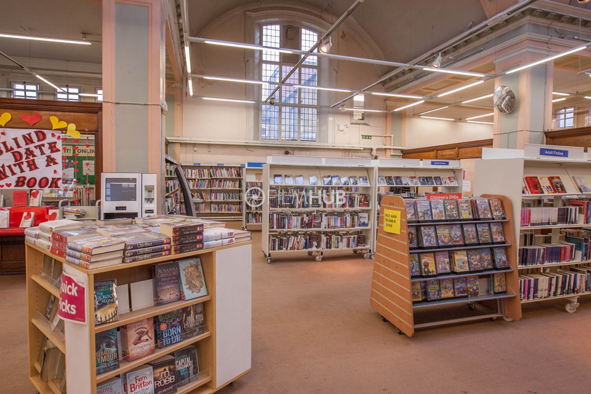 Plaistow Library is an impressive library with high ceilings, wooden partition sections to create separate study rooms and it also features a gorgeous glass dome window at the centre of the library that allows the flow of natural light. The library is light and airy, with its white open bricked walls, large ceiling high windows and spacious layout. The library also provides space for children's reading areas and quiet study rooms.