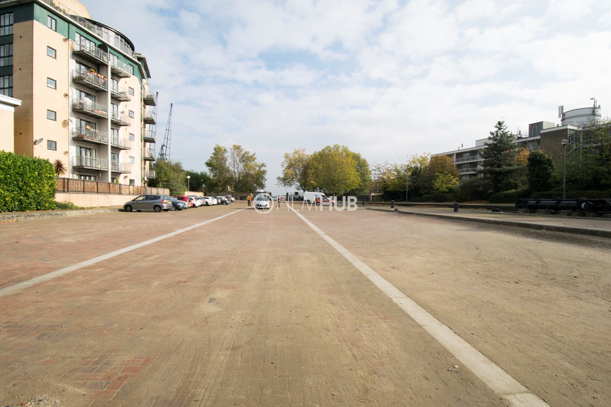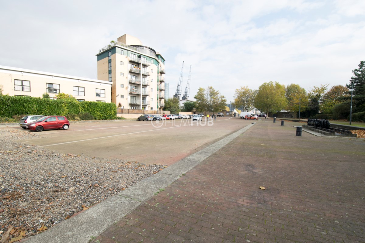 Docklands unit base is a large hard standing space here to facilitate filming on the Isle of Dogs.