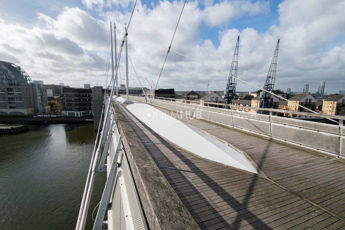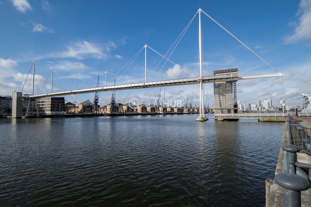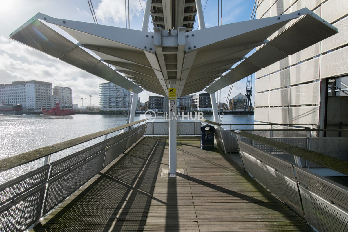 This iconic walkway bridge that spans Royal Victoria Dock offers a unique filming location with unbeatable views of the Canary Wharf skyline.