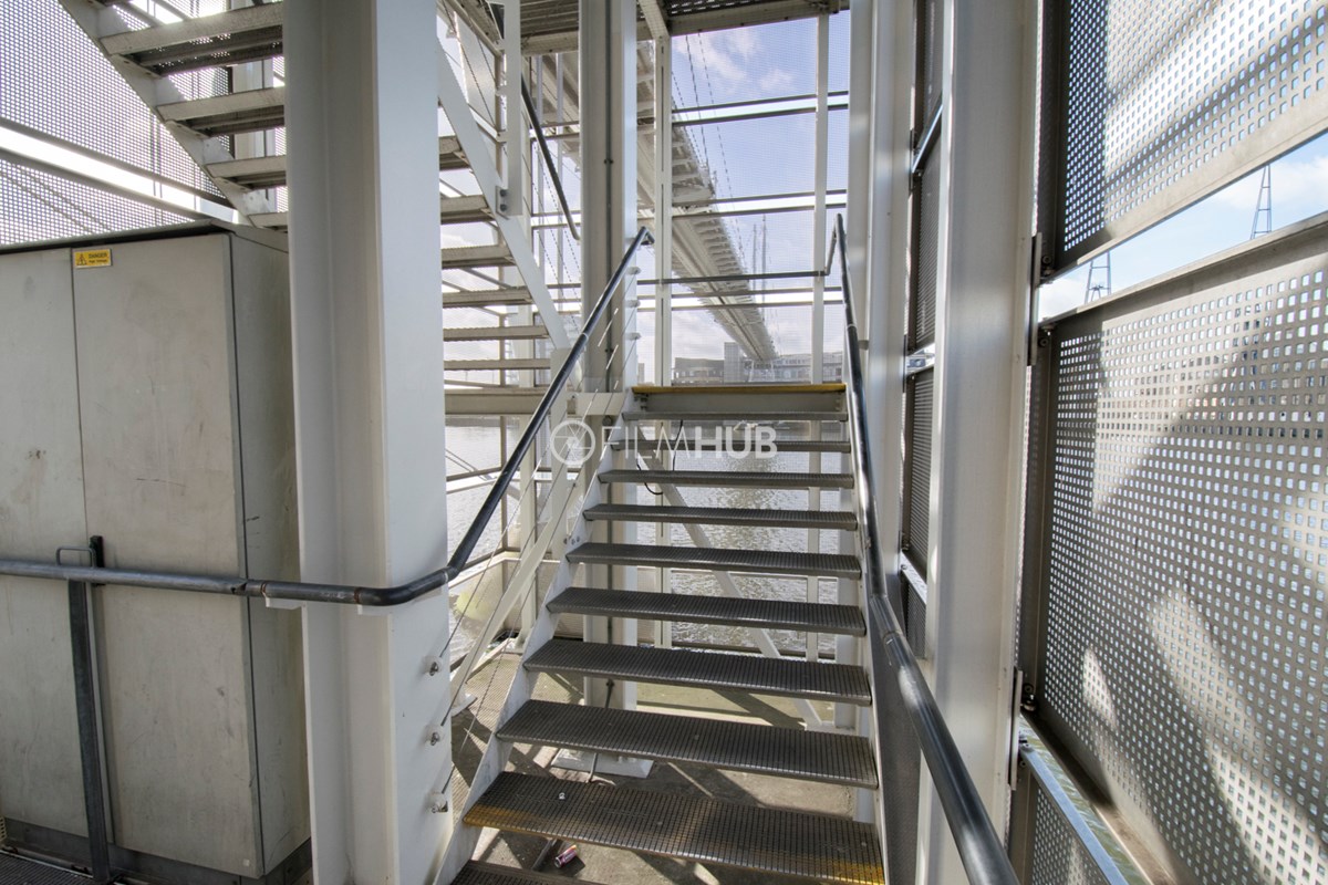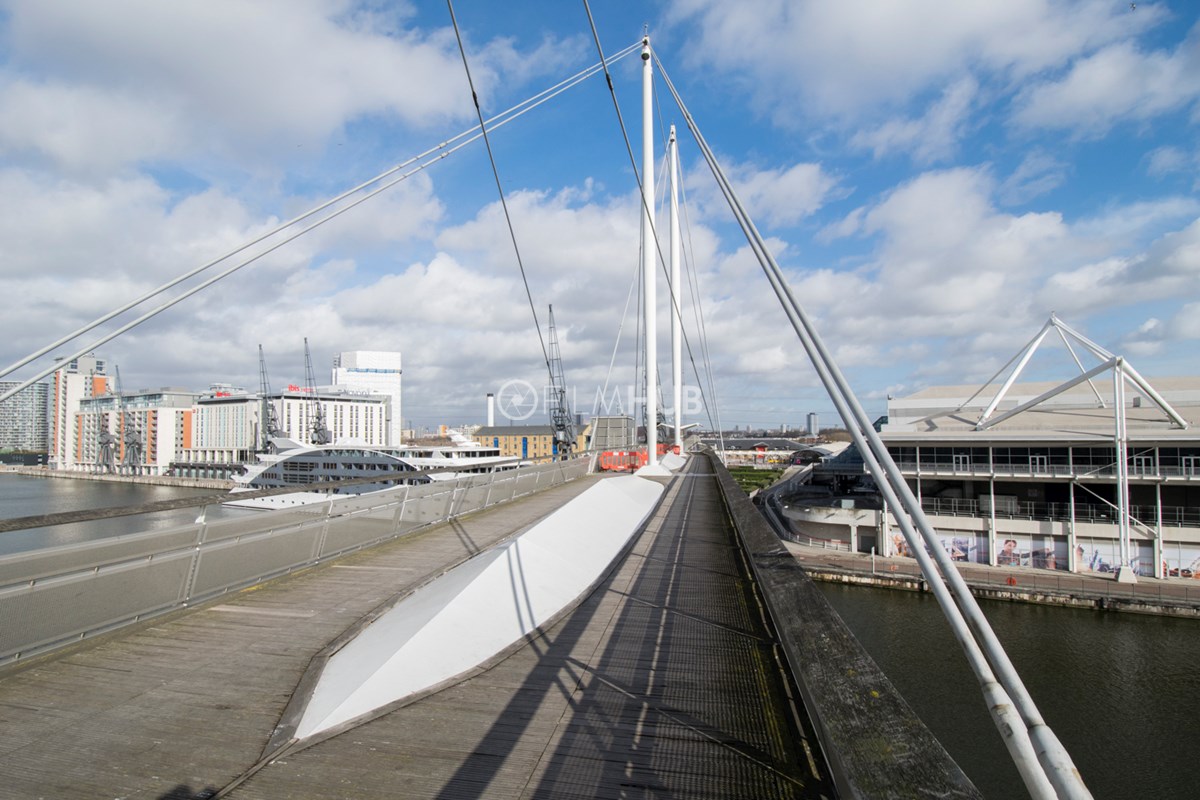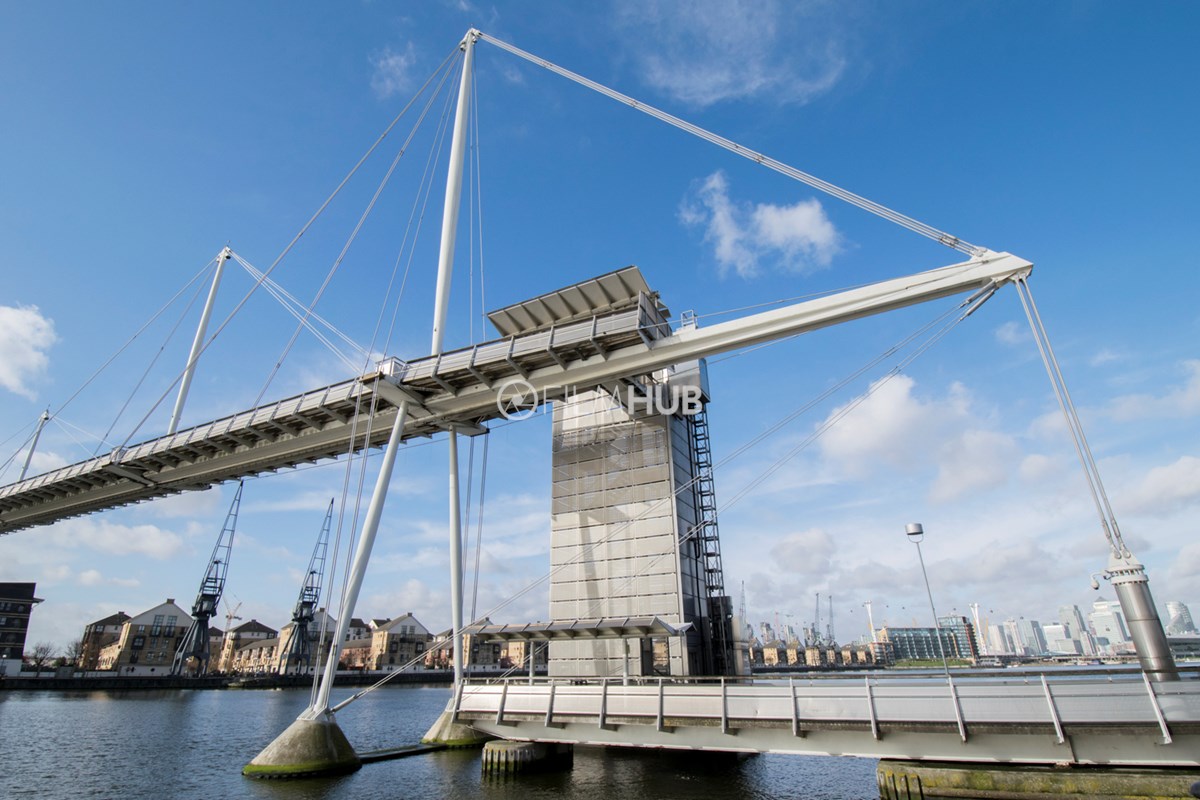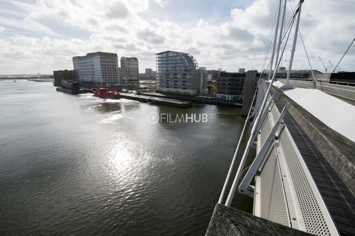 This iconic walkway bridge that spans Royal Victoria Dock offers a unique filming location with unbeatable views of the Canary Wharf skyline.