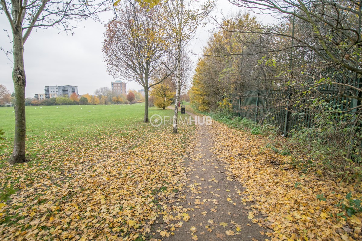 Little Ilford Park features large amounts of open area right next to the North Circular. It has a children's playground, both tennis and basketball courts, disused buildings with graffiti, and also features a wildflower meadow and woodland