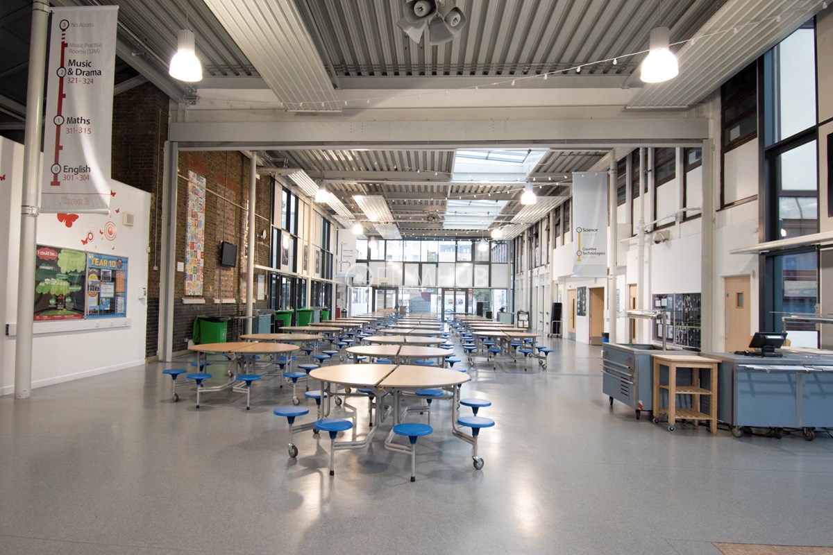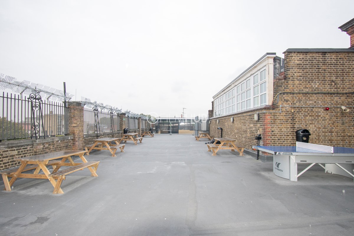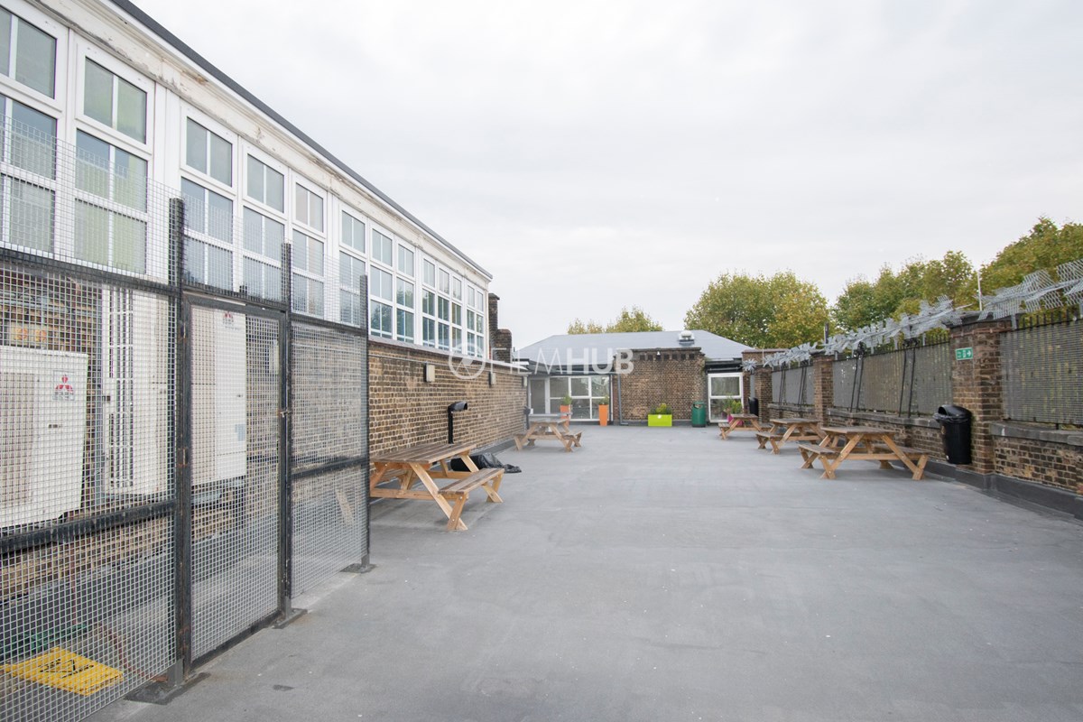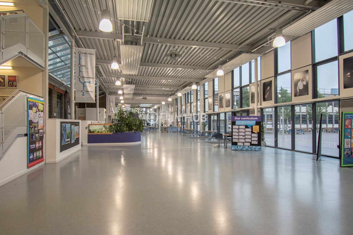The school features over three floors of recently refurbished modern classrooms and hallways, with lift access and a large rooftop with surrounding bare brick walls.