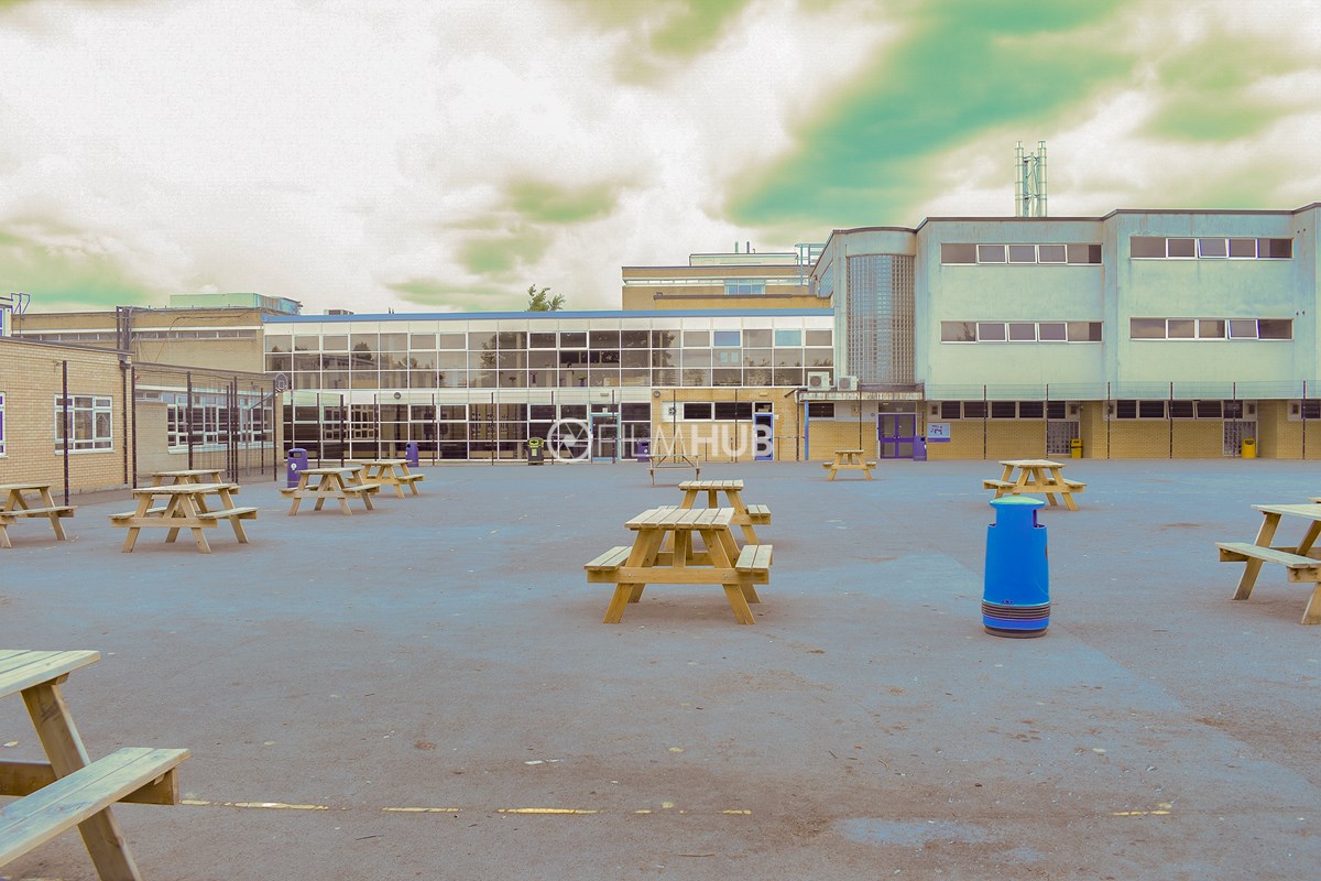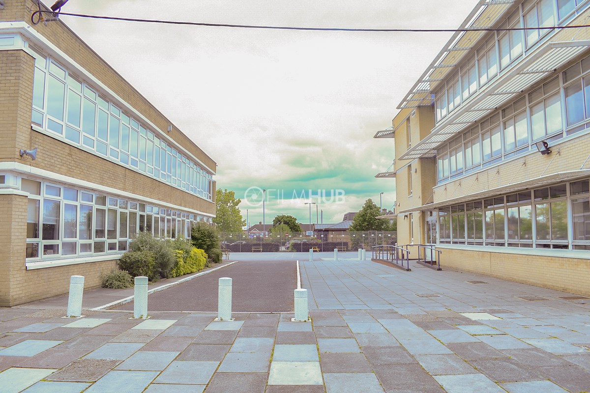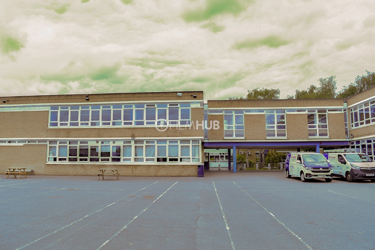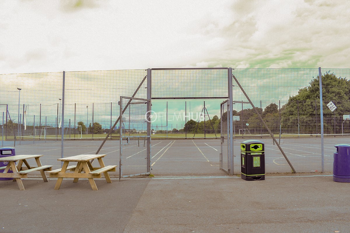 Spacious parking lot to accommodate cars and larger vehicles in parking lot and playground space.
