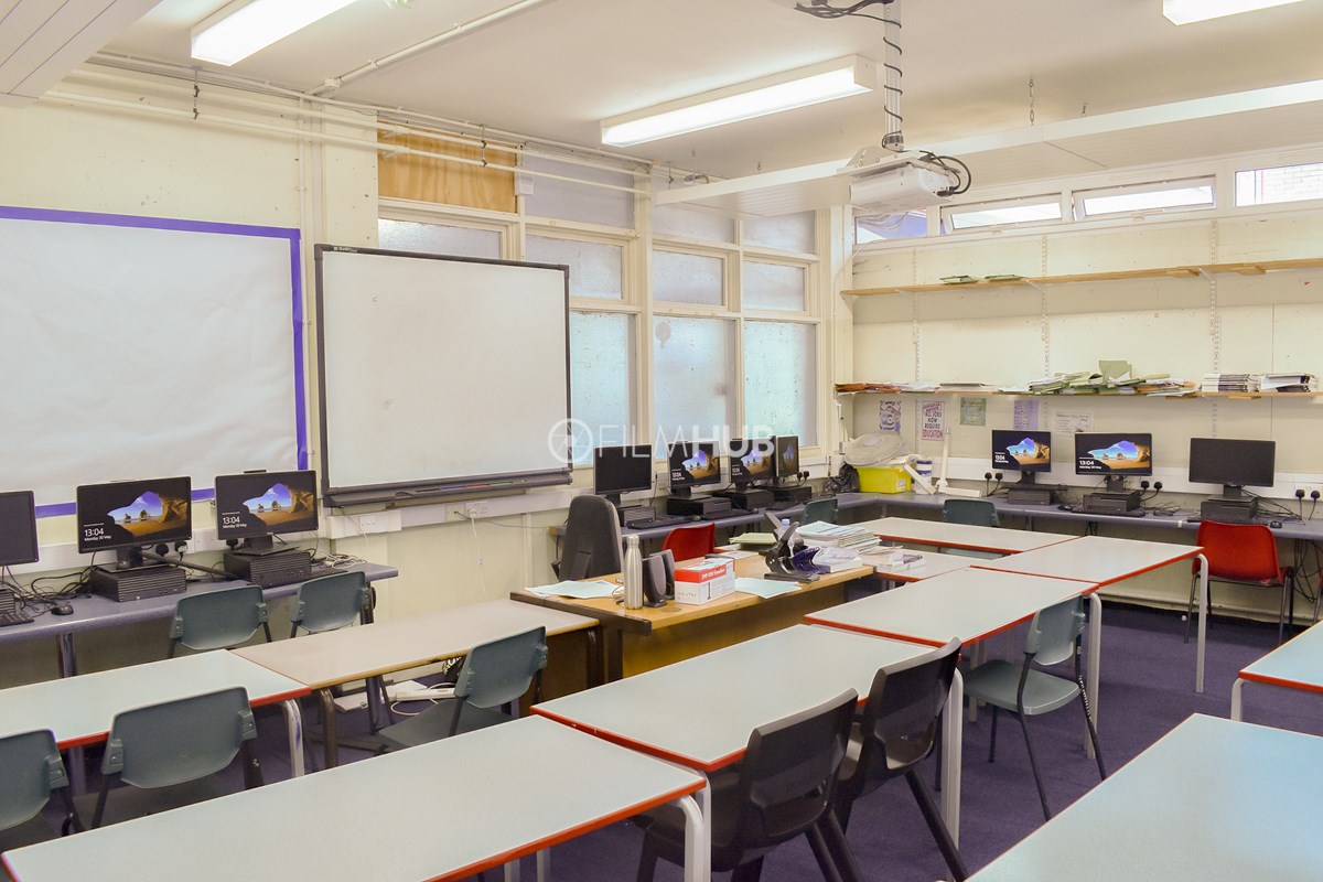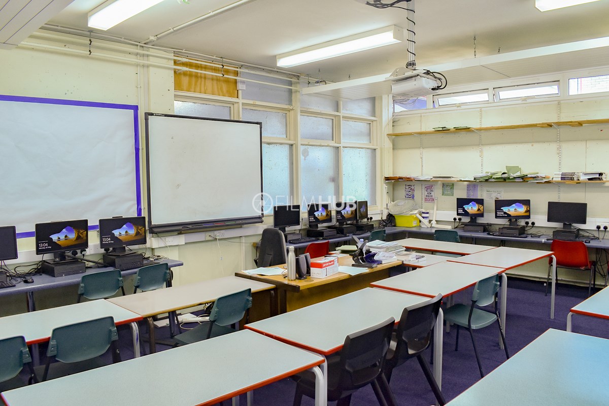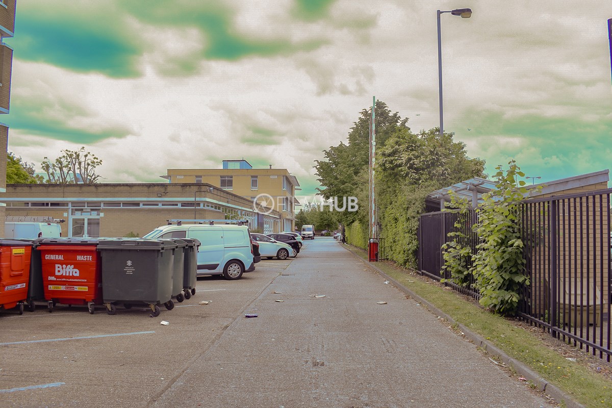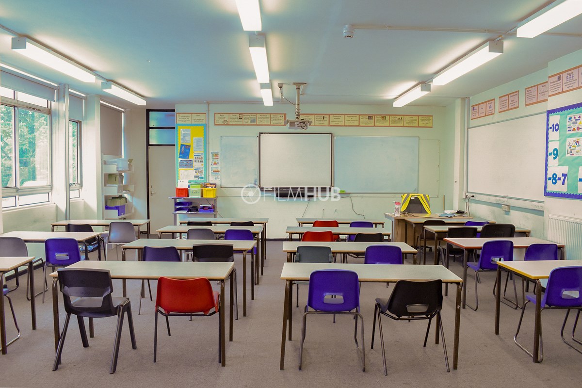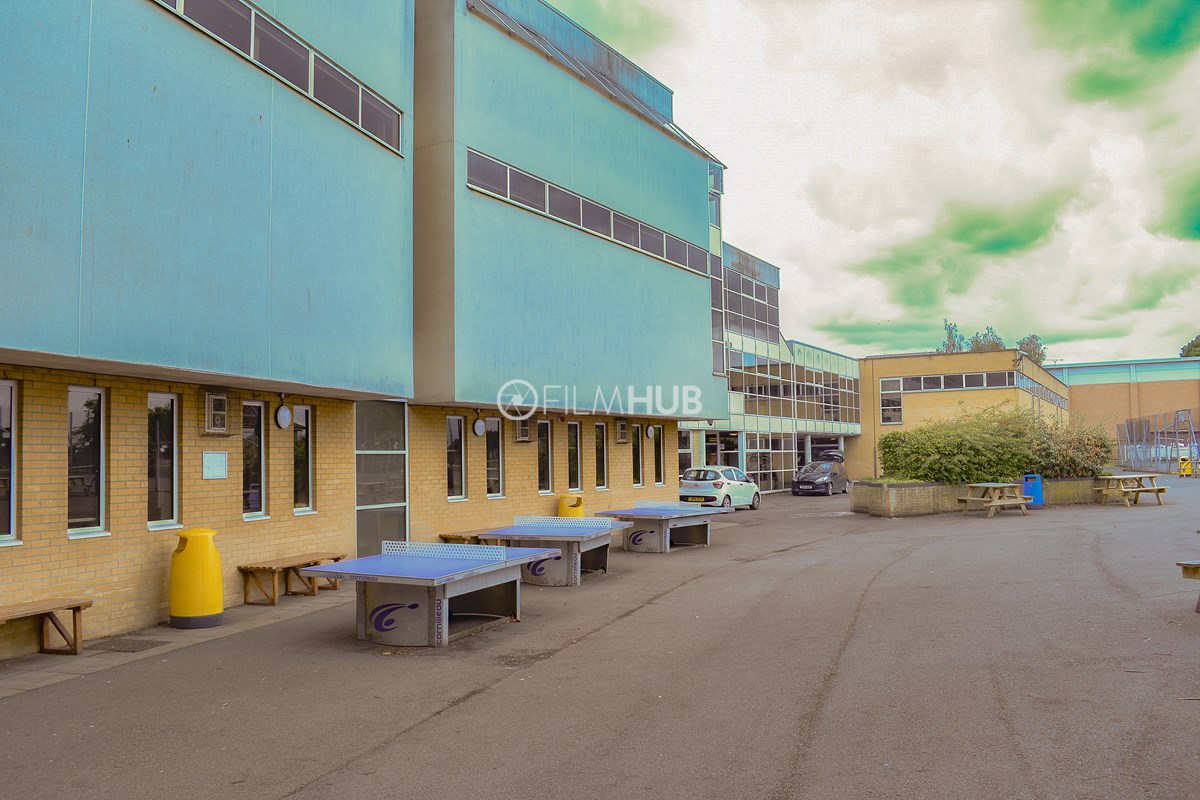 Spacious parking lot to accommodate cars and larger vehicles in parking lot and playground space.