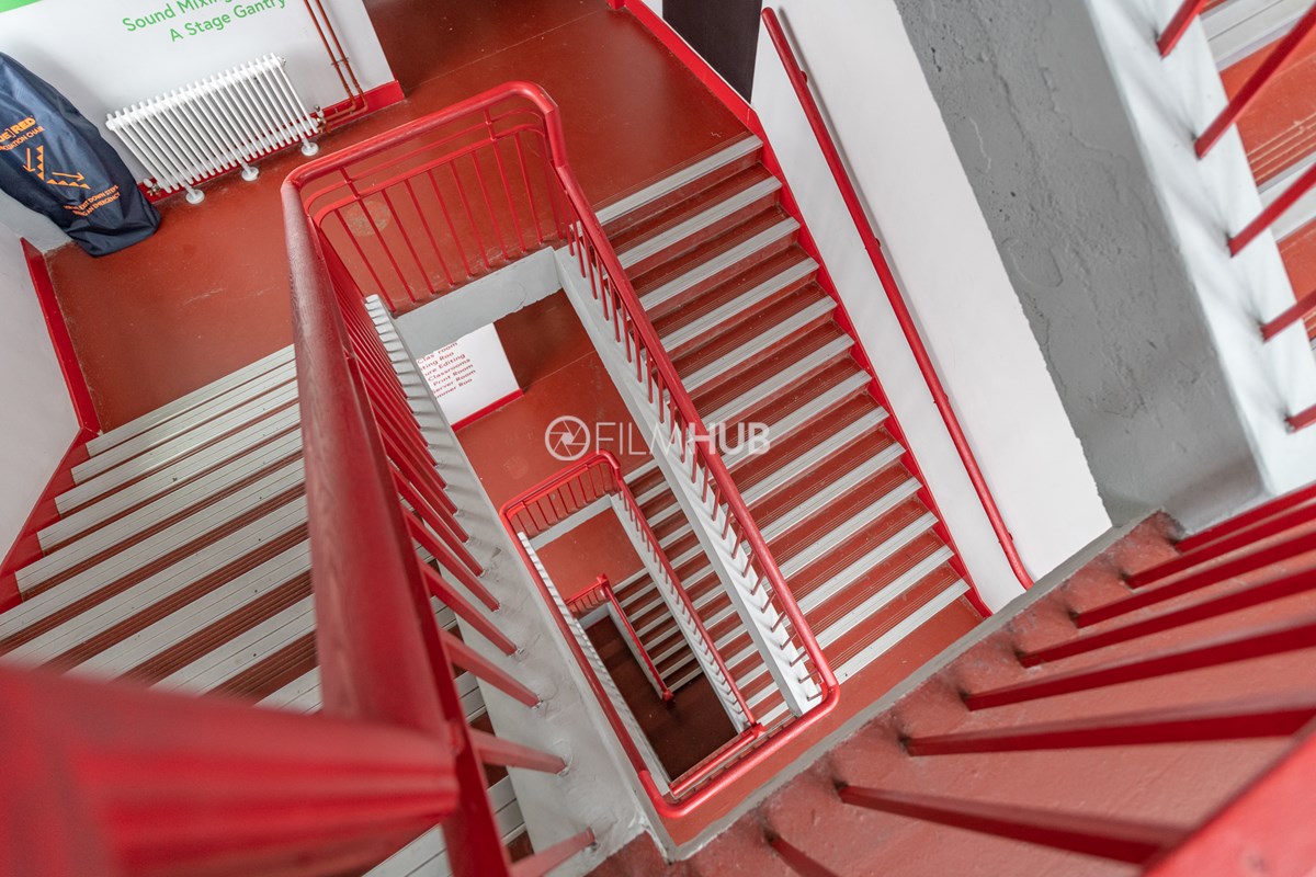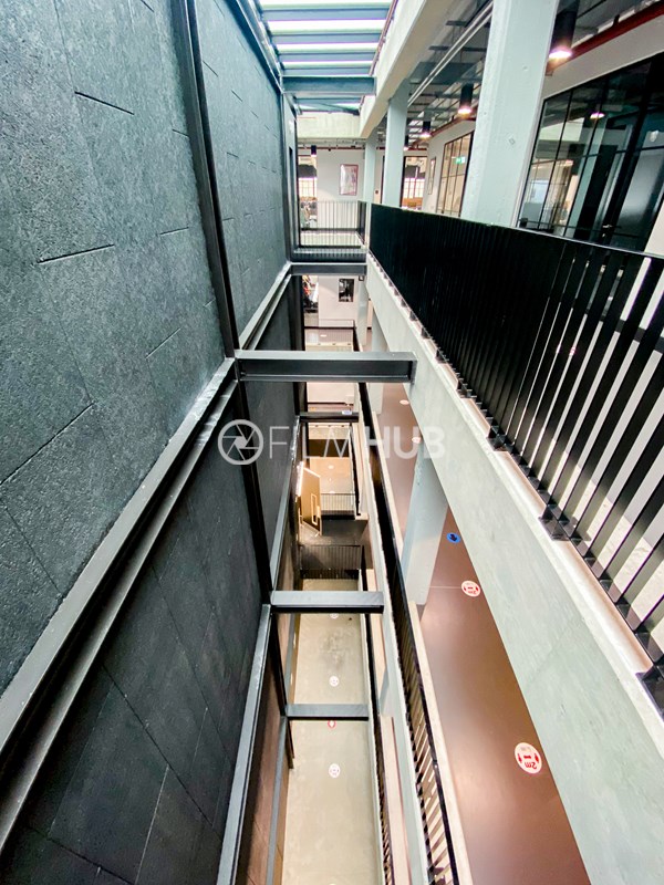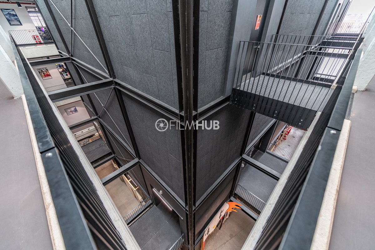 Inside are a variety of spaces from a fully operational Film Studio through to classrooms, holding areas, a rooftop with a stunning view over London as well as corridors and staircases.