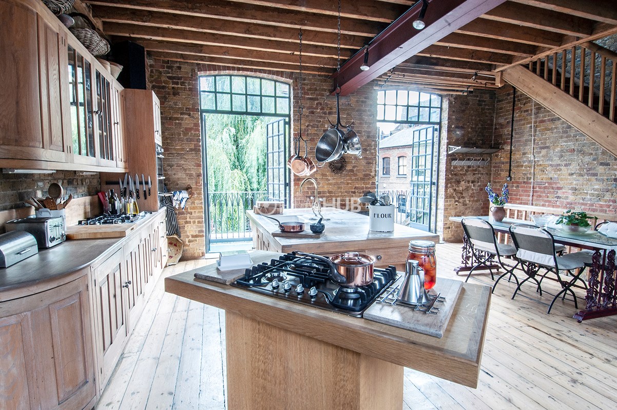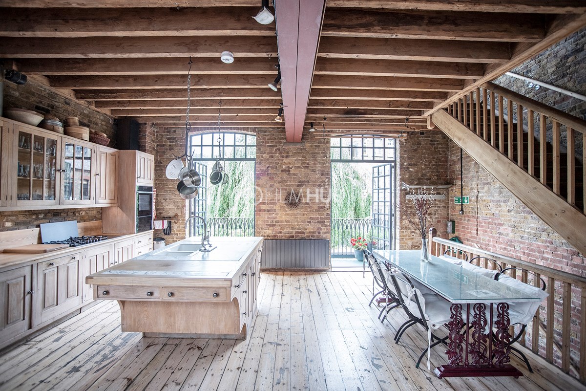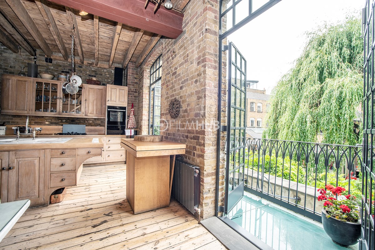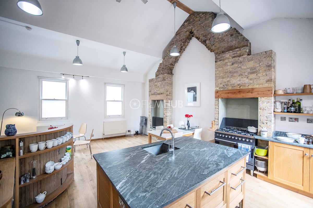 Our fabulous main kitchen has marble and wooden work tops, along with many features designed specifically for shooting purposes; including a mobile island with built in hob, and a glass lighting balcony, an extremely useful feature when shooting in the kitchen which minimises the need for lighting cranes.