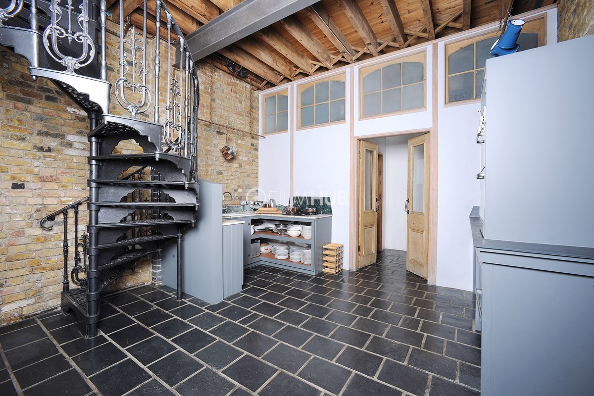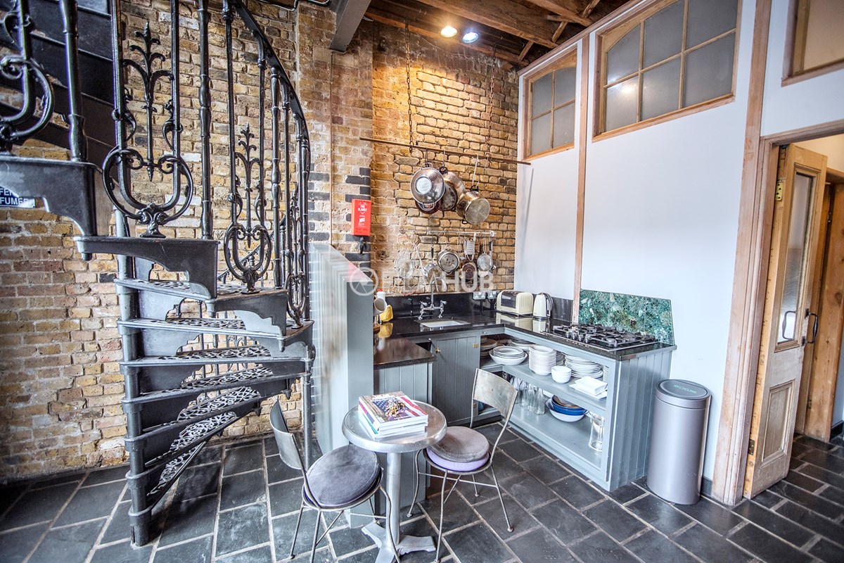Within the main studio space - accessible via a spiral staircase - is an additional 204 sq ft mezzanine with 30 ft of built in desks and work tops, ideal as a production office or as a storage/ holding area.