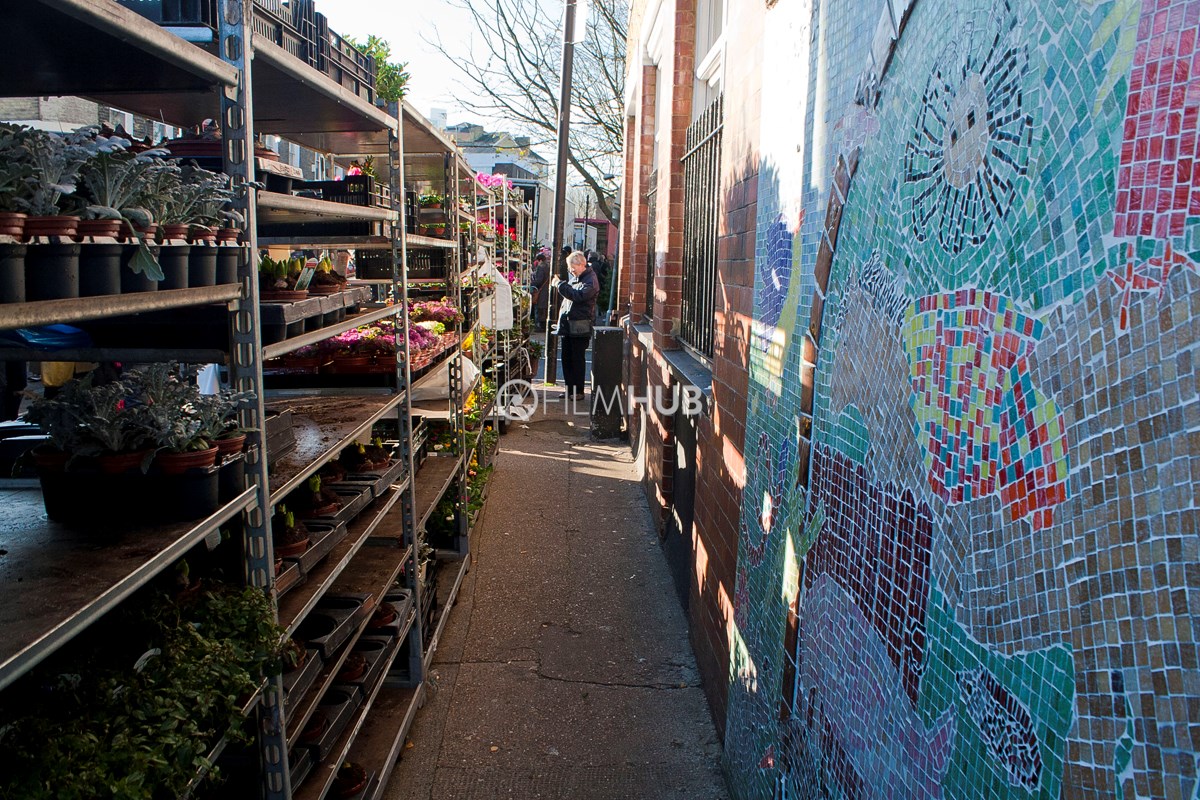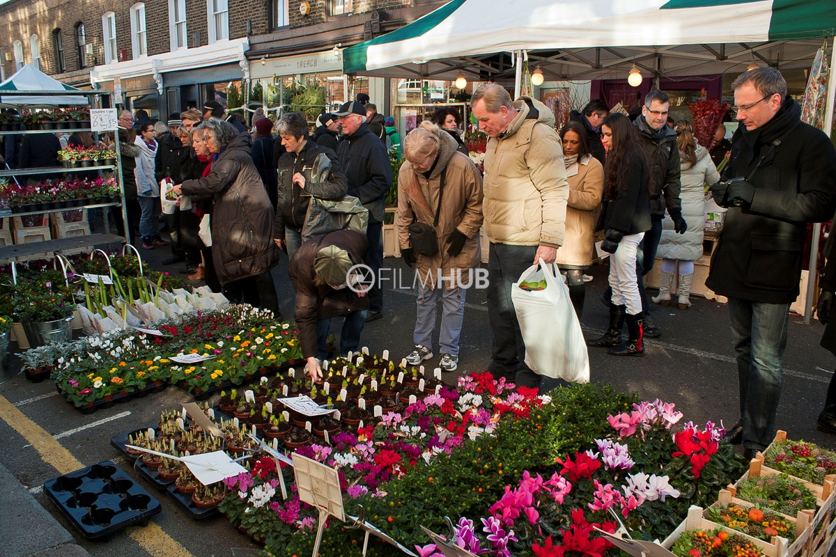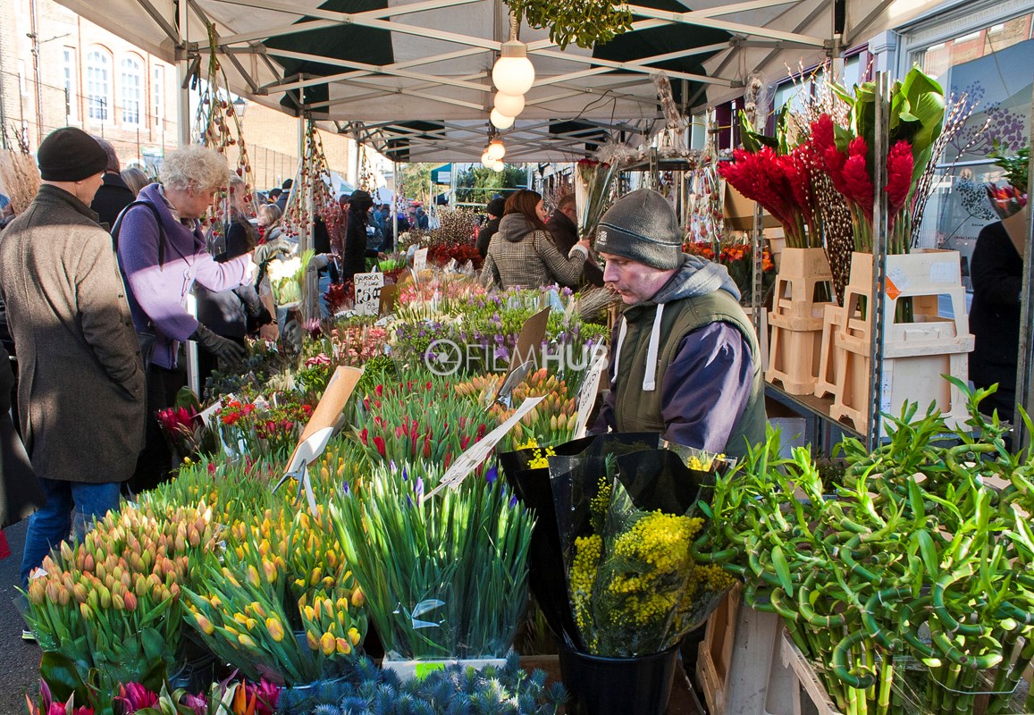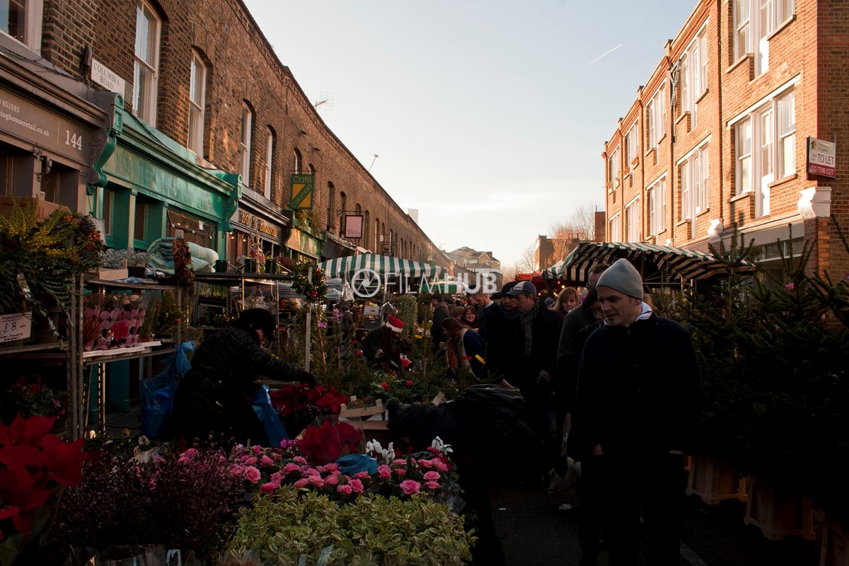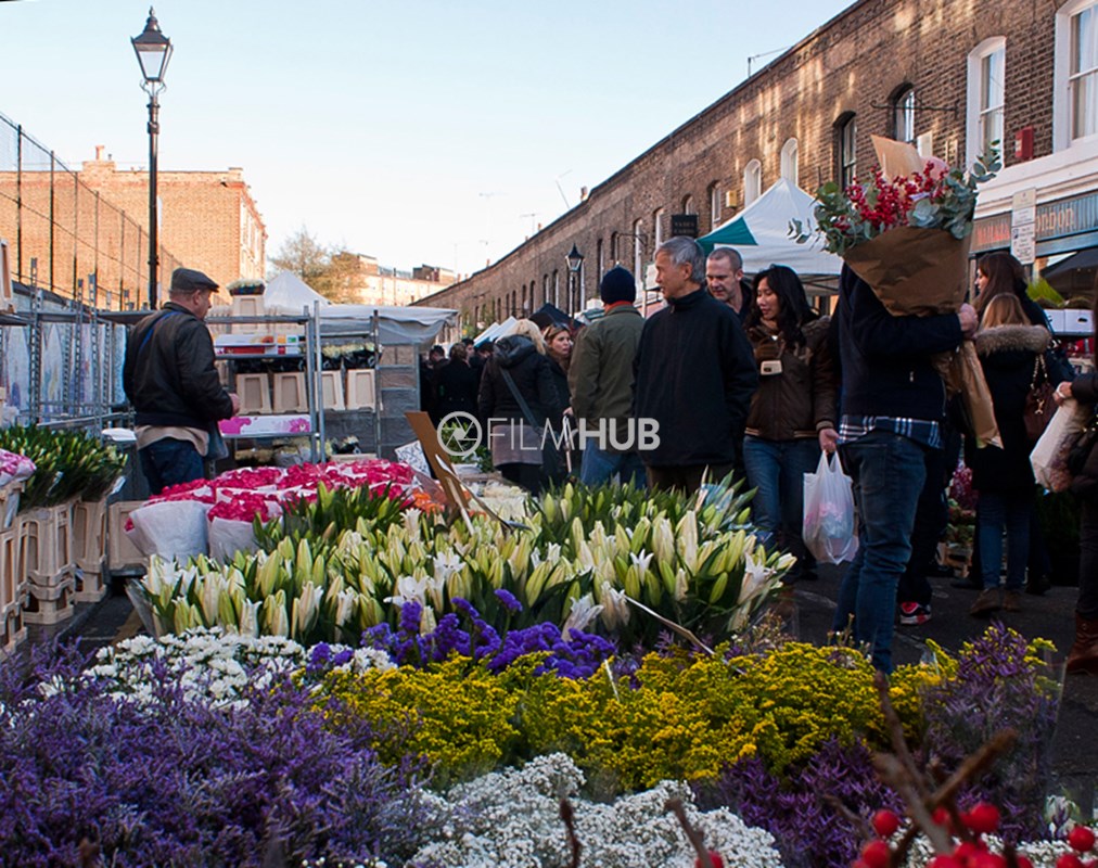 As a film and photography location, Columbia Road is a beautiful, naturally vibrant spot. Thanks to the obvious abundance of flower stalls and energetic stall traders. On Sunday, the street is transformed into an oasis of foliage and flowers. Everything from bedding plants to 10-foot banana trees are up for grabs. The air is intense with the scent of flowers and the chant of the barrow boys 'Everthin a fiver'. A lot of the flower sellers grow their own plants.