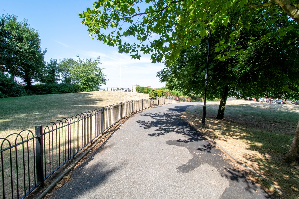 Sir John McDougal Gardens offers park space surrounded by a line of trees and neighbouring the River Thames. There are benches and a path running alongside the river offering great views across the Thames. Inside the park is an interesting fly-over, concrete walkway, climbing frames and a metal slide.