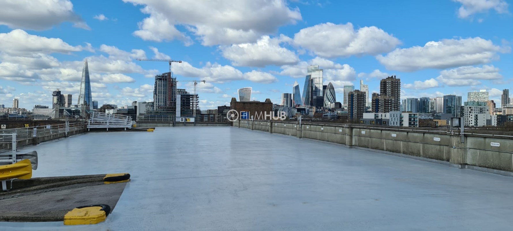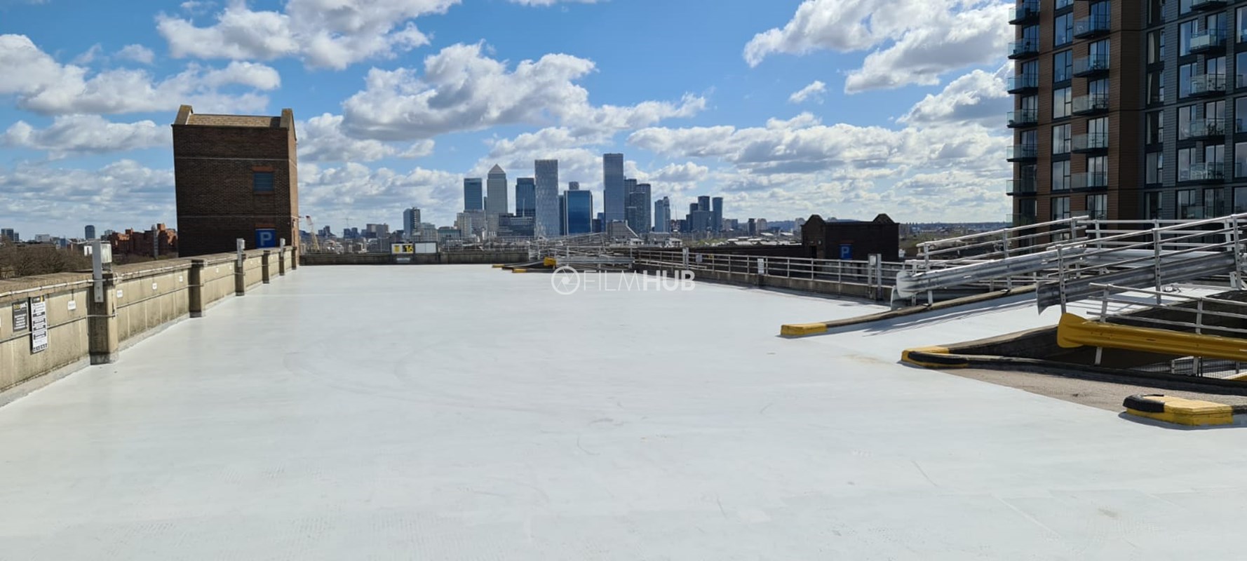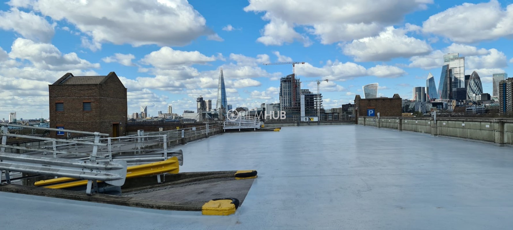 With fantastic, near 360 skyline degree views of London from the open air rooftop / upper level (with only the the southerly view of the Thames obstructed), the multi-storey car park at Tobacco Dock is a fantastic location for establishing shots of London.