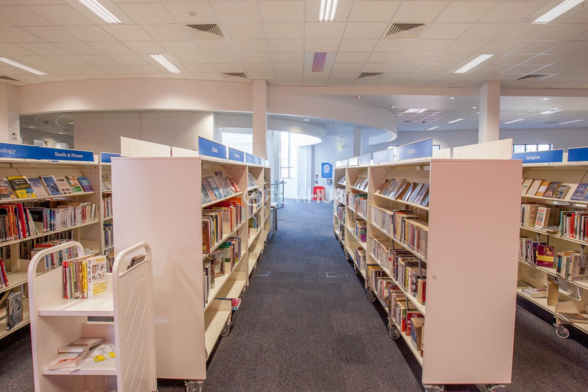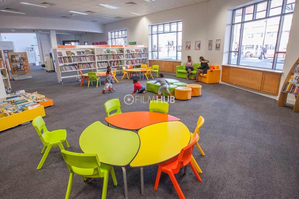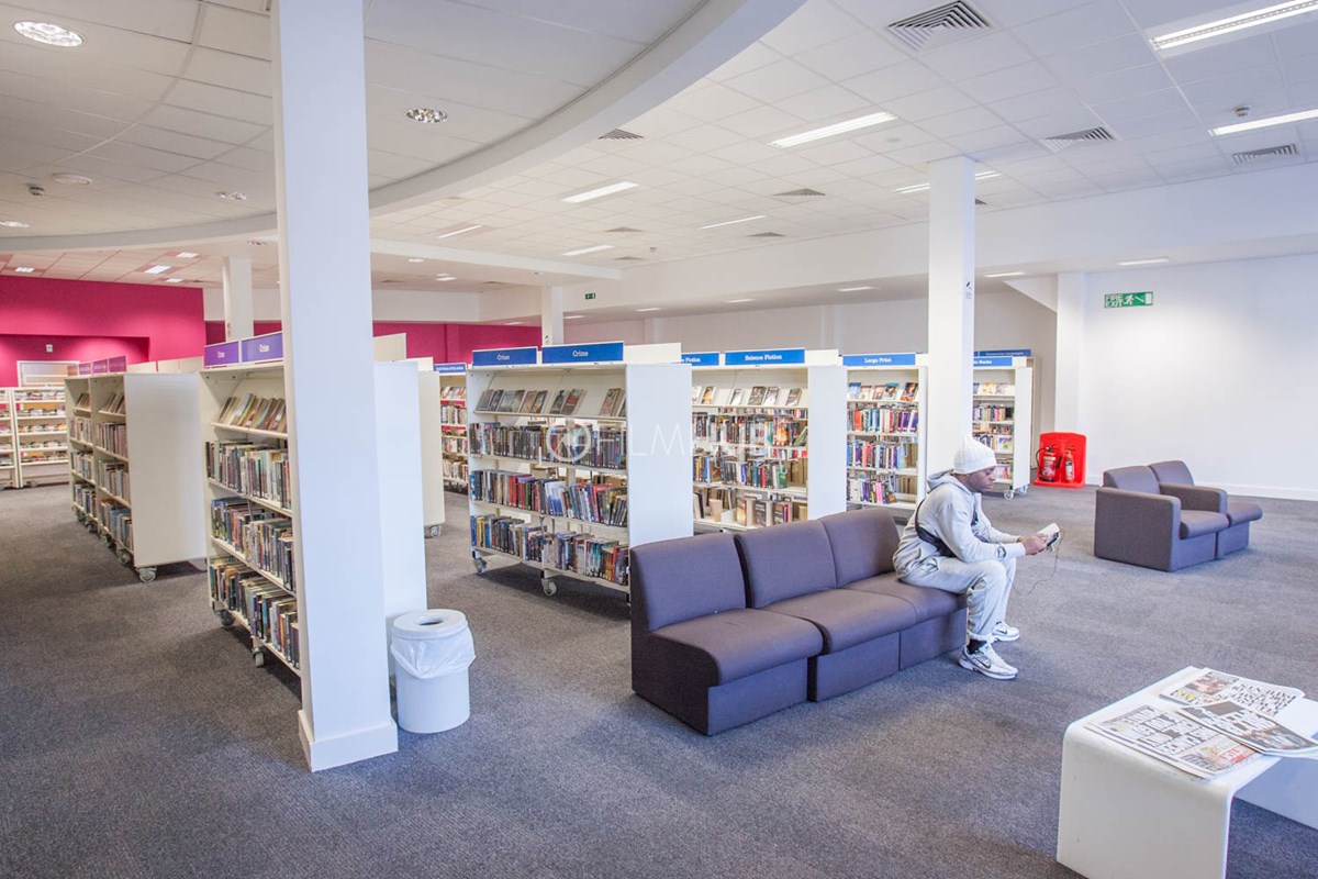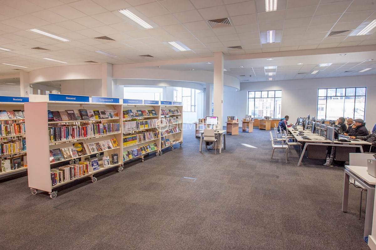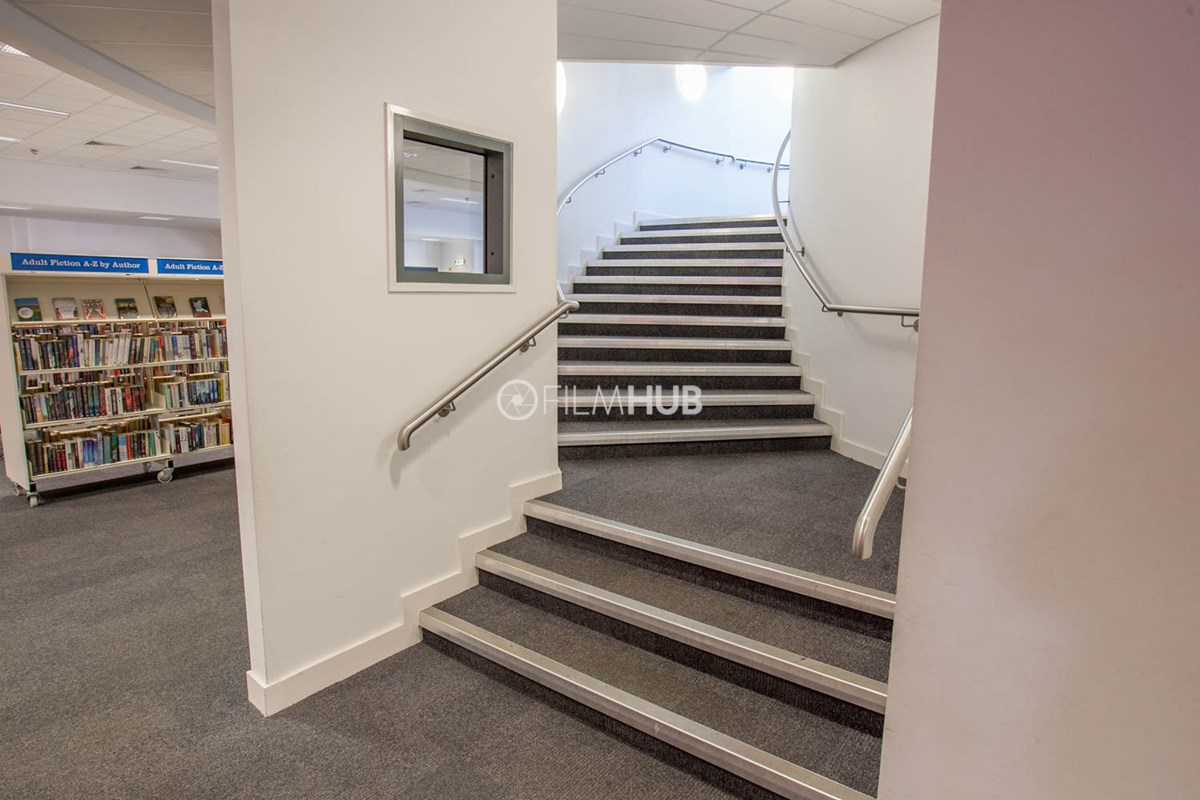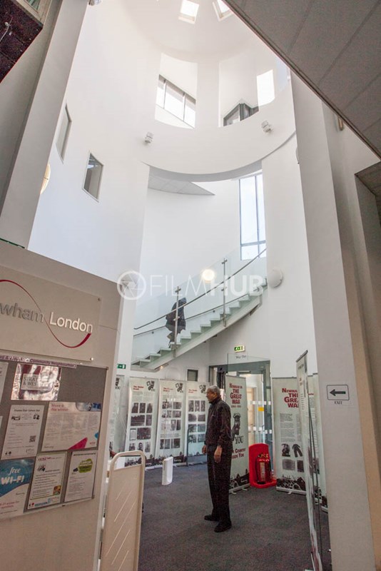 Stratford Library offers an abundance of space - there are study rooms, computers rooms, general lounge areas and children's reading area. The library has a modern interior and it has a rounded stairwell with impressive ceiling high windows and a glass balcony allowing a view to the ground level.