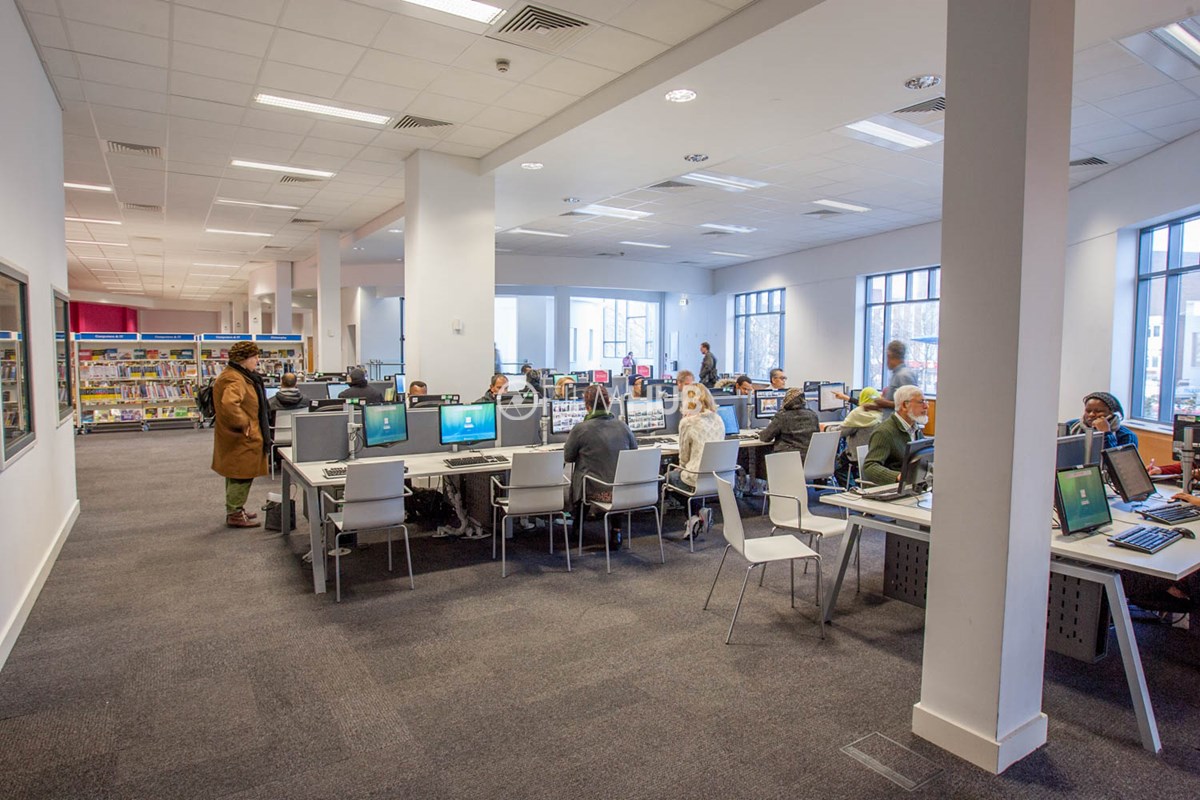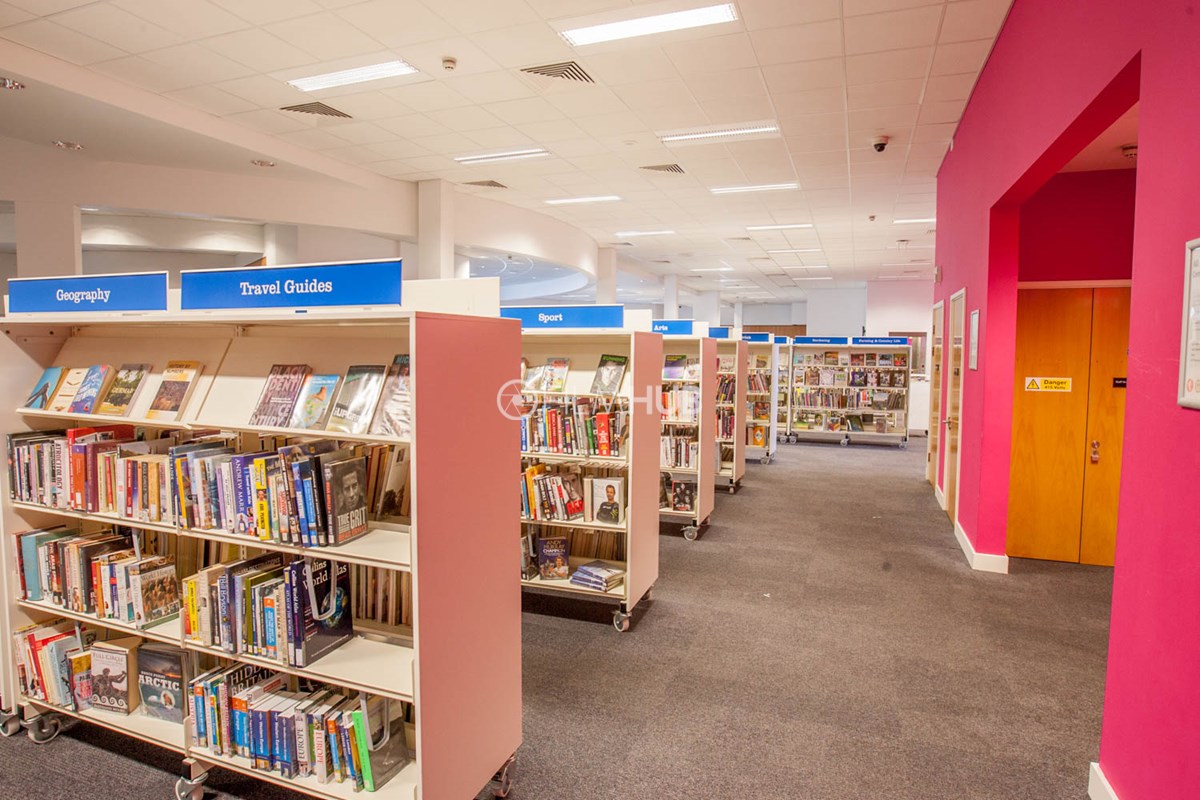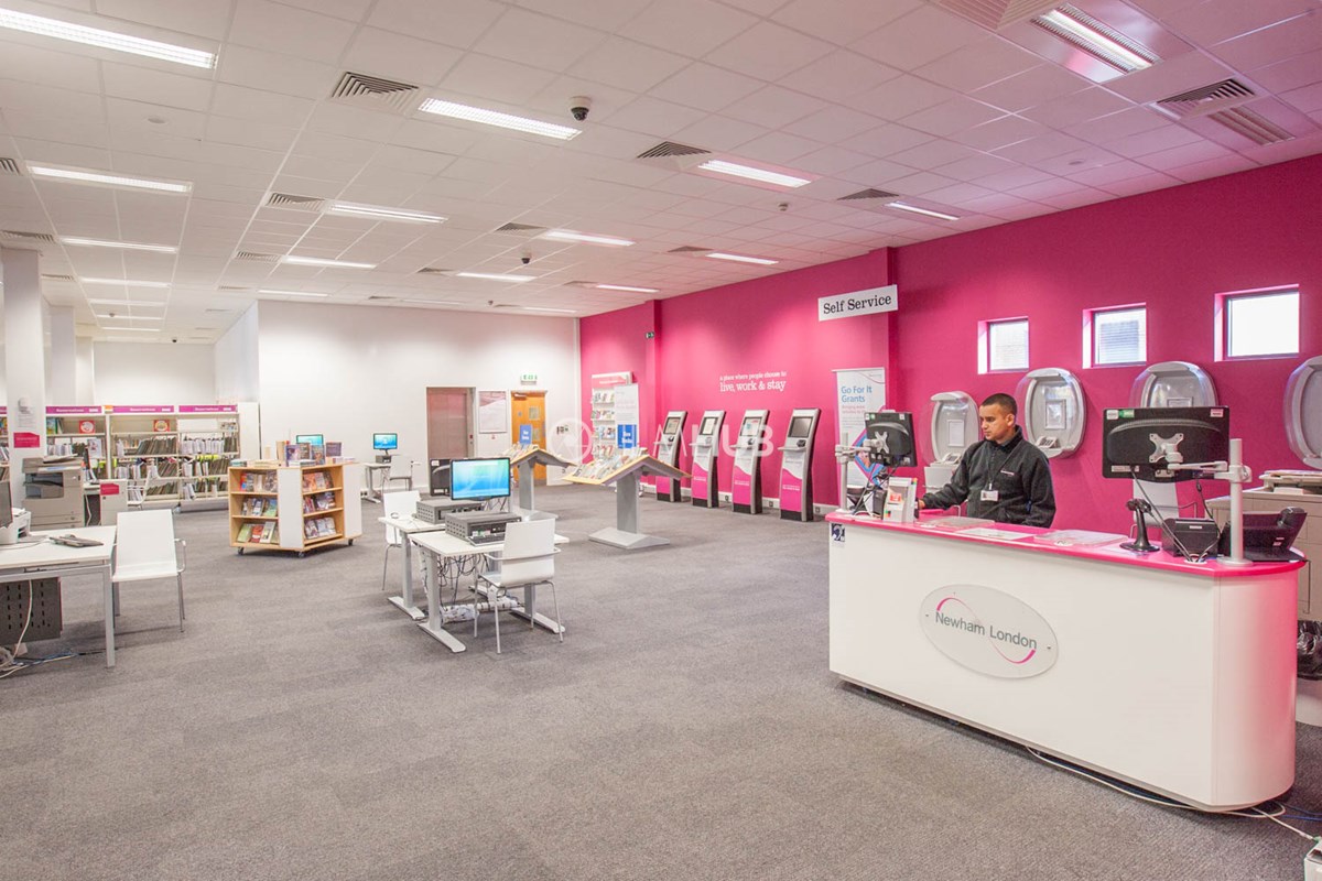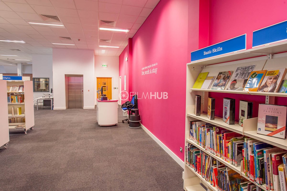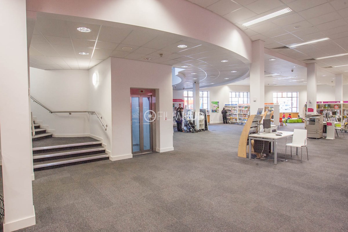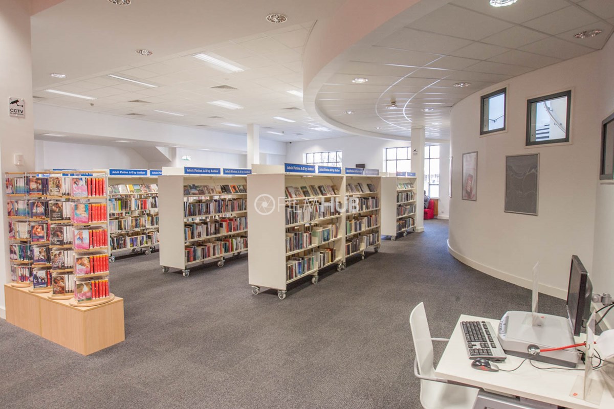 Stratford Library offers an abundance of space - there are study rooms, computers rooms, general lounge areas and children's reading area. The library has a modern interior and it has a rounded stairwell with impressive ceiling high windows and a glass balcony allowing a view to the ground level.