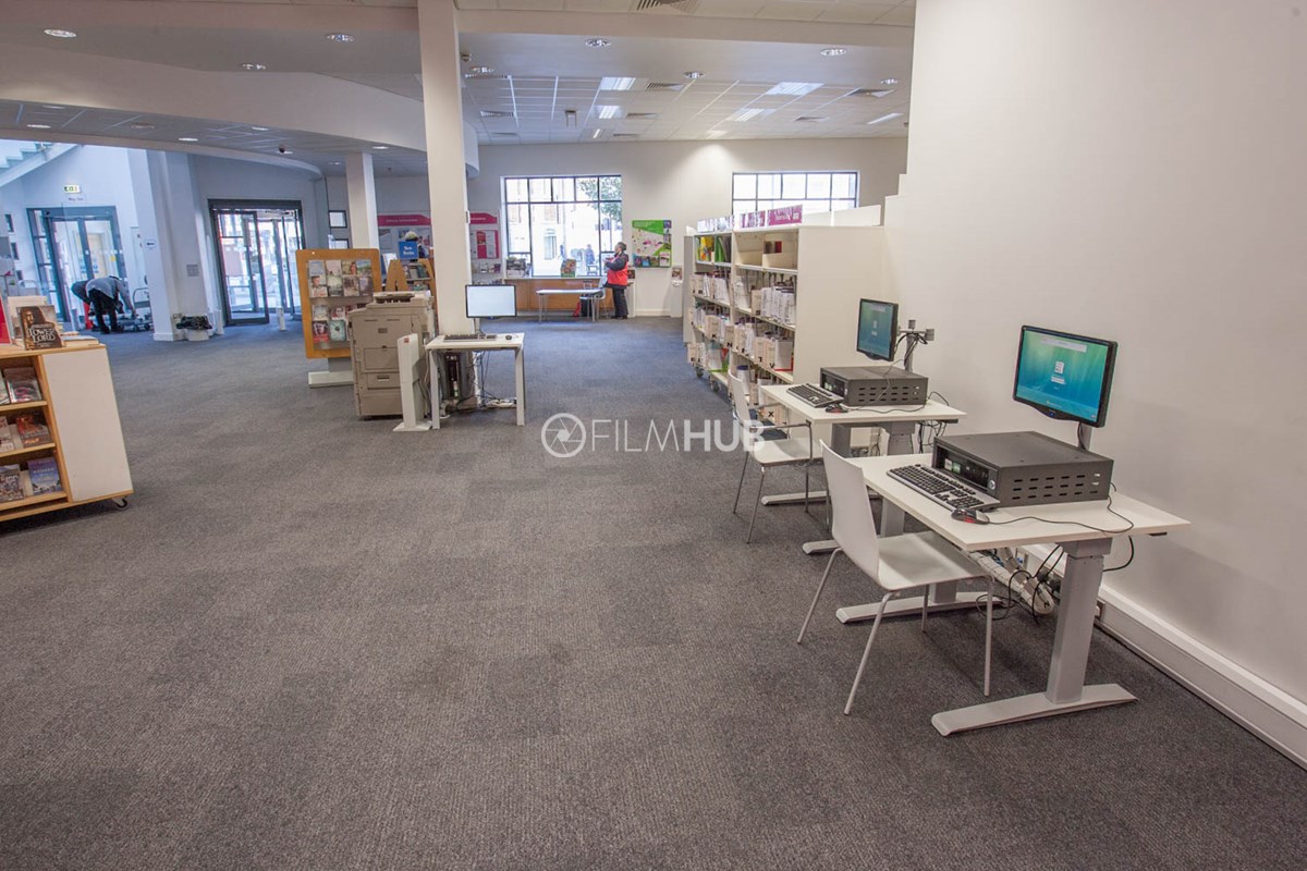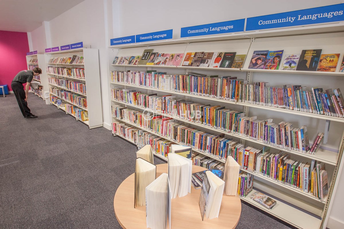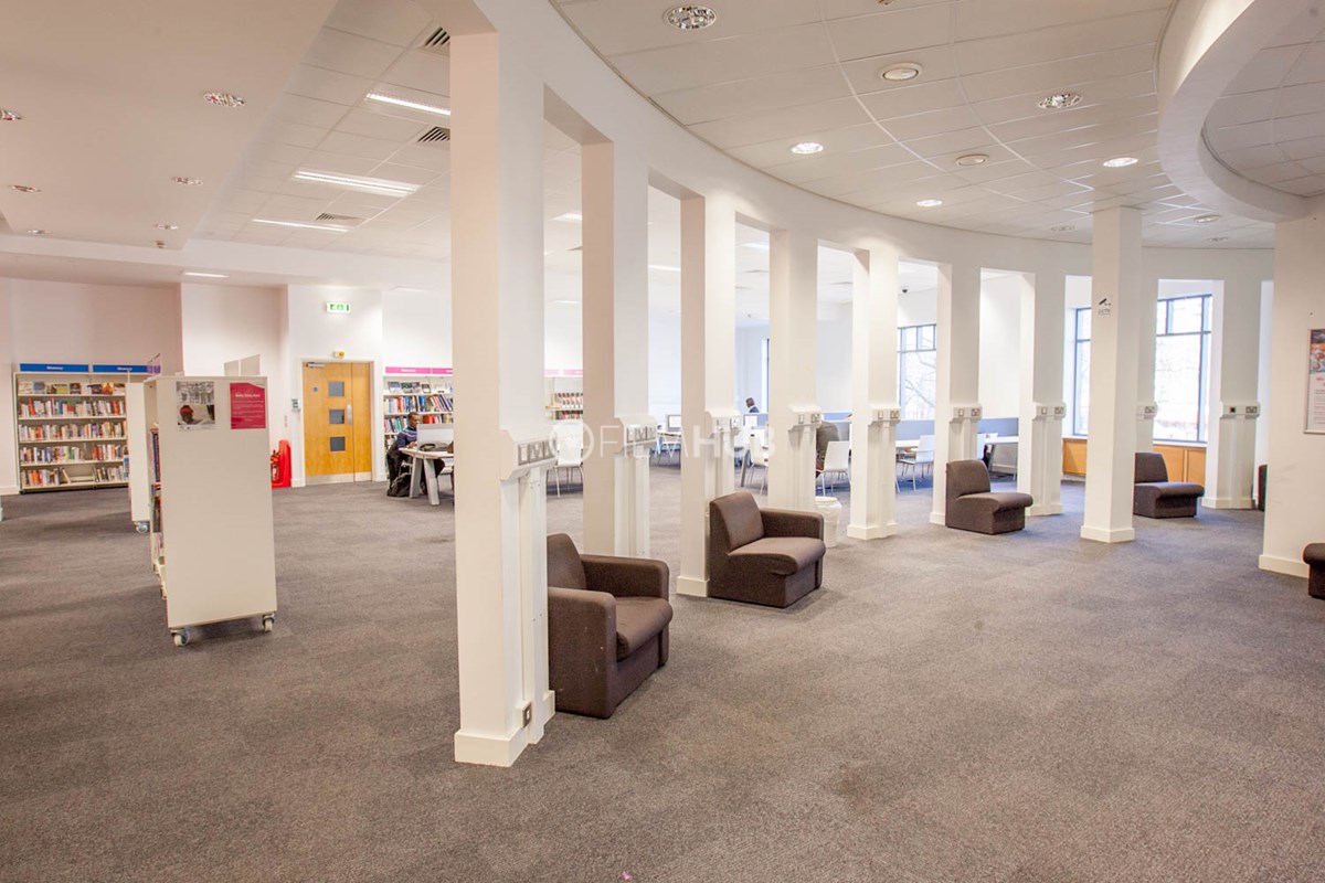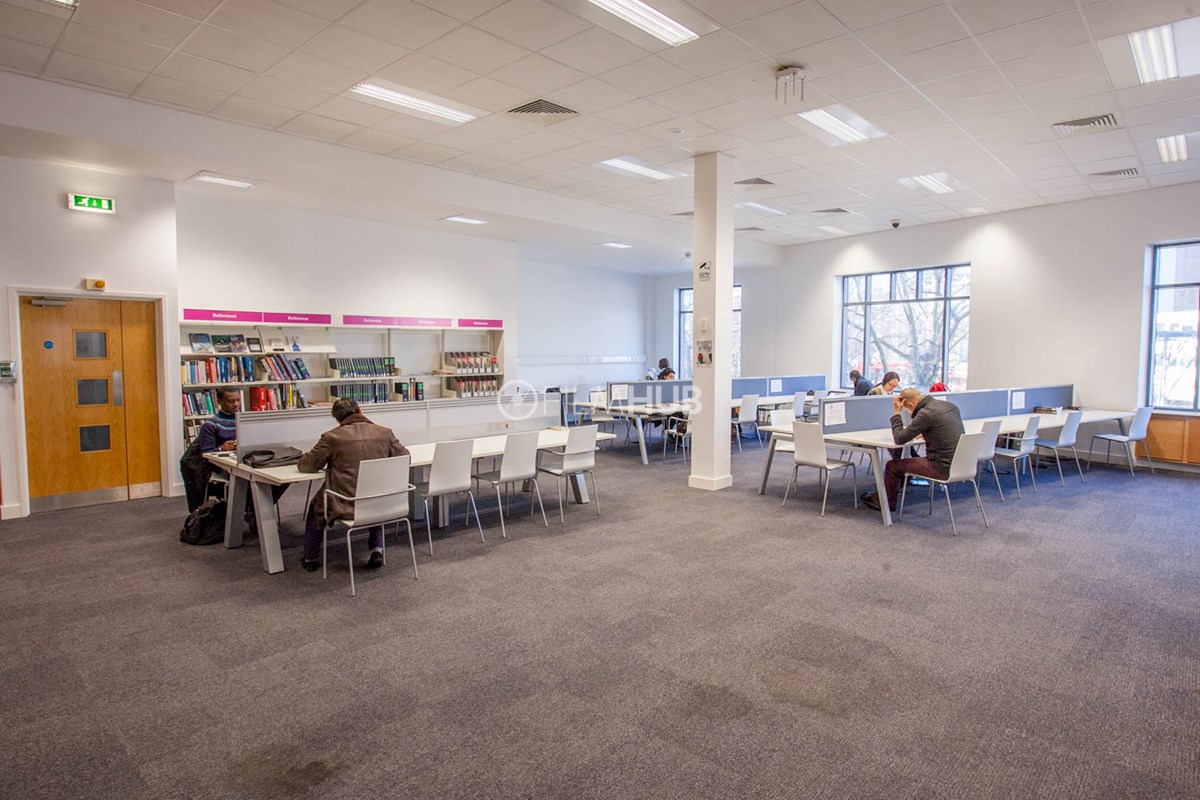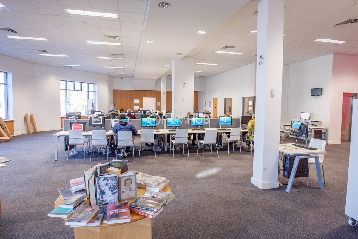 Stratford Library offers an abundance of space - there are study rooms, computers rooms, general lounge areas and children's reading area. The library has a modern interior and it has a rounded stairwell with impressive ceiling high windows and a glass balcony allowing a view to the ground level.