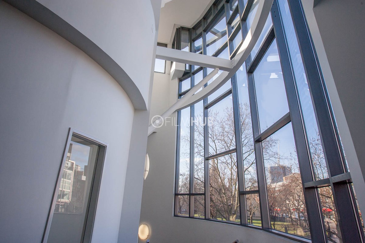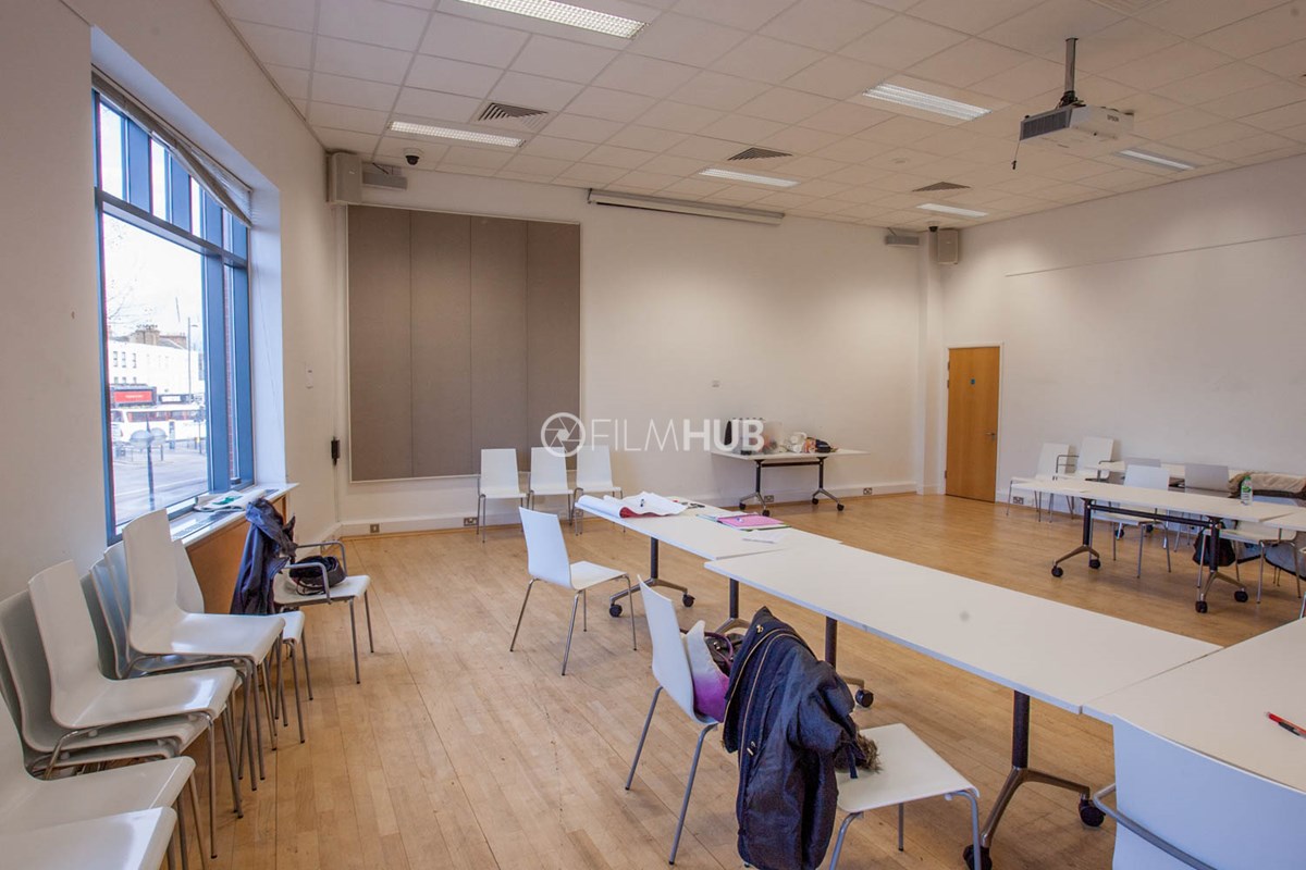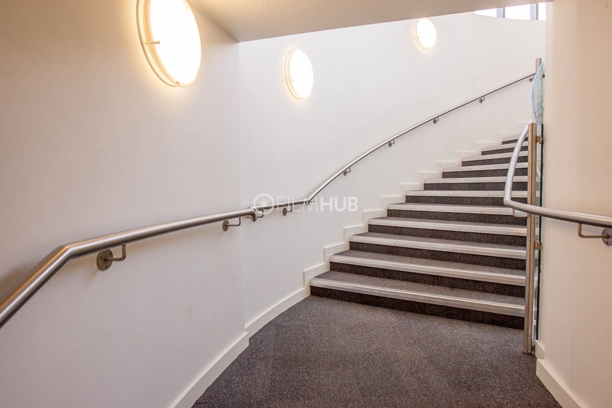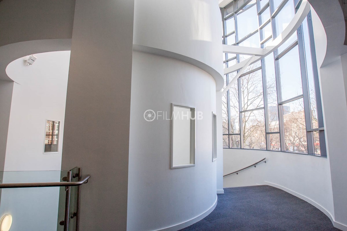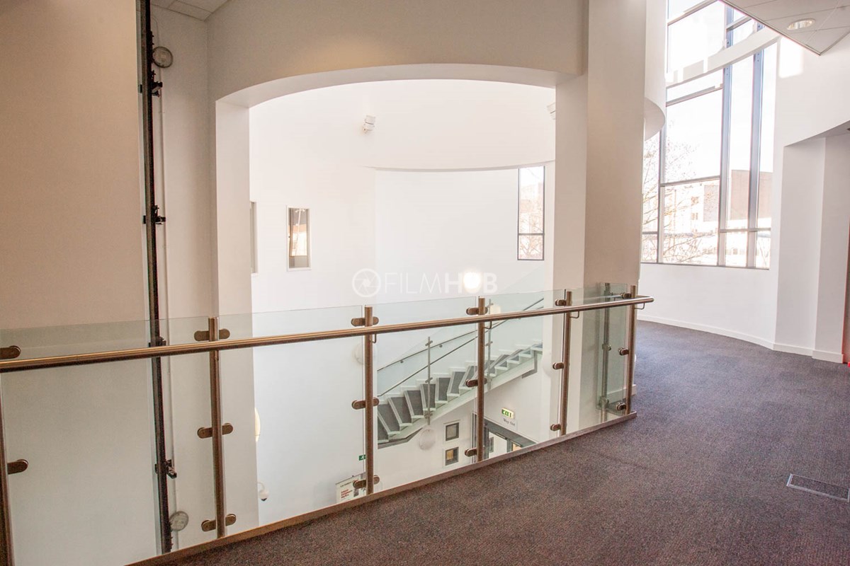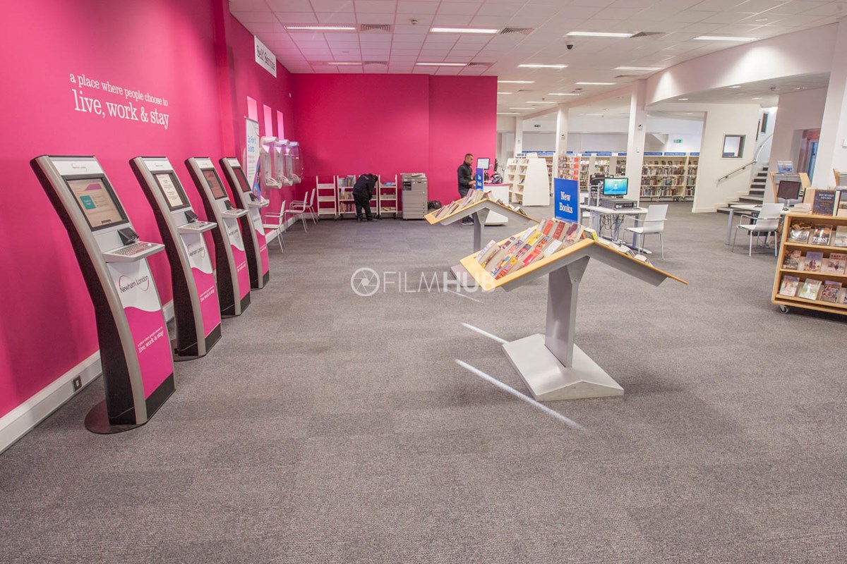 Stratford Library offers an abundance of space - there are study rooms, computers rooms, general lounge areas and children's reading area. The library has a modern interior and it has a rounded stairwell with impressive ceiling high windows and a glass balcony allowing a view to the ground level.