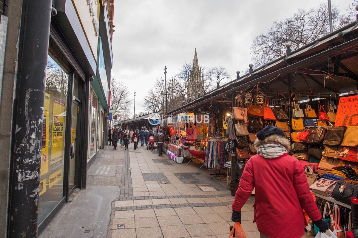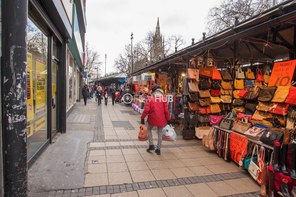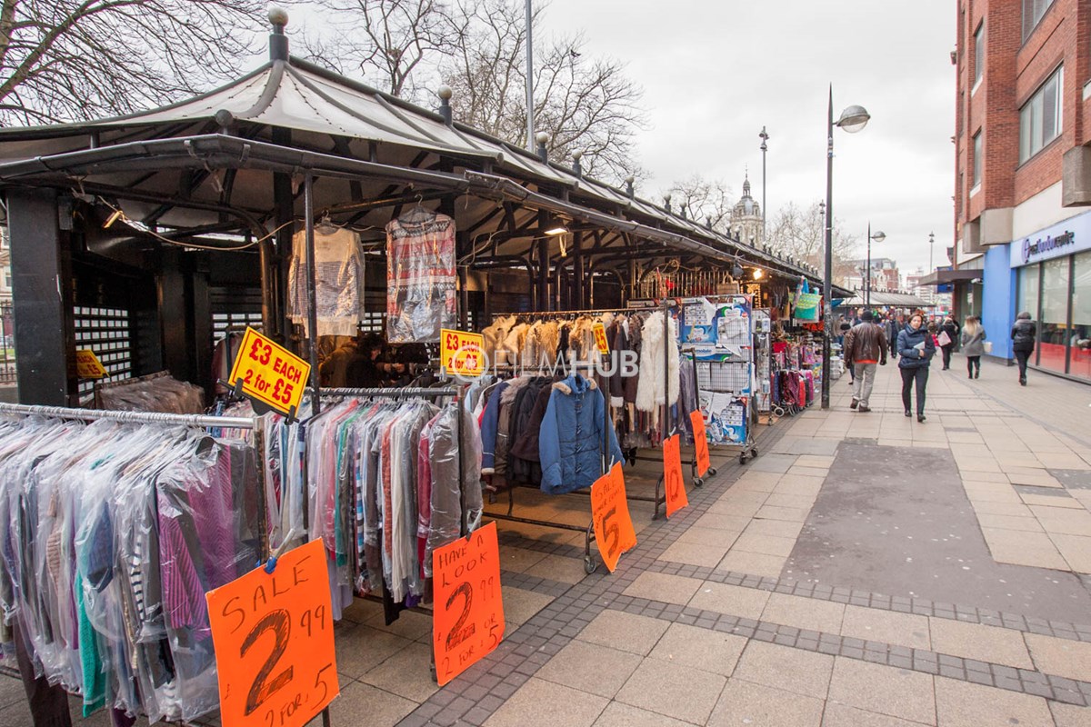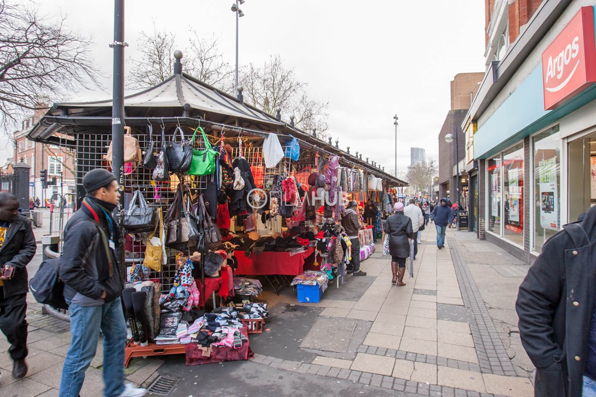 Stratford Outdoor Market is a permanent market that is based on a pedestrian walkway on The Broadway opposite historic buildings of the Old Town Hall and St. John's Church.