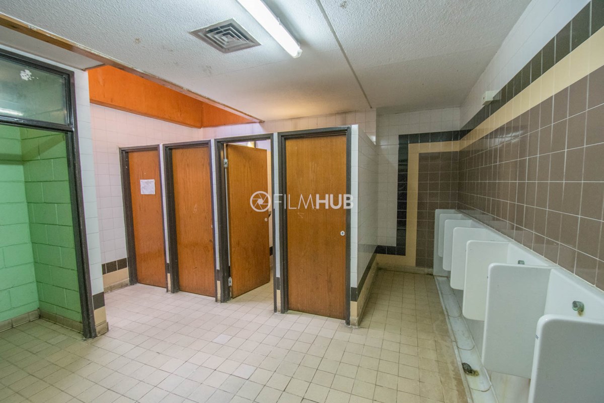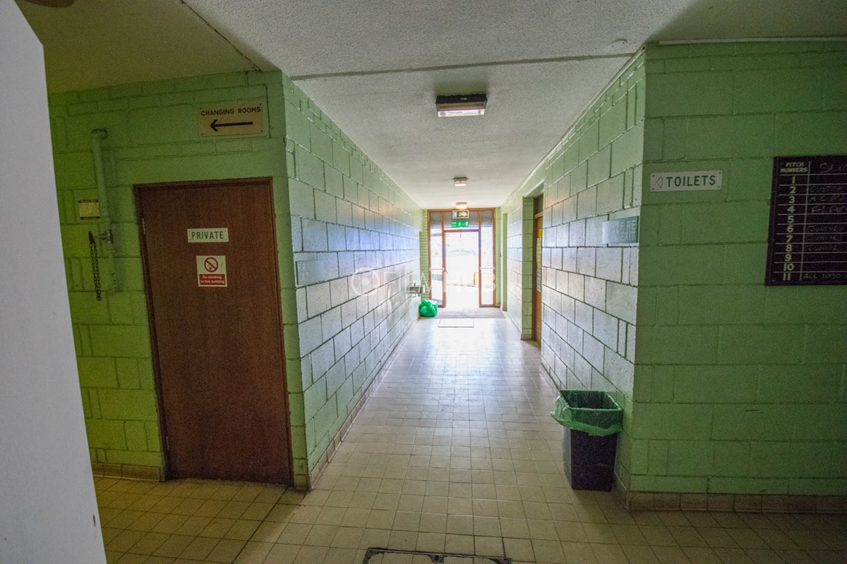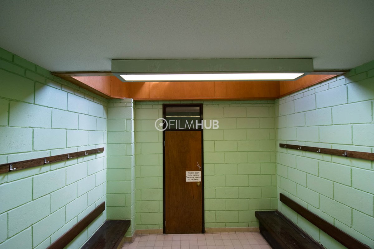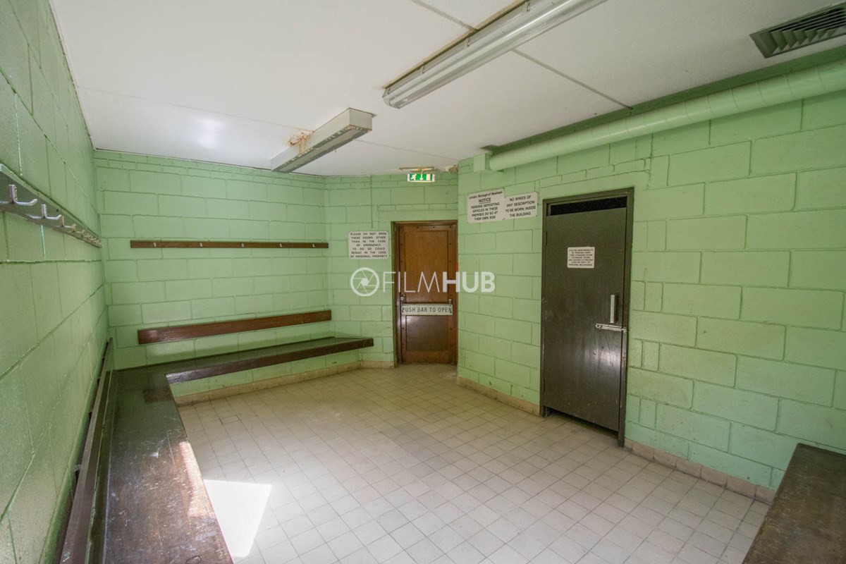 This location is a typical sports centre facility and offers a variety of changing rooms, shower facilities and multiple corridors filled with brickwork and tiles.