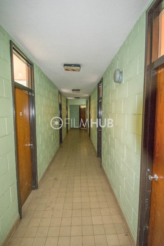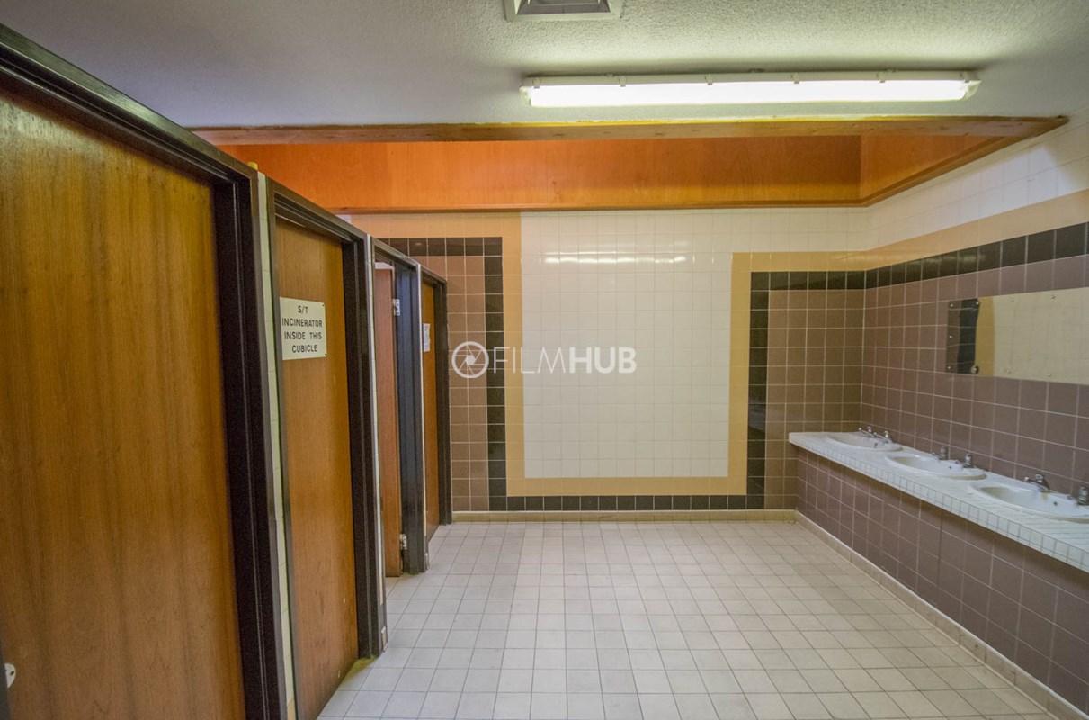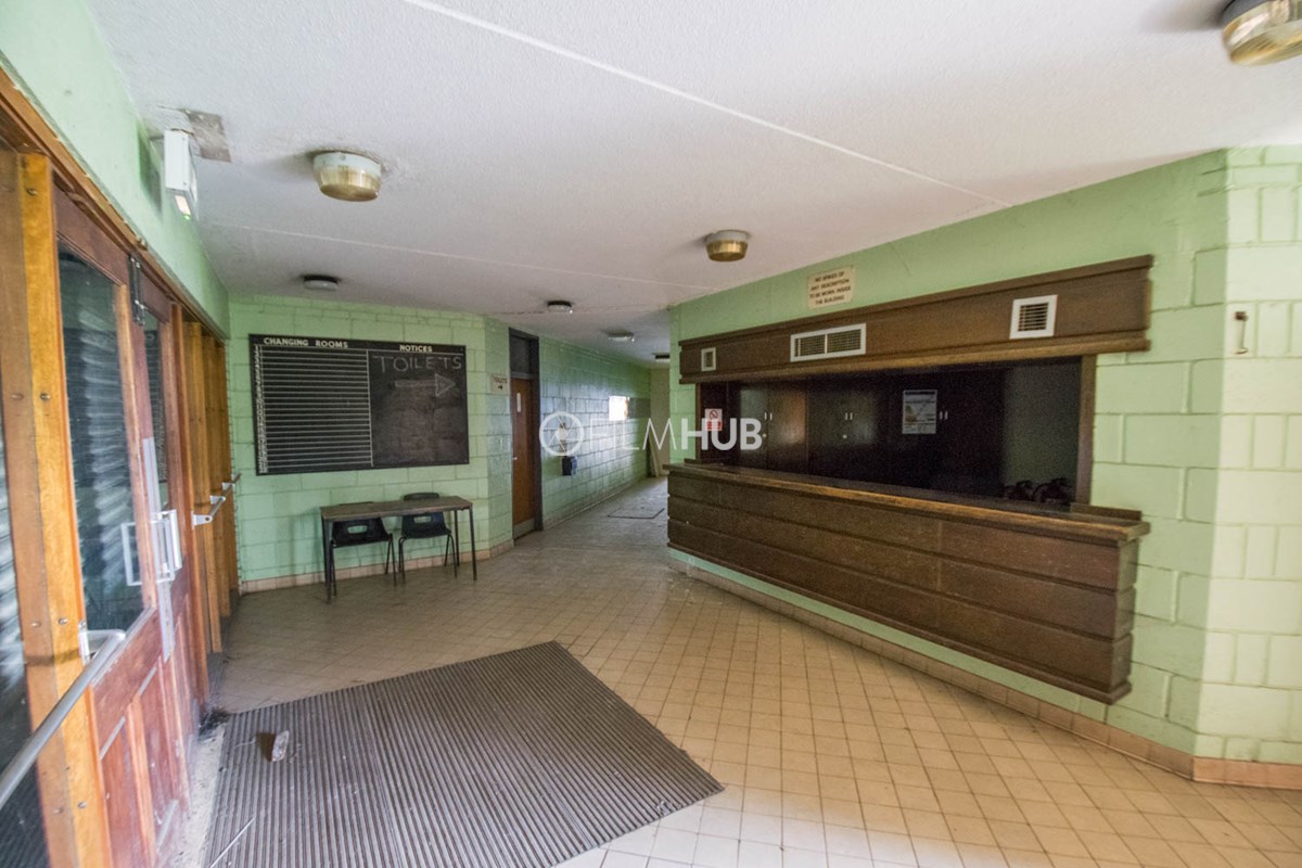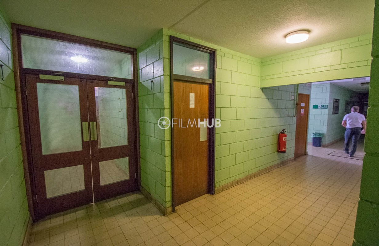 This location is a typical sports centre facility and offers a variety of changing rooms, shower facilities and multiple corridors filled with brickwork and tiles.