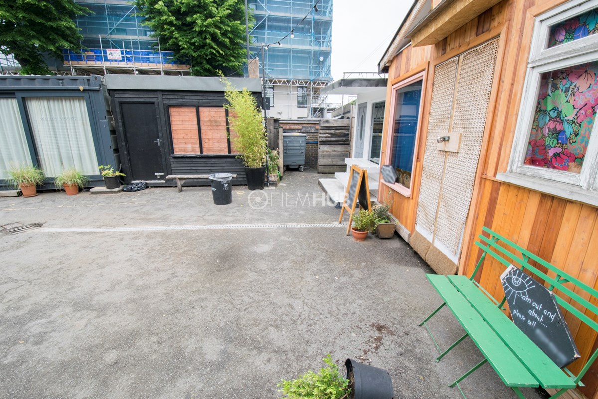 The space comprises an open-air bar, cafe, workspace and gallery, as well as a roofed area to shelter from the elements.