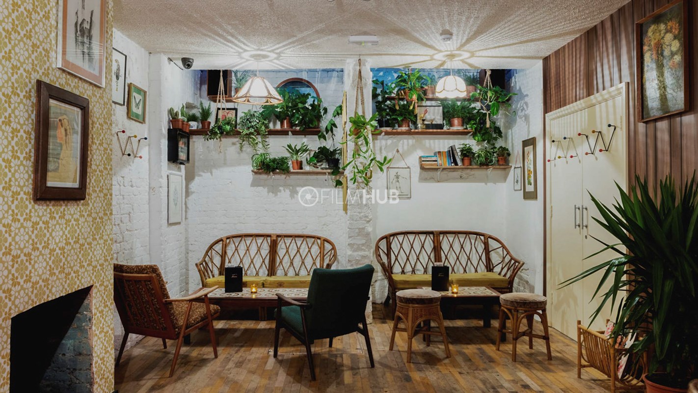 This intriguing location has 2 spaces ('kitchen' and 'living room') that look as though they are taken straight from an authentic 1970s house, with features such as retro wallpaper and a velvet living room suite.