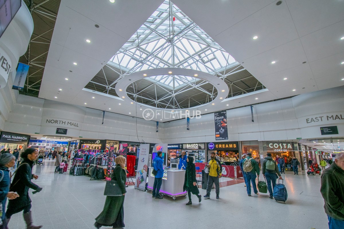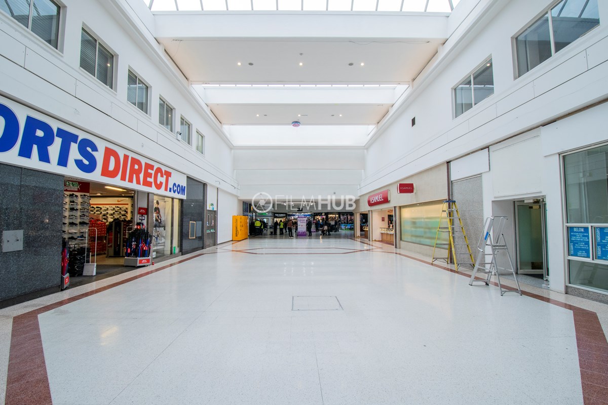 The middle of the mall has a large, glass vaulted ceiling which allows a lot of natural day light in and the venue has white walls and ceilings giving it a contemporary feel.