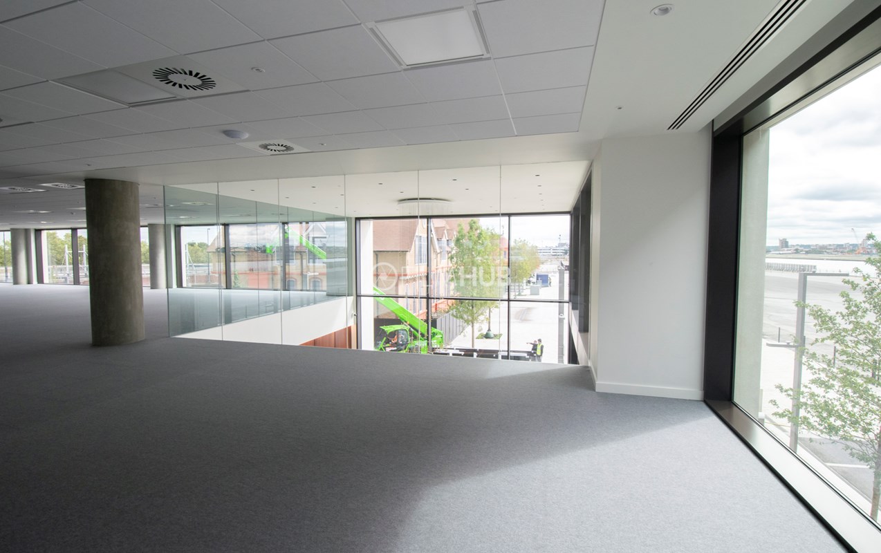 New empty modern offices available with views across East London and Canary Wharf.
