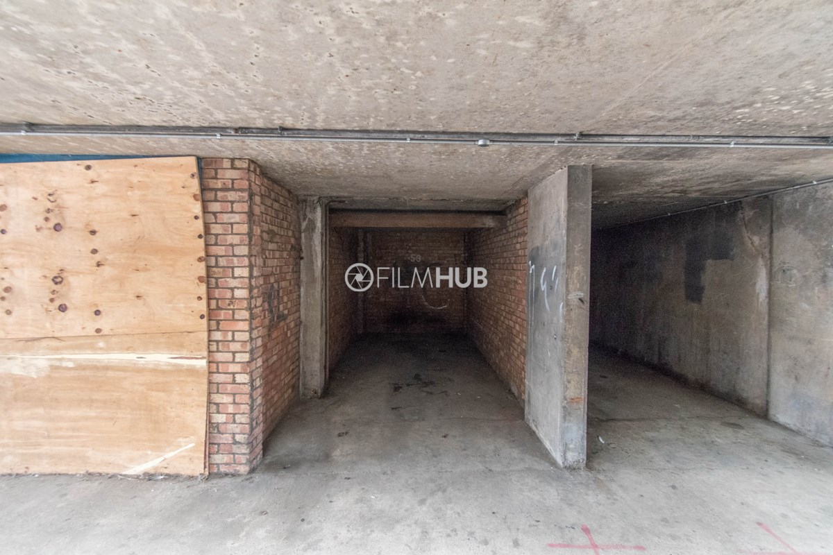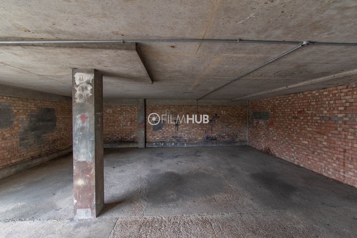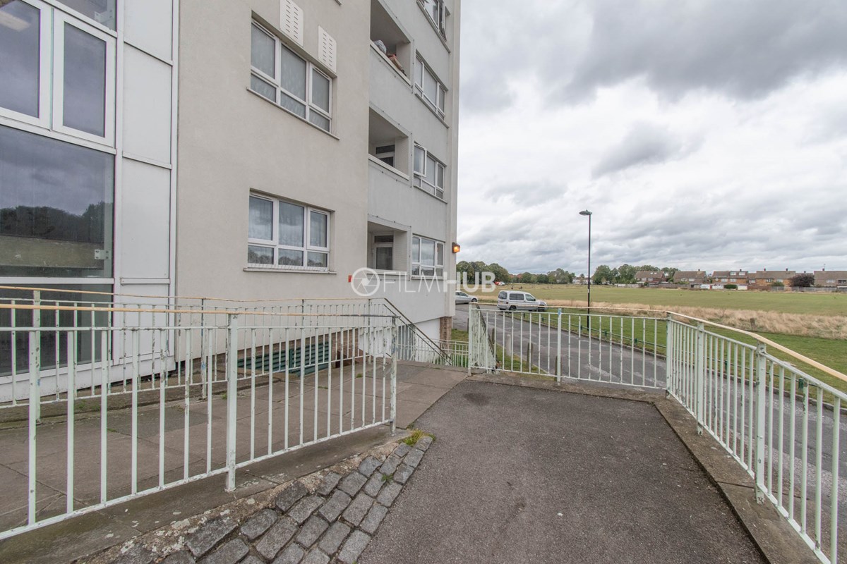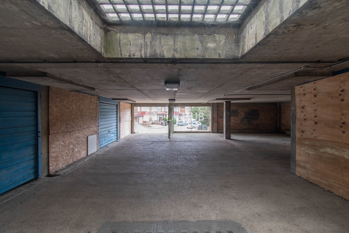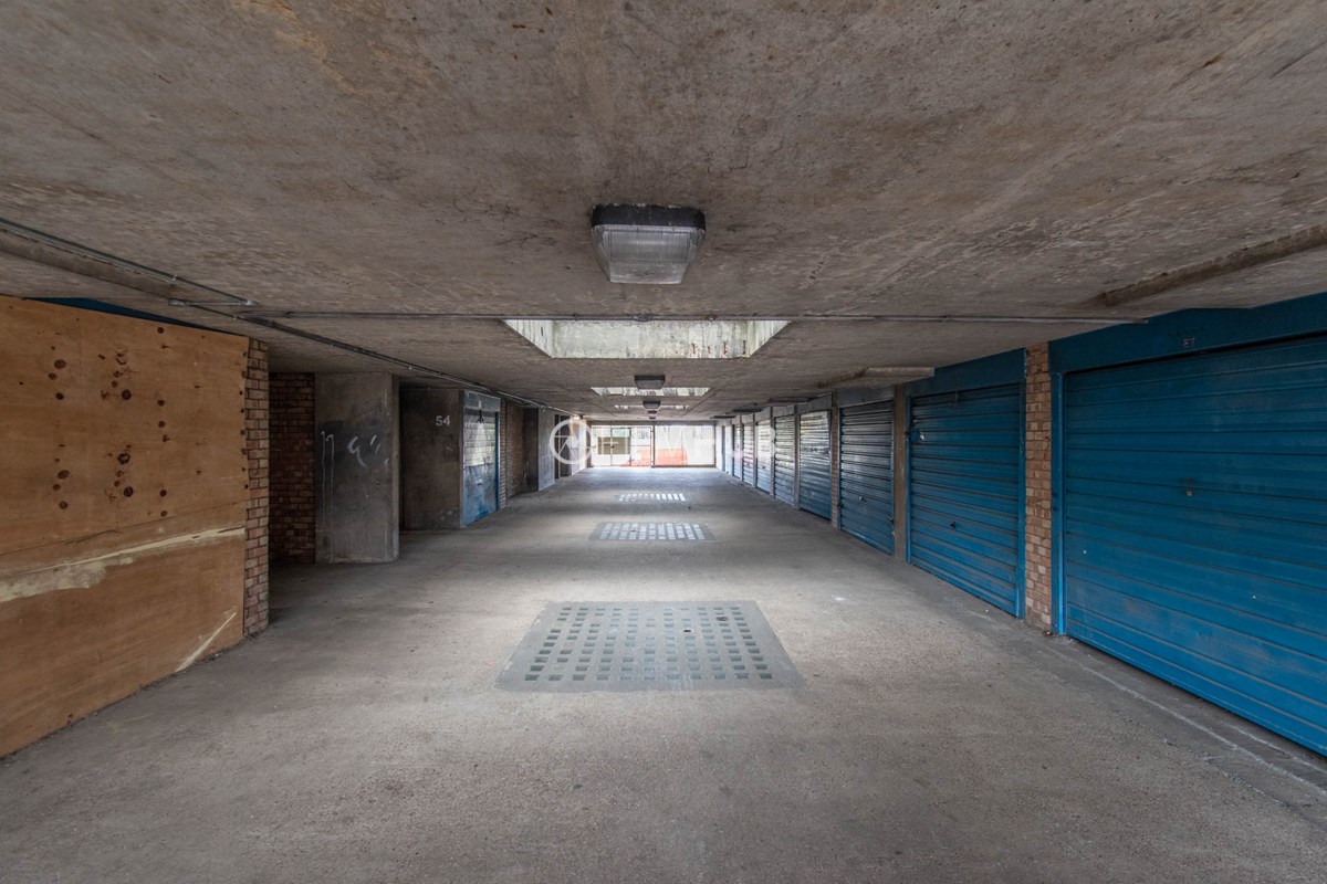 Situated next to Enfield Highway green area, this estate also features raised underground parking, with concrete ramps leading to covered garage areas.