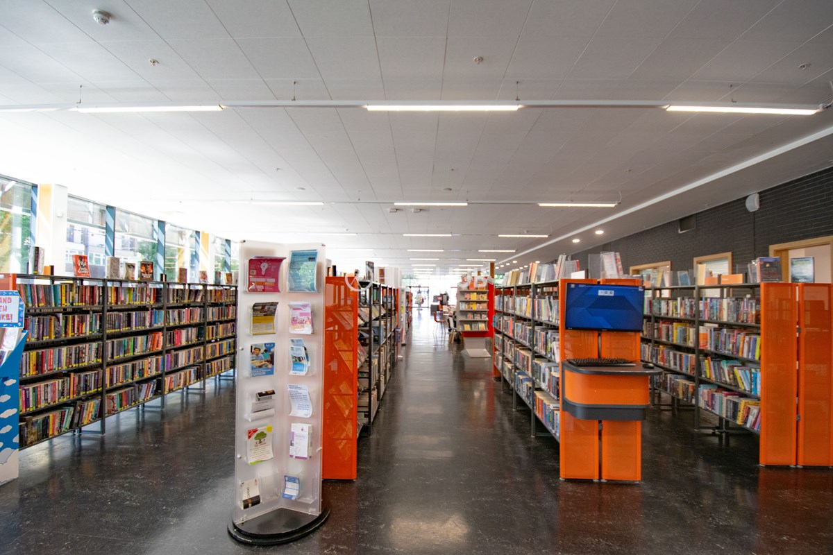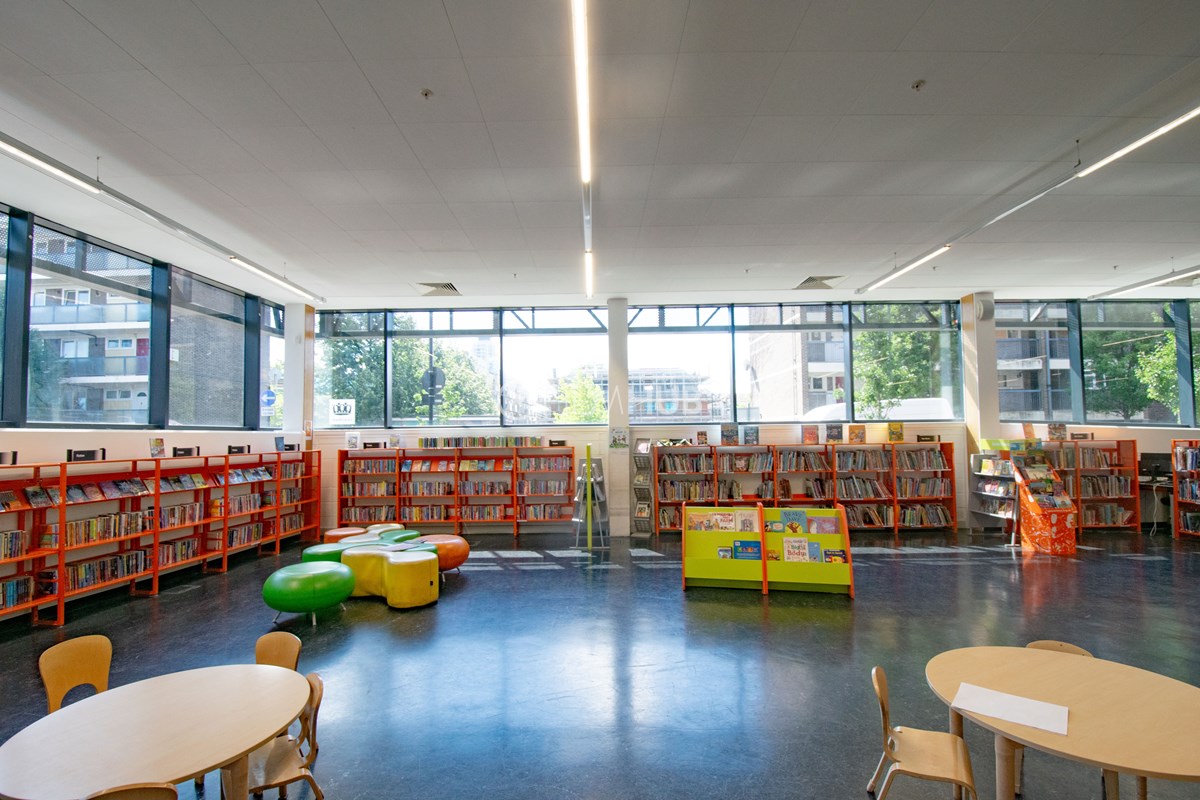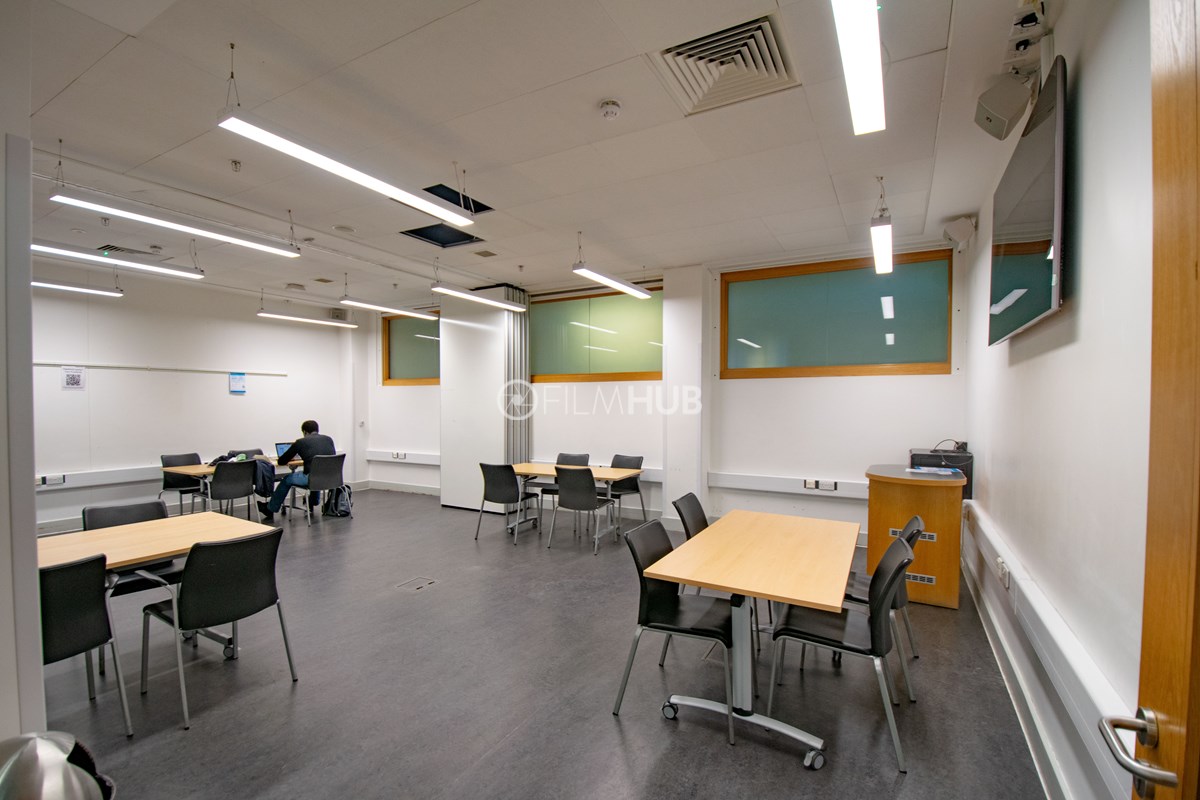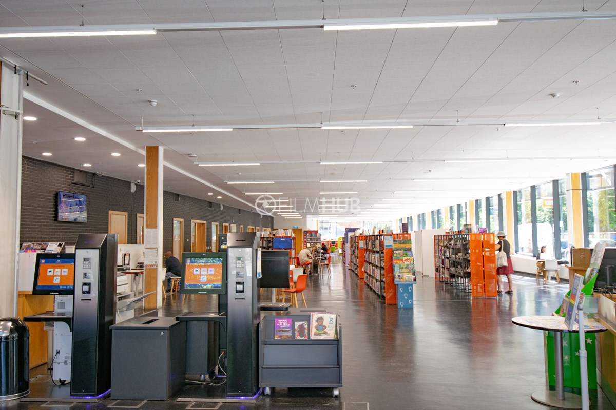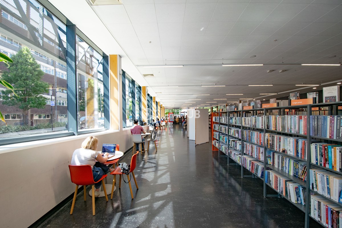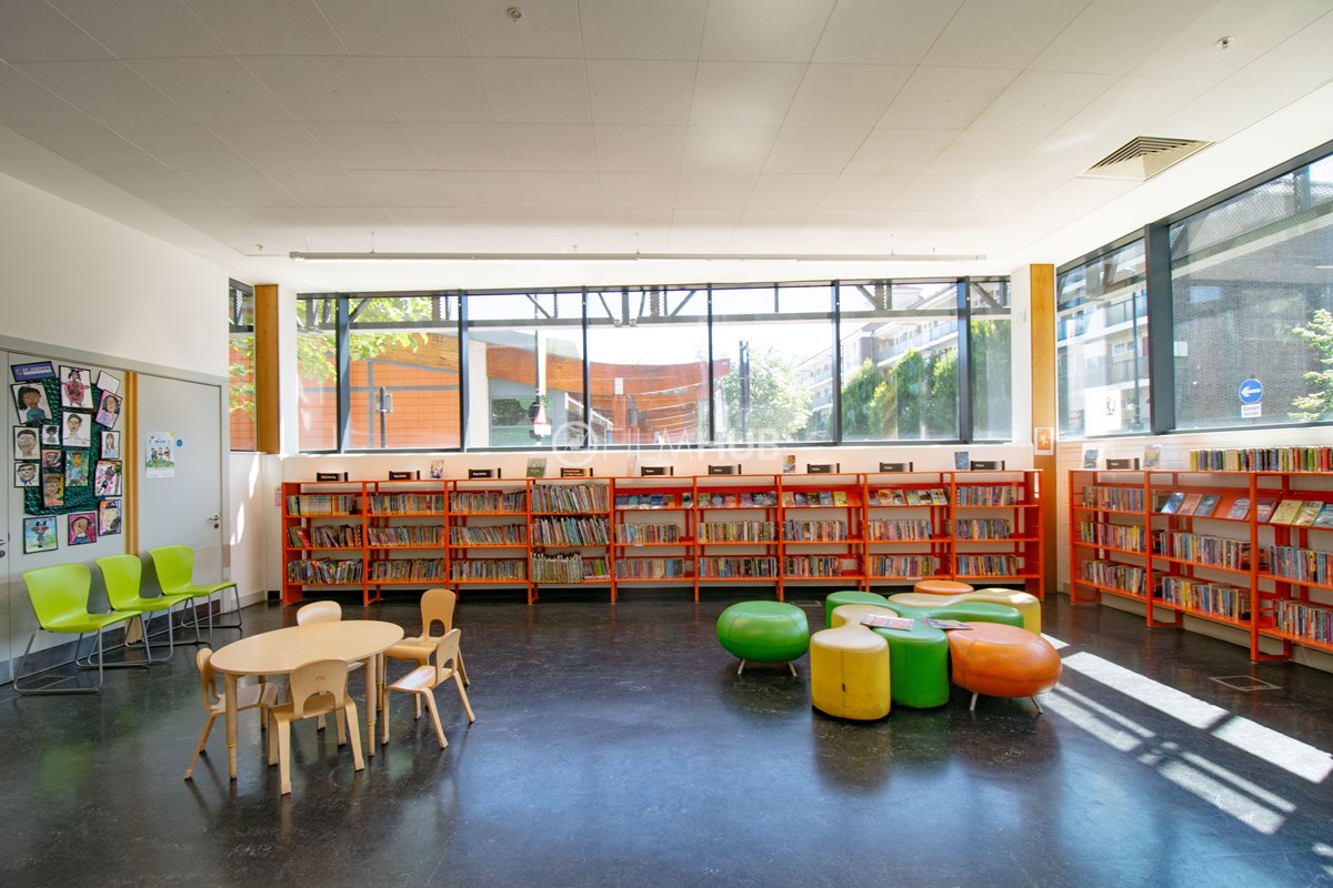 Deptford Library is an impressive modern library with huge windows allowing lots of natural light. The space is airy and open It also features a large meeting room with overhead lighting, blank white walls and low hanging lights for almost a classroom feel. The library also provides a space for children's reading areas and quiet study rooms.