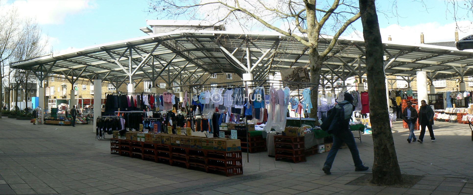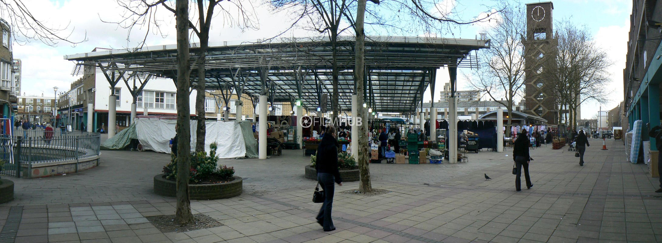 Chrisp Street Market is located in Poplar in the London Borough of Tower Hamlets, and forms part of the eastern edge of the Lansbury Estate. It was the first purpose-built pedestrian shopping area in the UK.